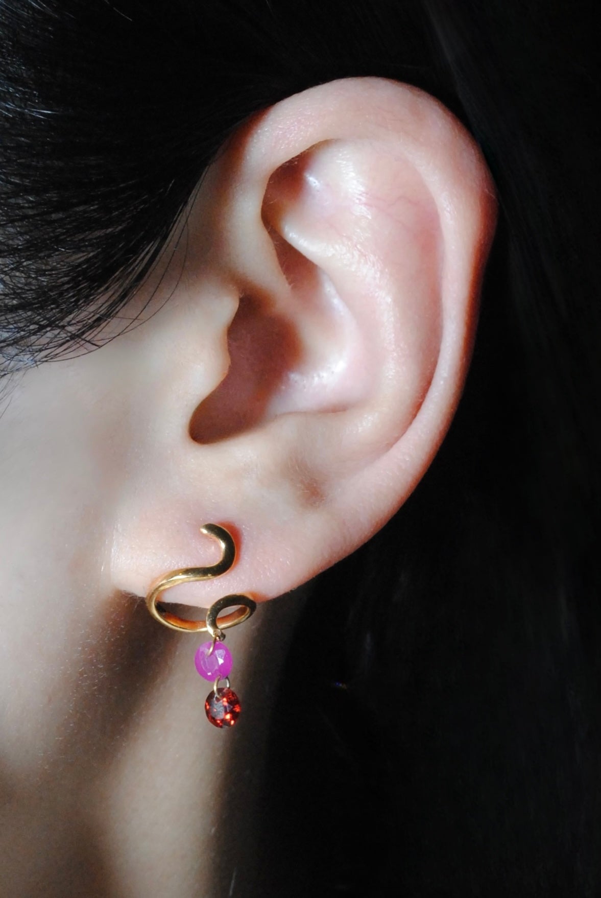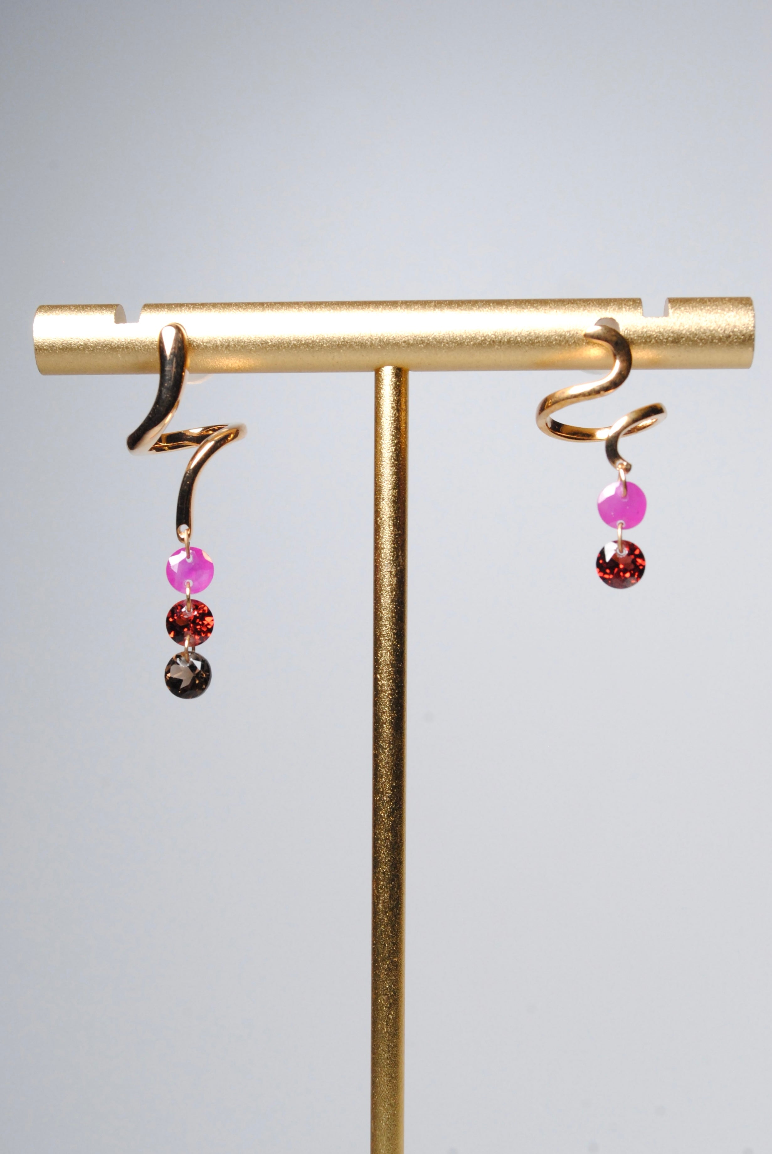 (ルビー&ガーネット&スモーキークォーツ/gold) luminous tail earring