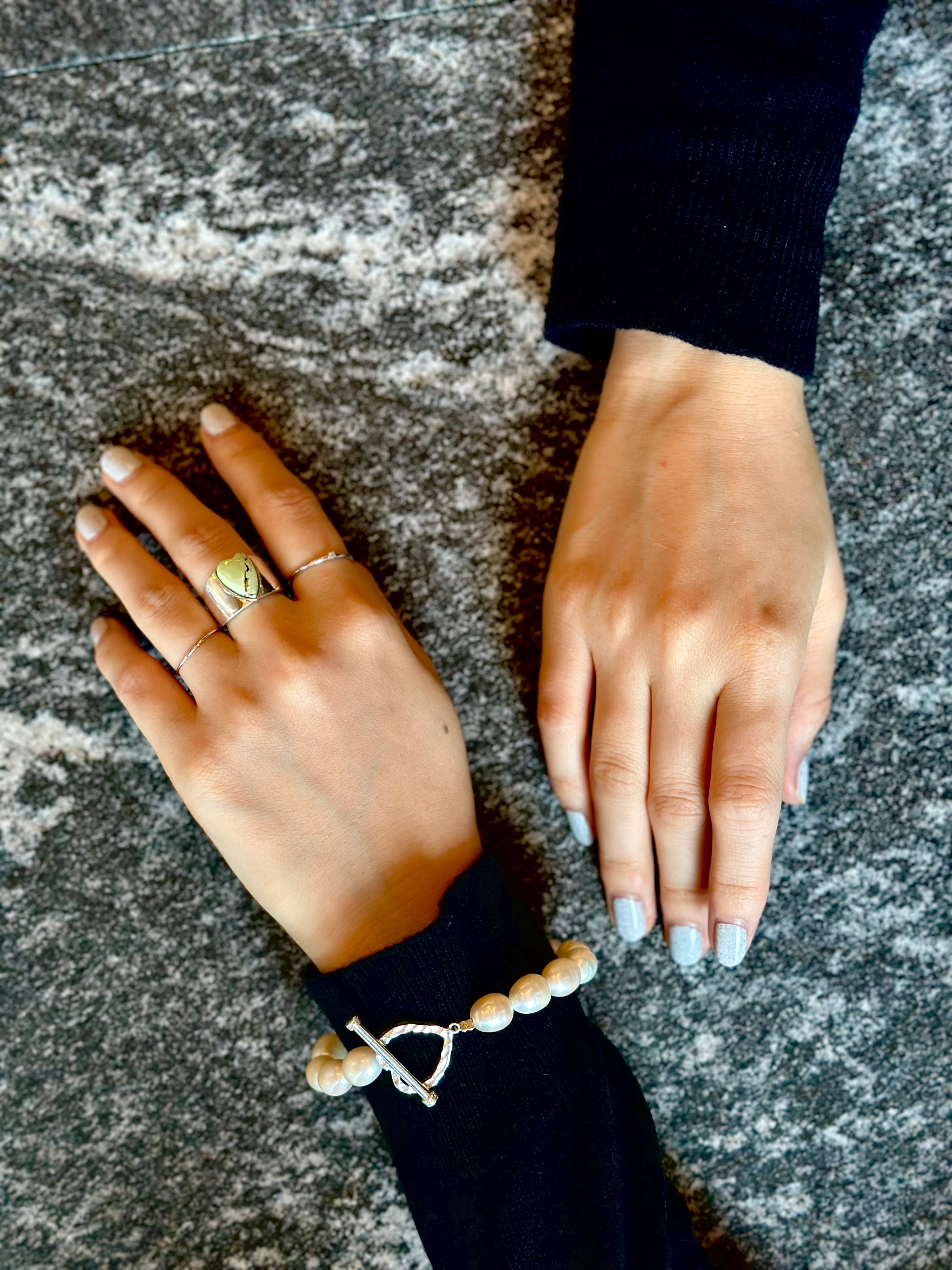 親指につけるサムリングにしてもよし。小指にピンキーリングとしても。ベーシックに中指、人差し指、薬指につけても。