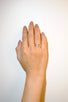 3つの石が花束のようにセッティングされたデザインが特徴のtrio phoolコレクション。ヨーロッパの蚤の市で見つけたかのようなヴィンテージライクなバンドテクスチャーもポイント。指元が華やかになり、オケージョンシーンにも活躍するアイテムです。
