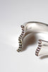 美しい曲線がモチーフのリング。パヴェ部分のウェーブやリングのフォルムにこだわり仕立てたジュエリーとなります。ゴールド地金は、パヴェが際立つようなピュアな仕上げに、シルバー地金はパヴェの下の地金をブラックロジウムコーてティングを施し、重厚感のあるヴィンテージライクな仕上げに仕立てました。オープンリングのため、ご自身で多少前後にサイズ調整が可能なアイテムとなります。ギフトとしてもおすすめ。