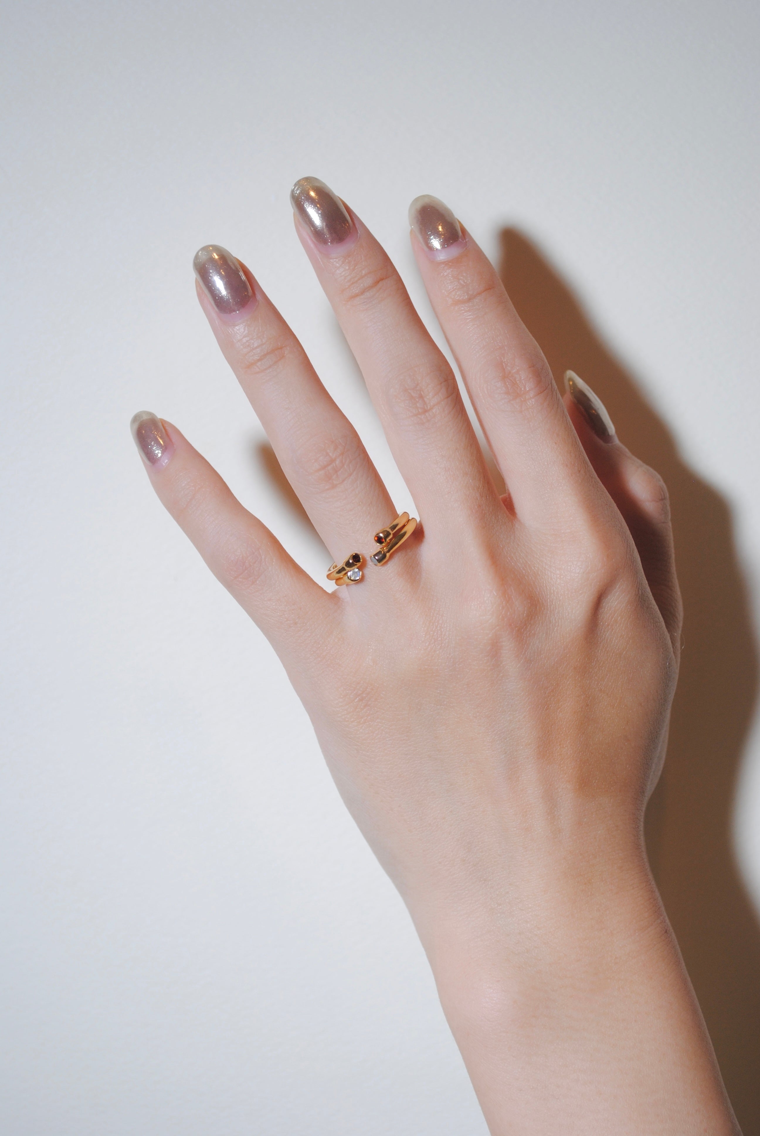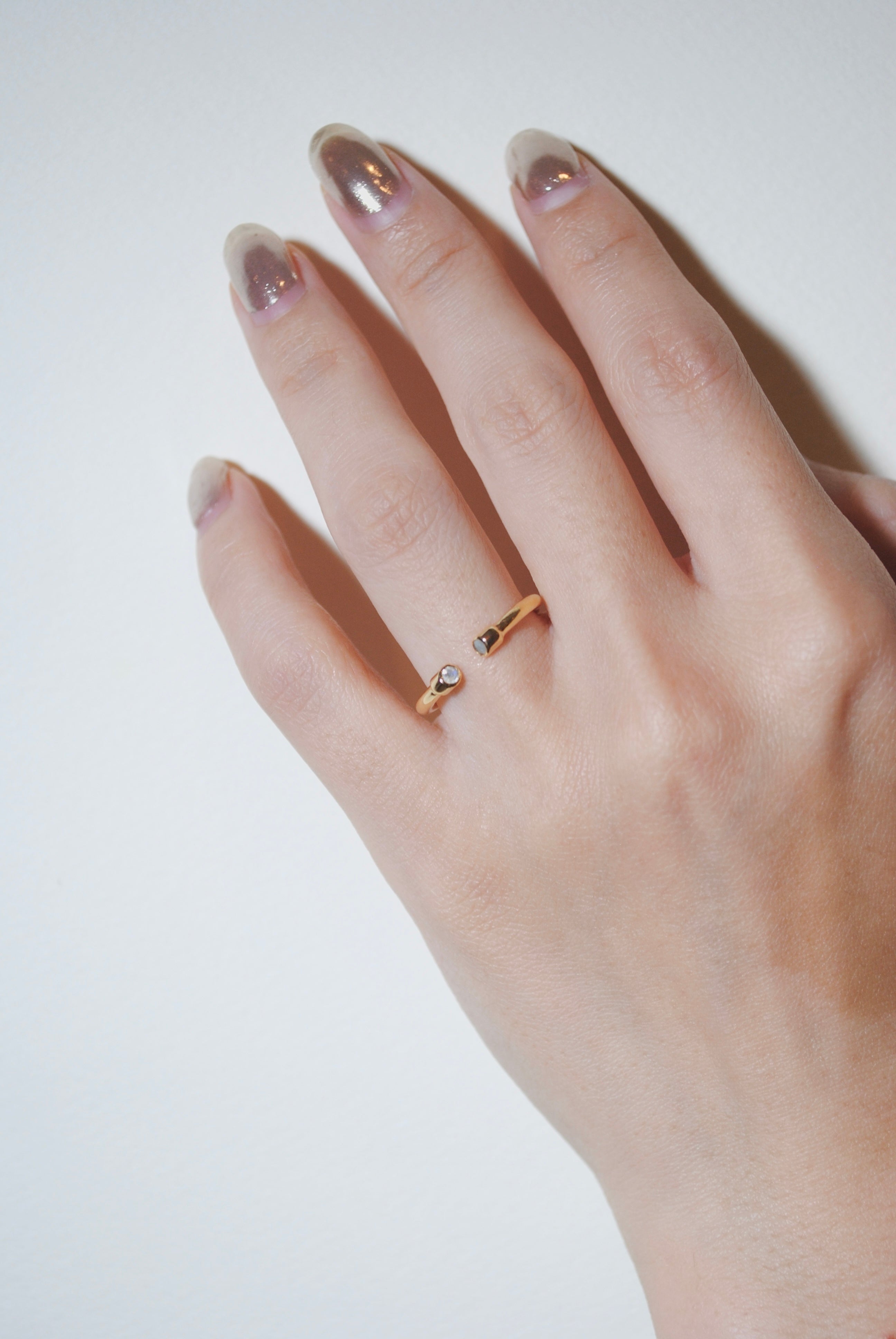 シンプルなデザインでさりげなくストーンが2つ付いている2wayミラノシリーズ。反対にしてシンプルな地金リングとして使うこともできるのでコーディネートの幅が広がる一つは持っておきたいアイテム。オープンになっているので、つけやすさもポイントです。