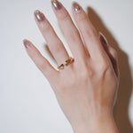 シンプルなデザインでさりげなくストーンが2つ付いている2wayミラノシリーズ。反対にしてシンプルな地金リングとして使うこともできるのでコーディネートの幅が広がる一つは持っておきたいアイテム。オープンになっているので、つけやすさもポイントです。