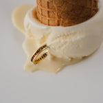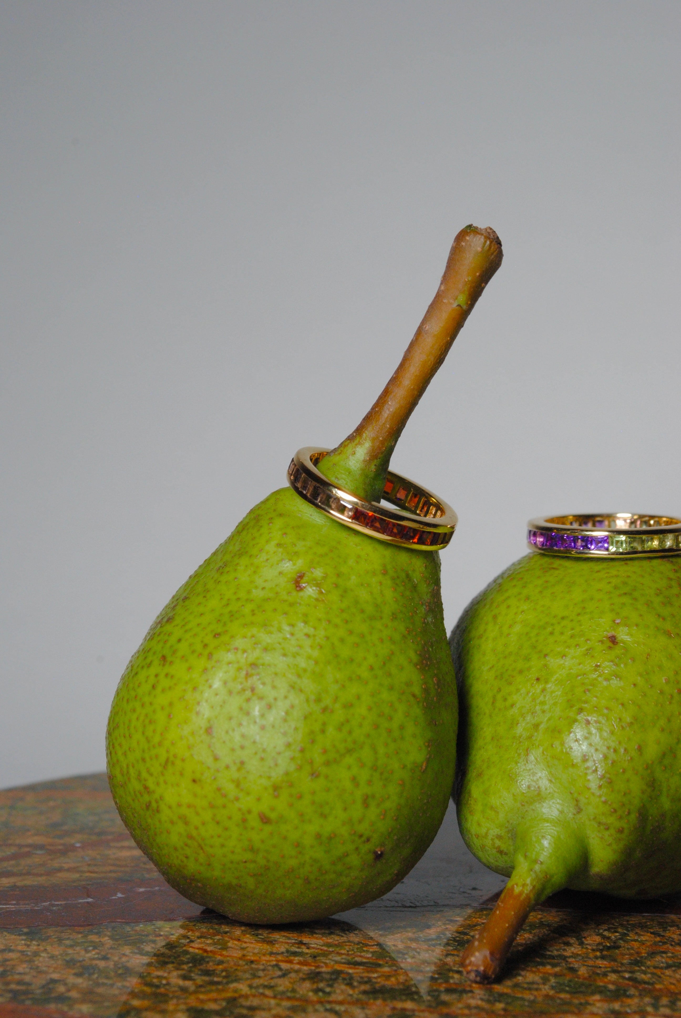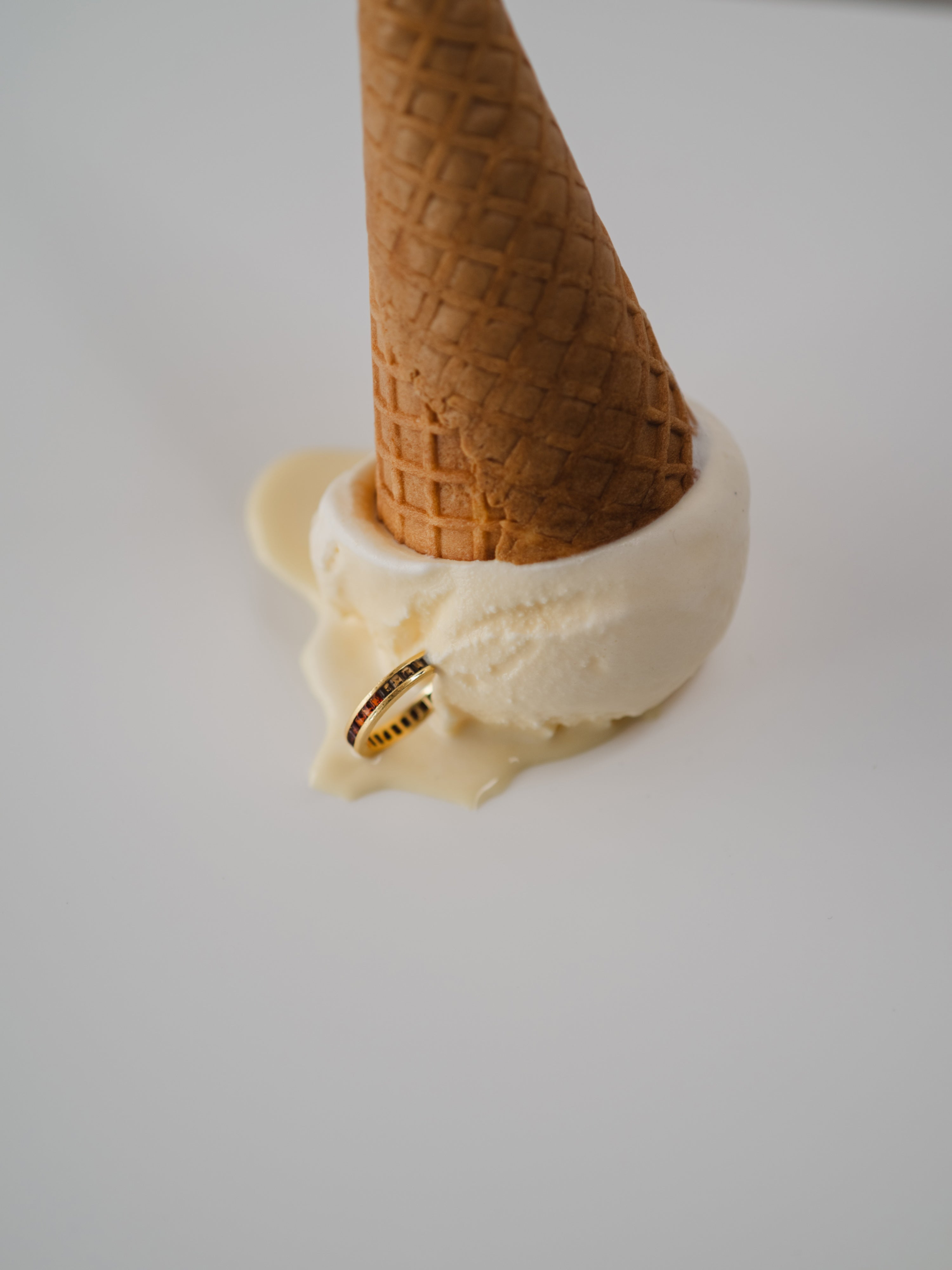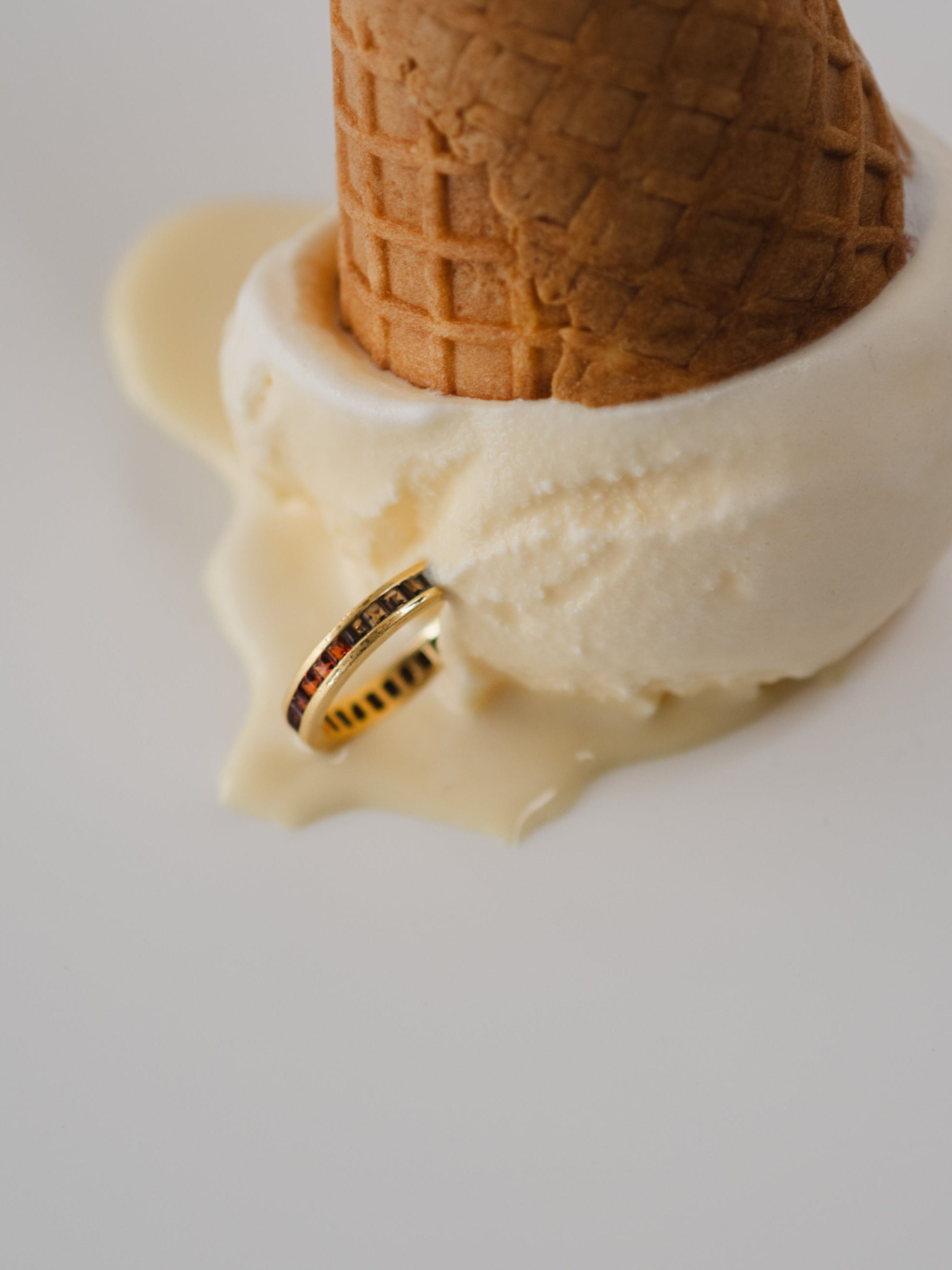 ストーンがハーフ&ハーフで2種類入っているエタニティリングが登場。スクエアのカットストーンが並んだエタニティリングは、フォーマル感さえ漂う高級感。気分に合わせて、裏・表・半々など正面に見せる面を選んで。