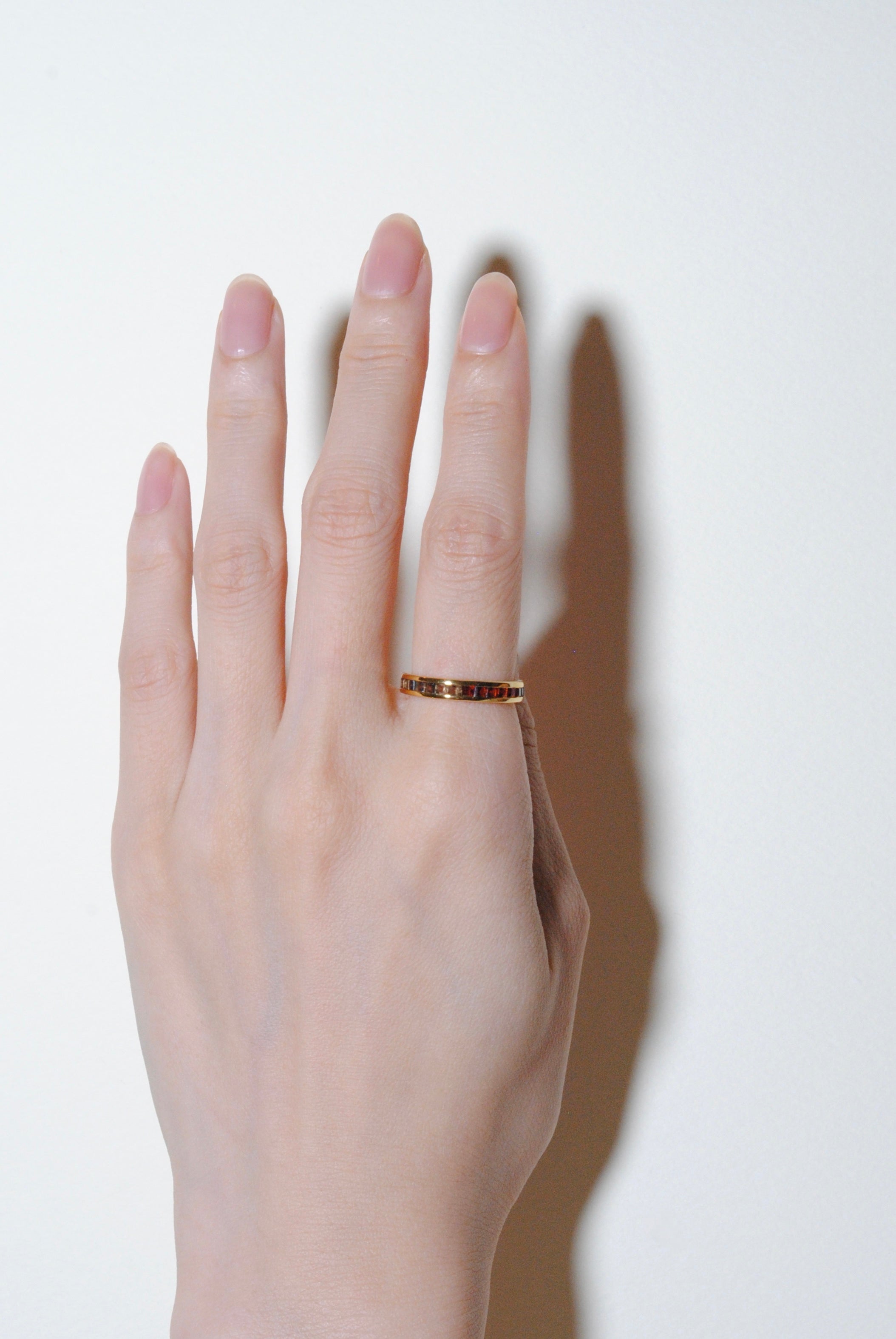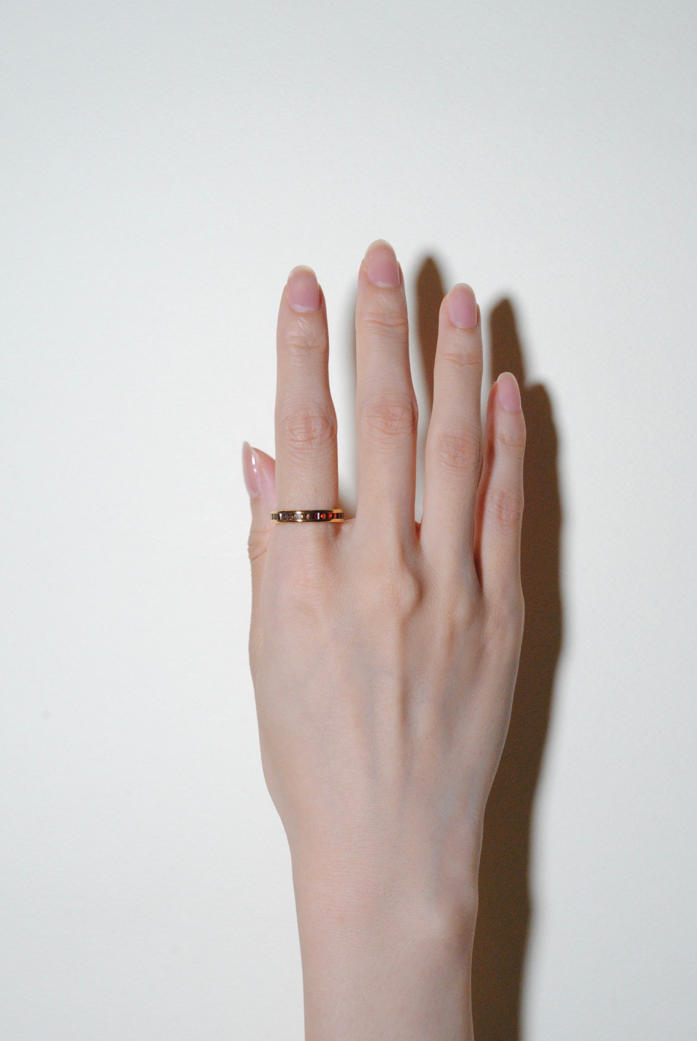(ガーネット&スモーキークオーツ/gold) bi-color 3way square eternity ring