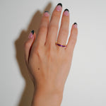 ストーンがハーフ&ハーフで2種類入っているエタニティリングが登場。バイカラーとなっているので、気分に合わせて石を選ぶことができる使い回し抜群のアイテムです。