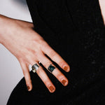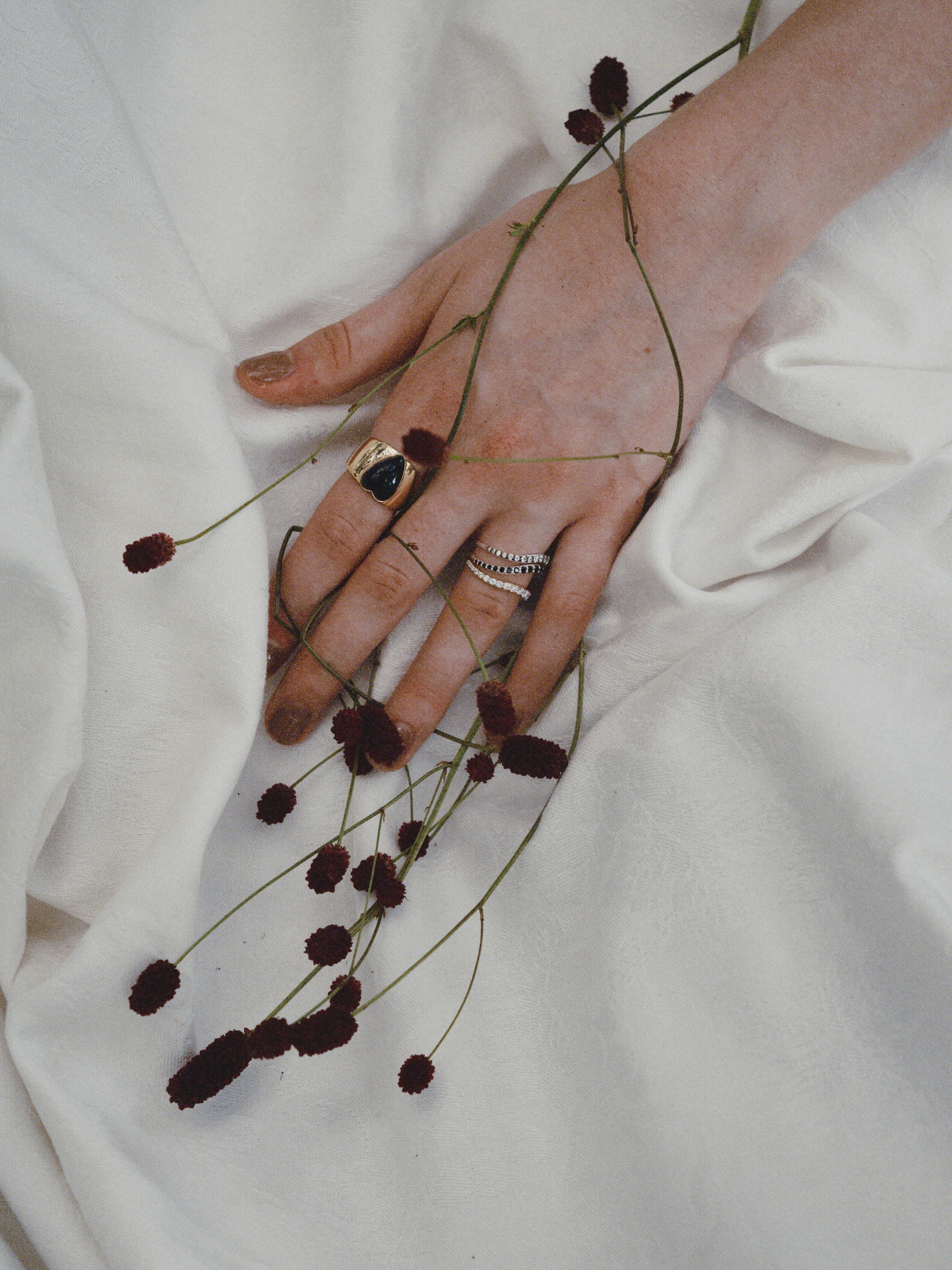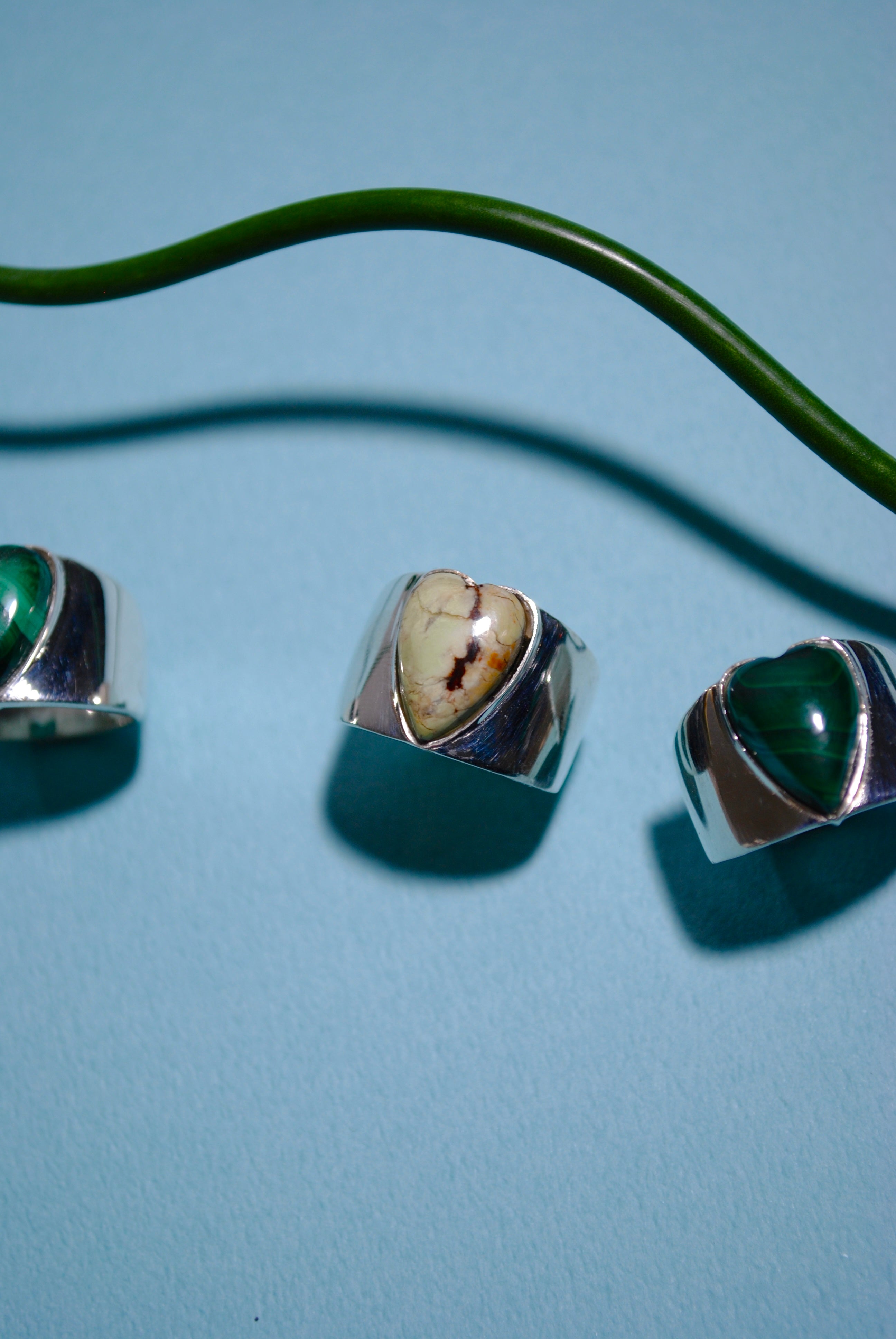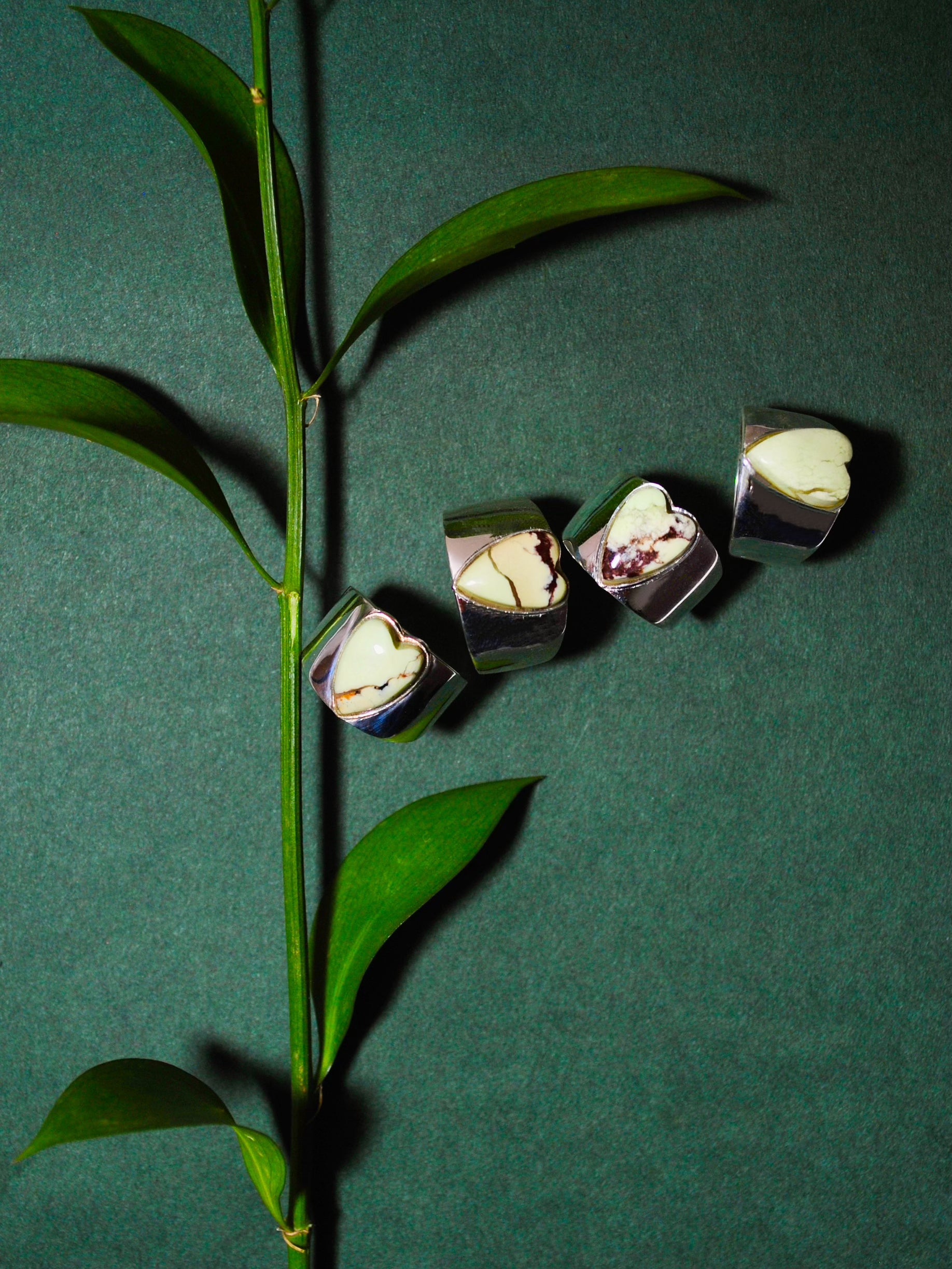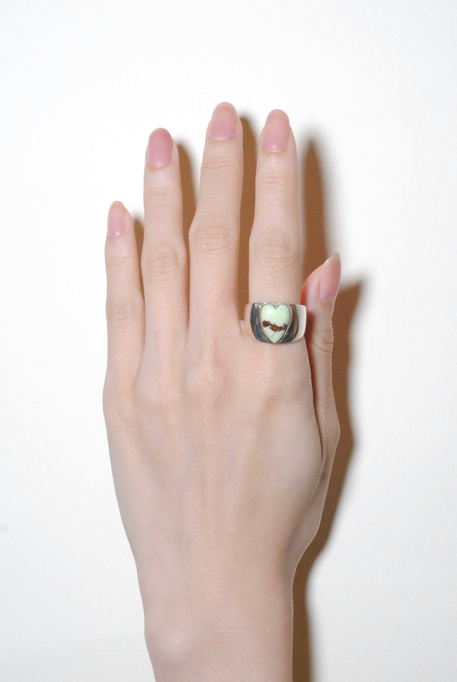 大人も恥ずかしげなく着けられるロングハートシェイプ。太めのバンドにハート形の石がハンサムかつガーリー。甘くなり過ぎたくないけれど、ハートを身に付けたいという方にぴったりです。