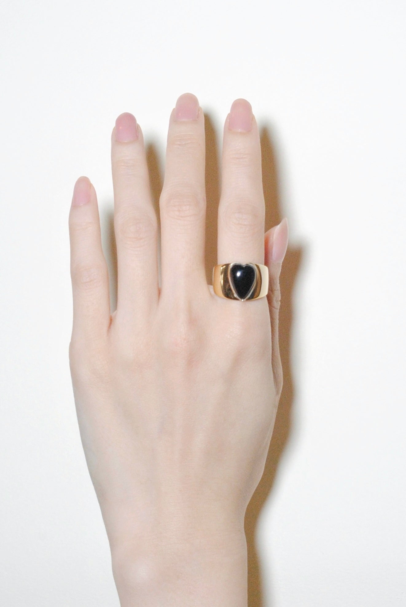 大人も恥ずかしげなく着けられるロングハートシェイプ。太めのバンドにハート形の石がハンサムかつガーリー。甘くなり過ぎたくないけど、ハートを身に付けたいという方にはぴったりです。