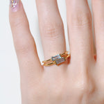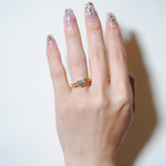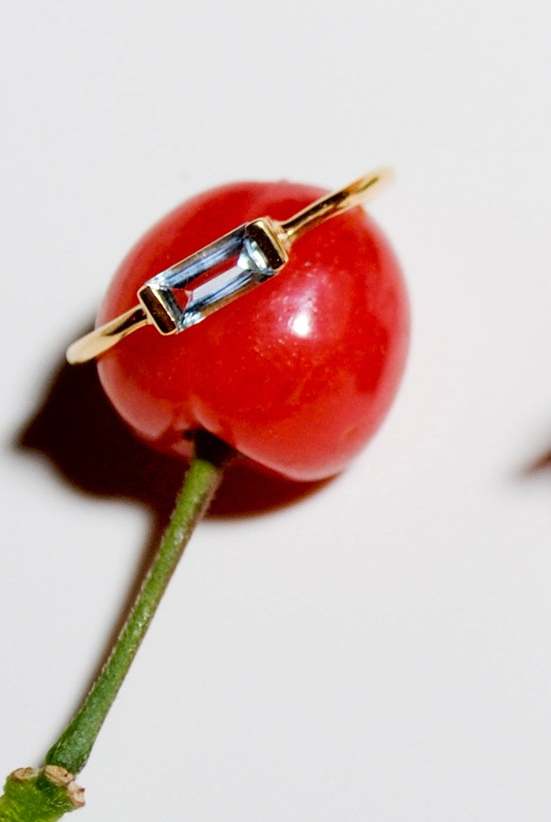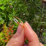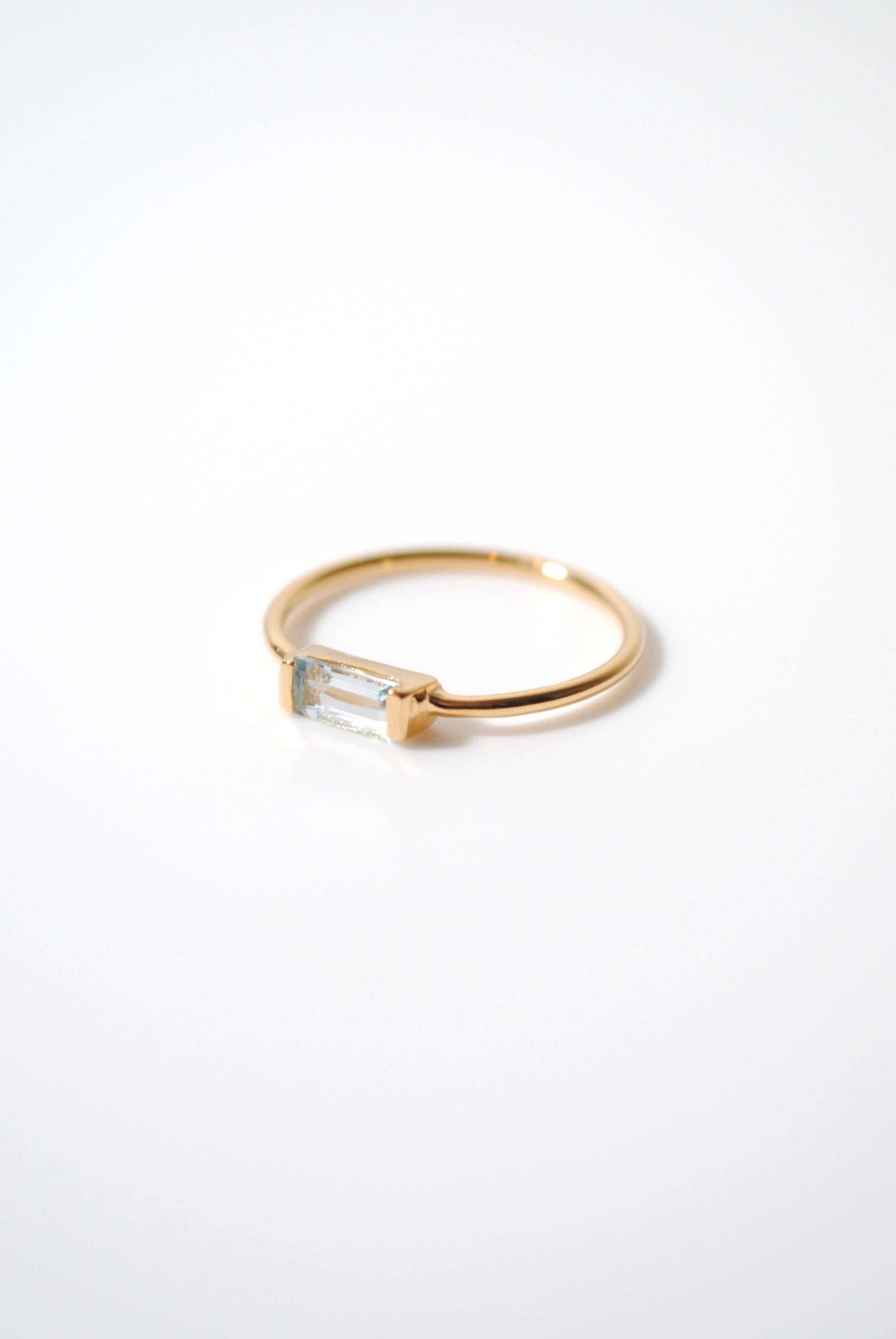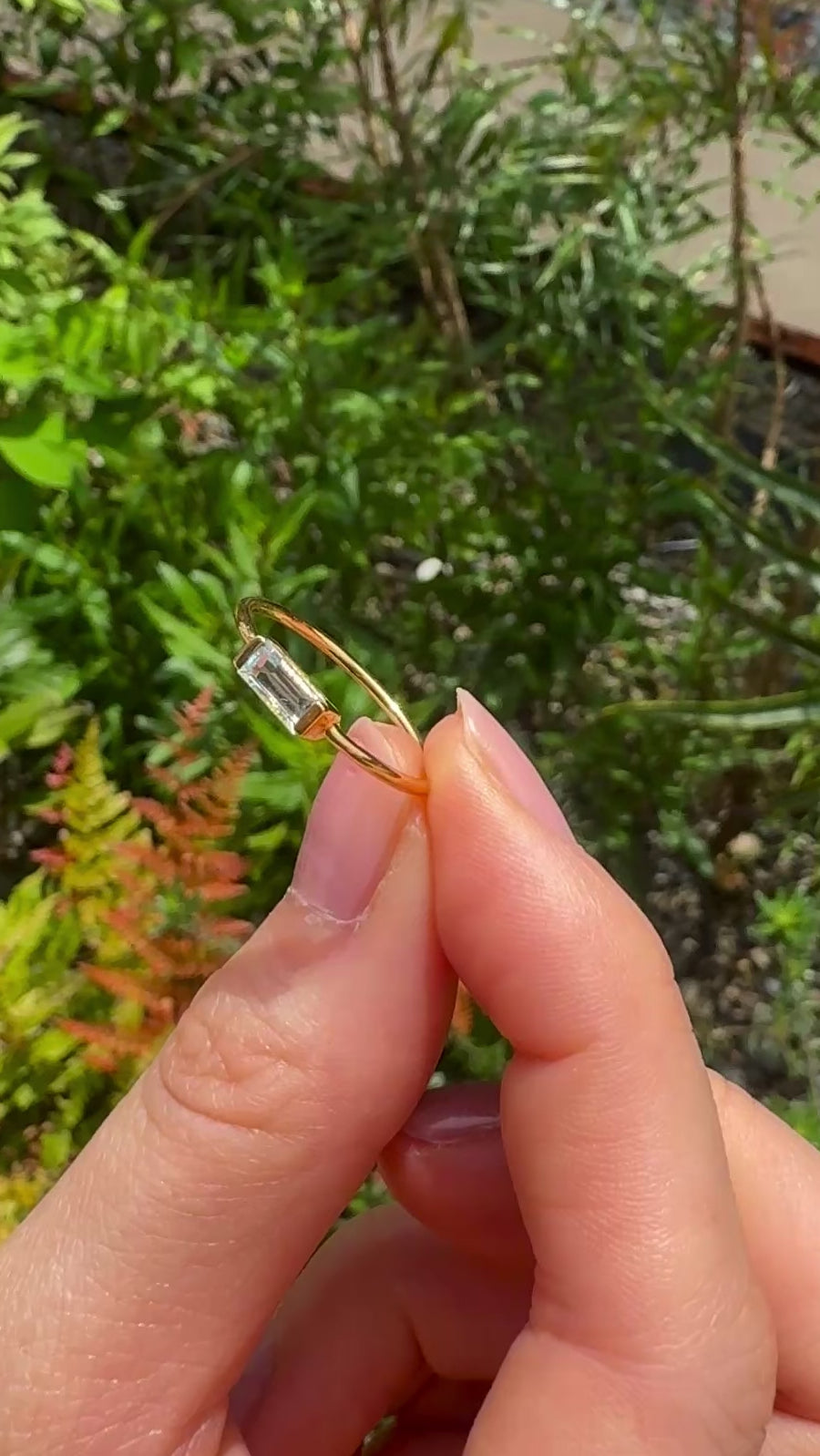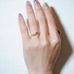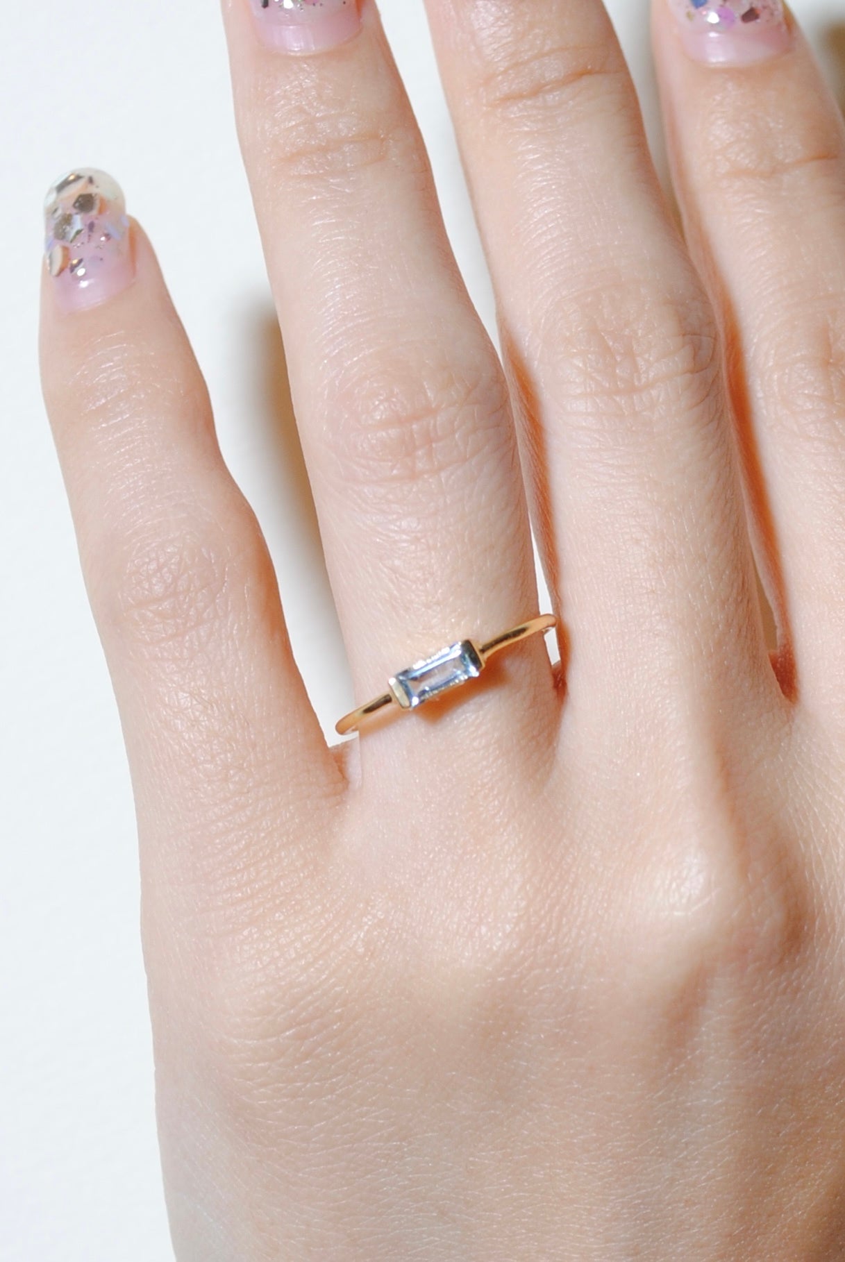 両サイドのみで挟み込むように石を固定したセッティングをしているため、石の美しさがより際立つジュエリーに仕上げました。カラーバリエーションが豊富で、小ぶりなサイズなのでお好きなカラーを2つ重ね付けしても素敵です。