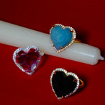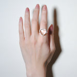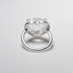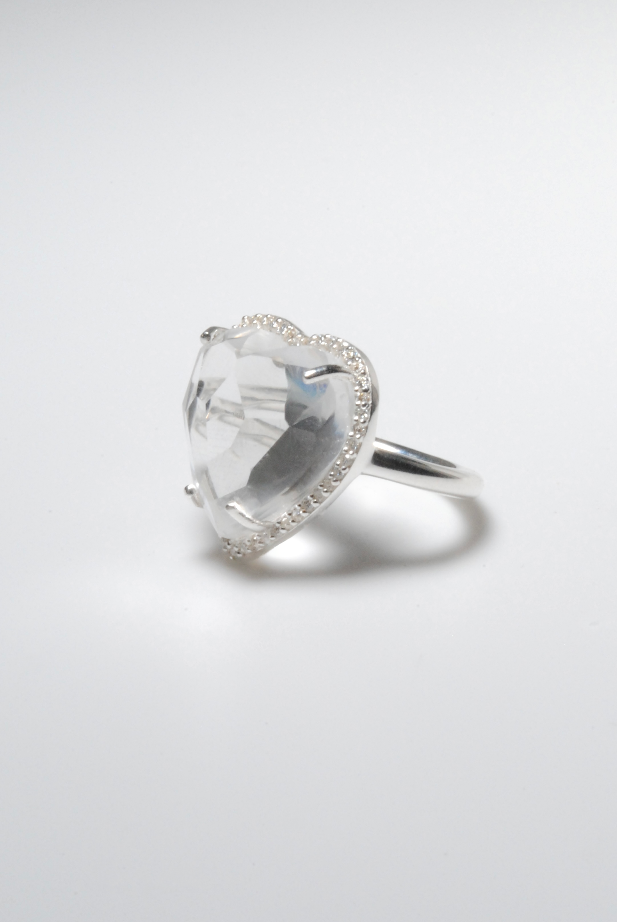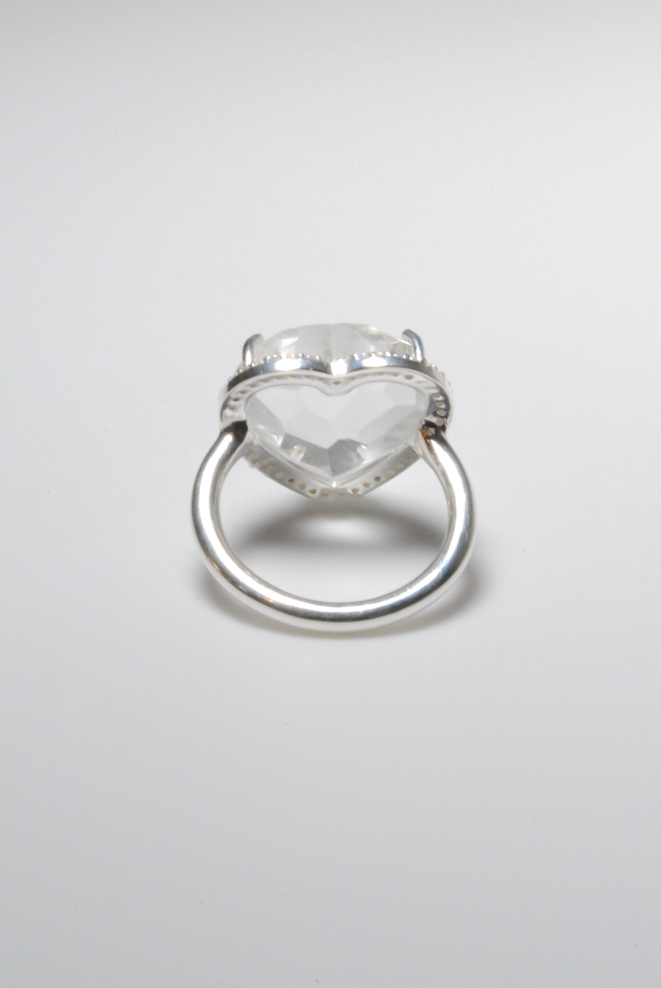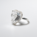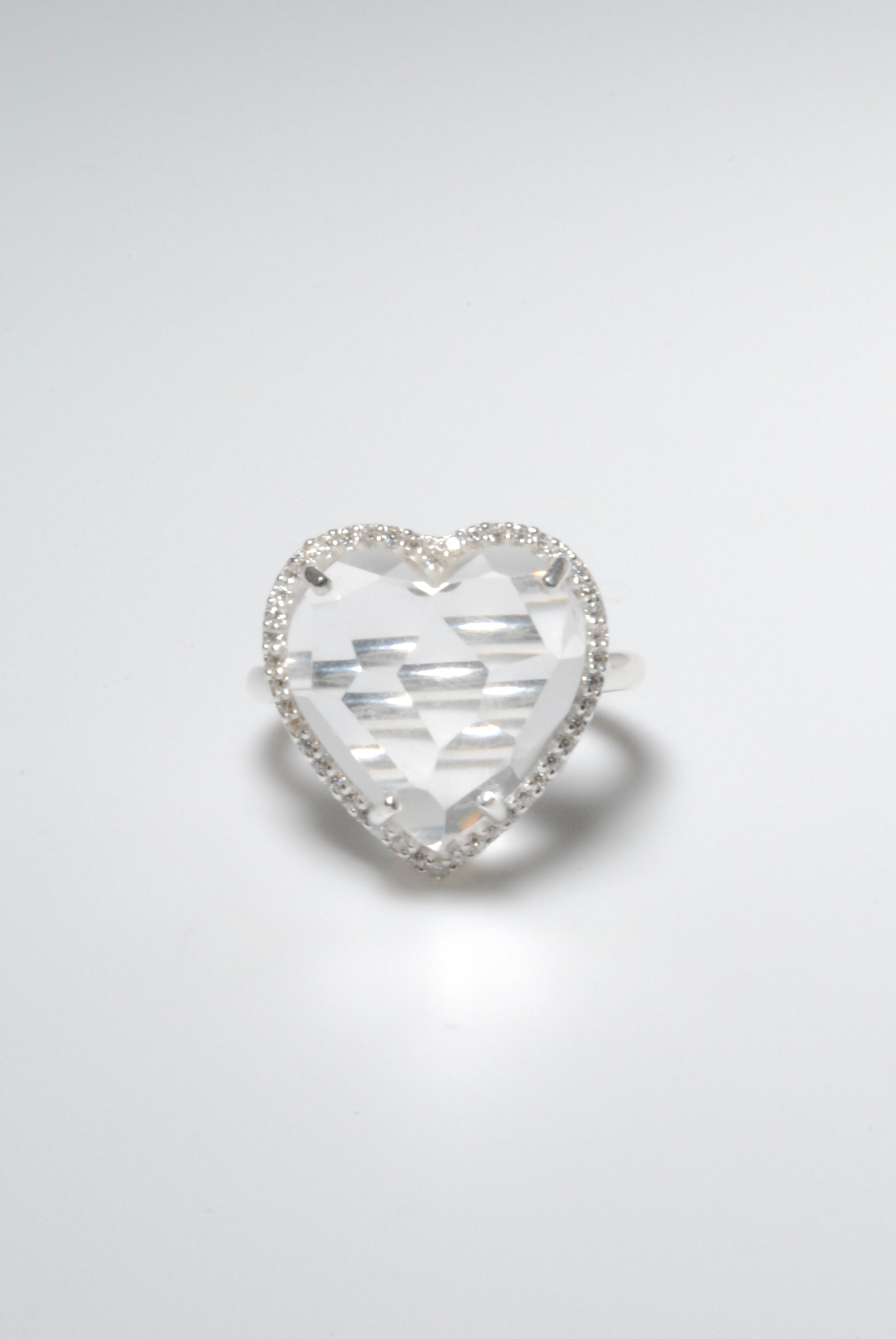存在感のあるハートが指先で輝く主役級リング。表面に施されたカットが角度により、立体的な輝きを引き出します。
