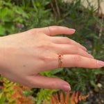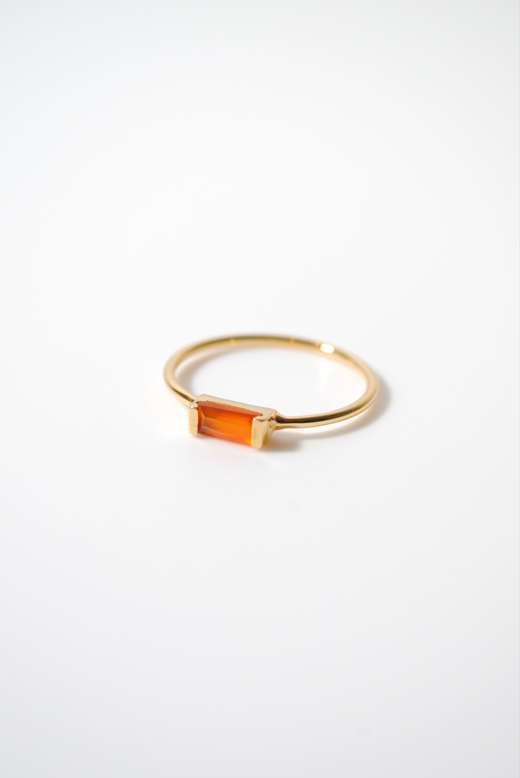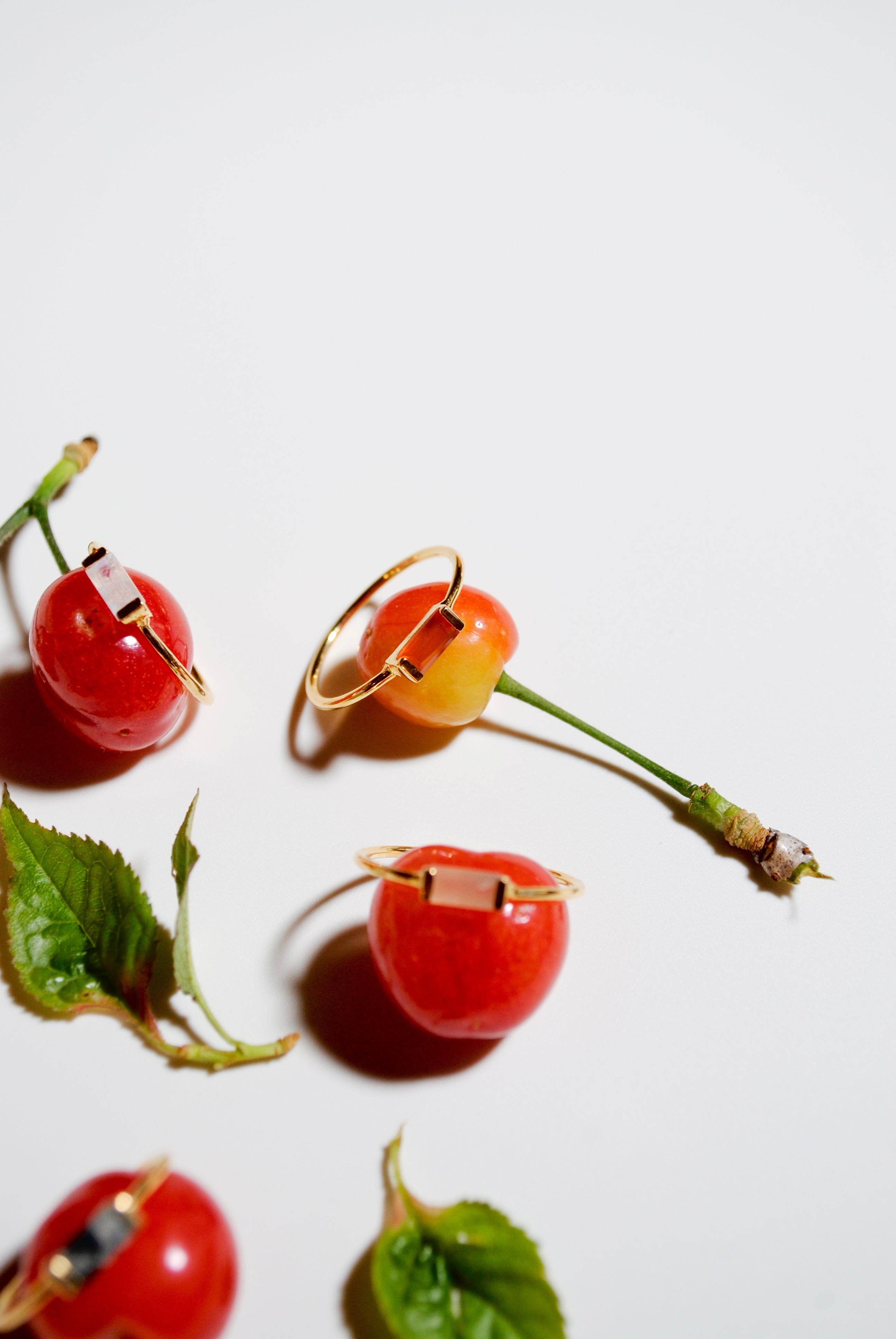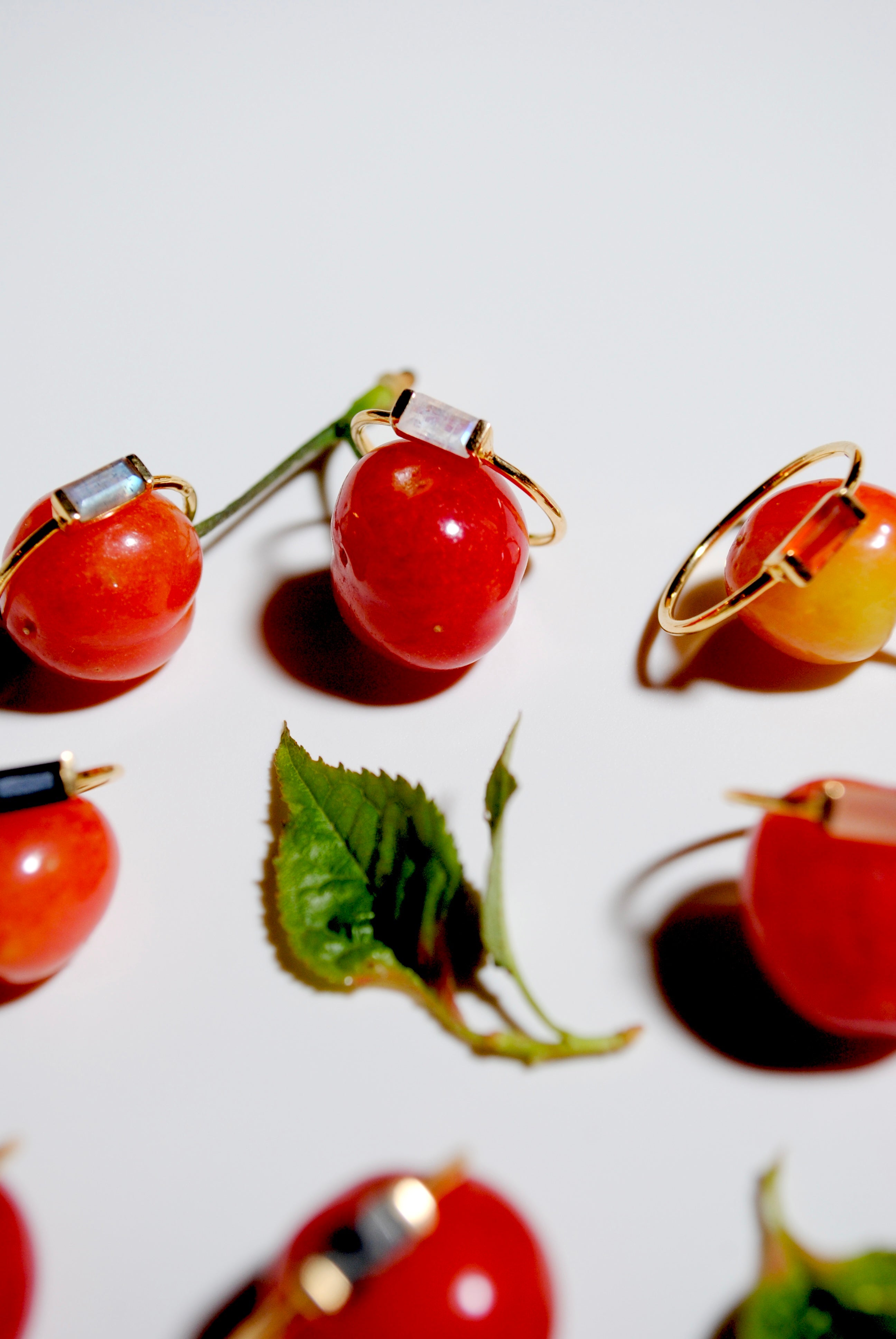 両サイドのみで挟み込むように石を固定したセッティングをしているため、石の美しさがより際立つジュエリーに仕上げました。カラーバリエーションが豊富で、小ぶりなサイズなのでお好きなカラーを2つ重ね付けしても素敵です。