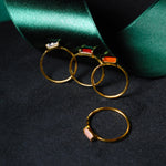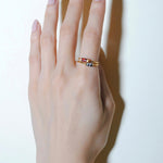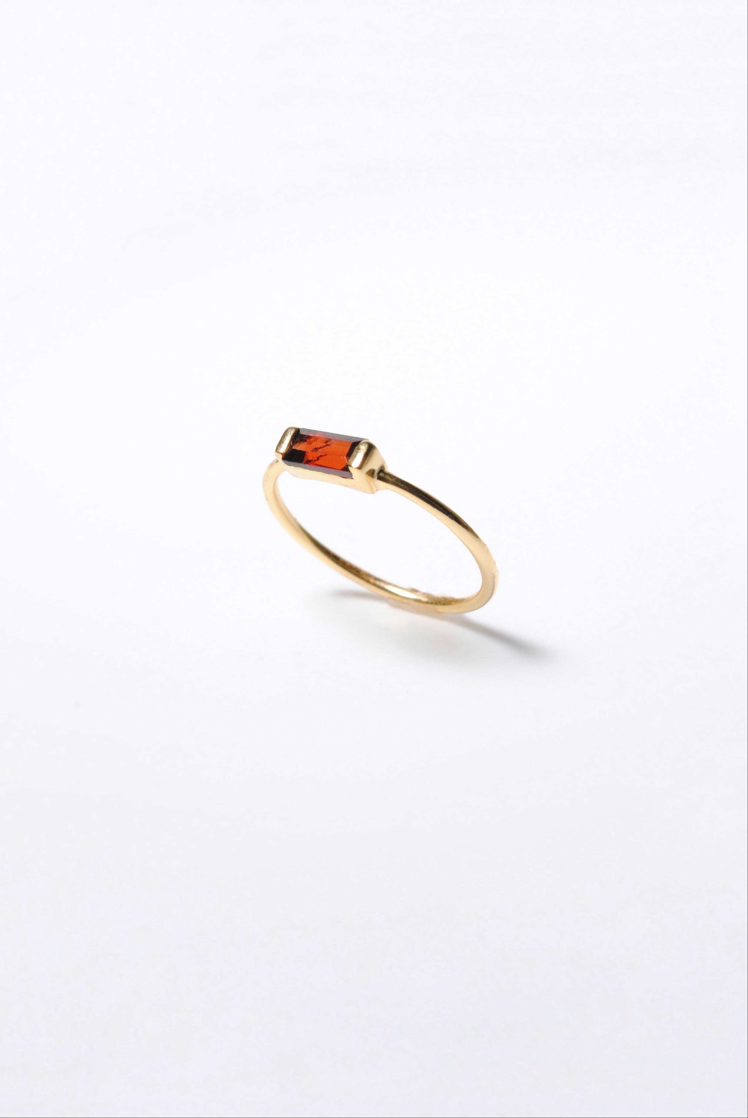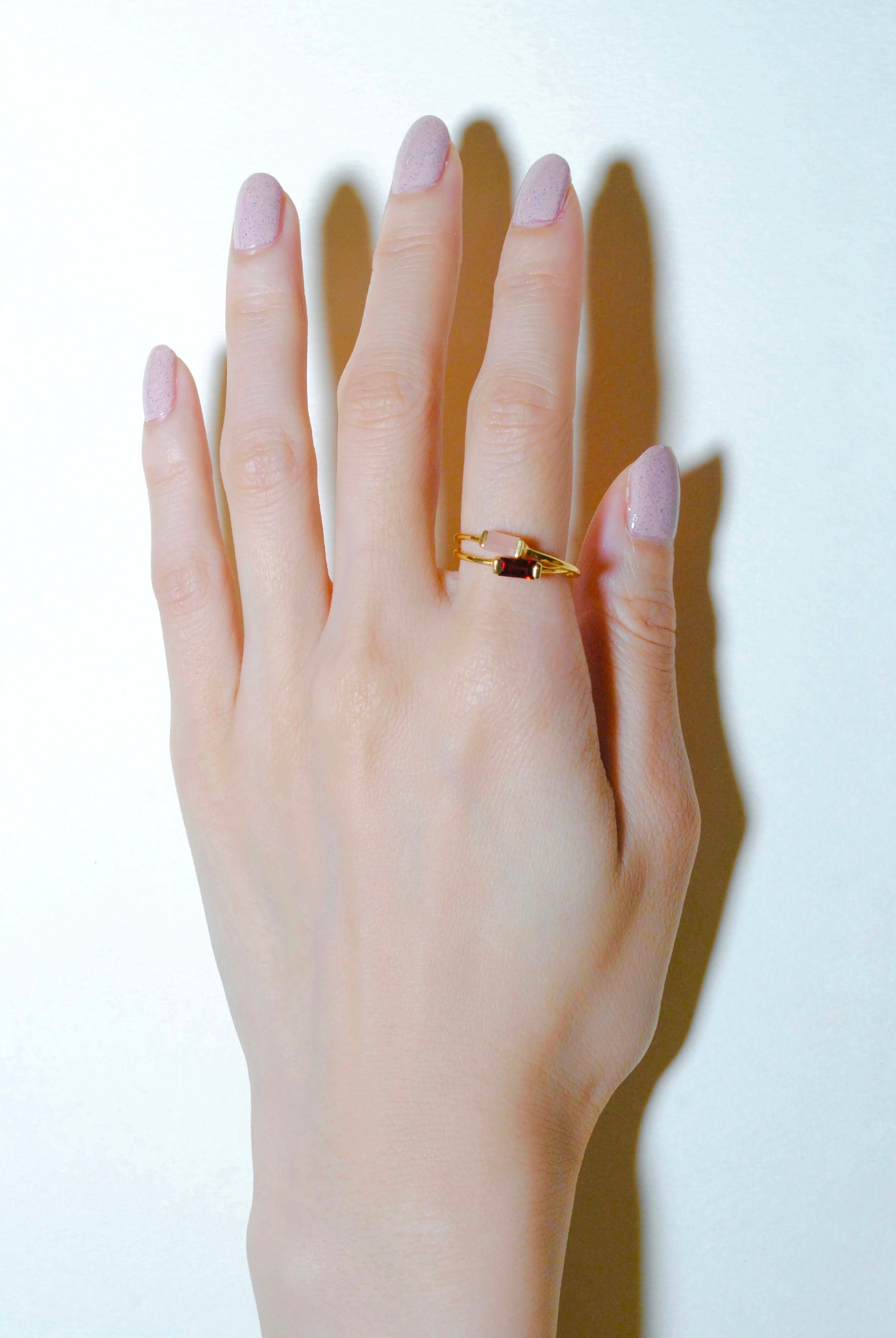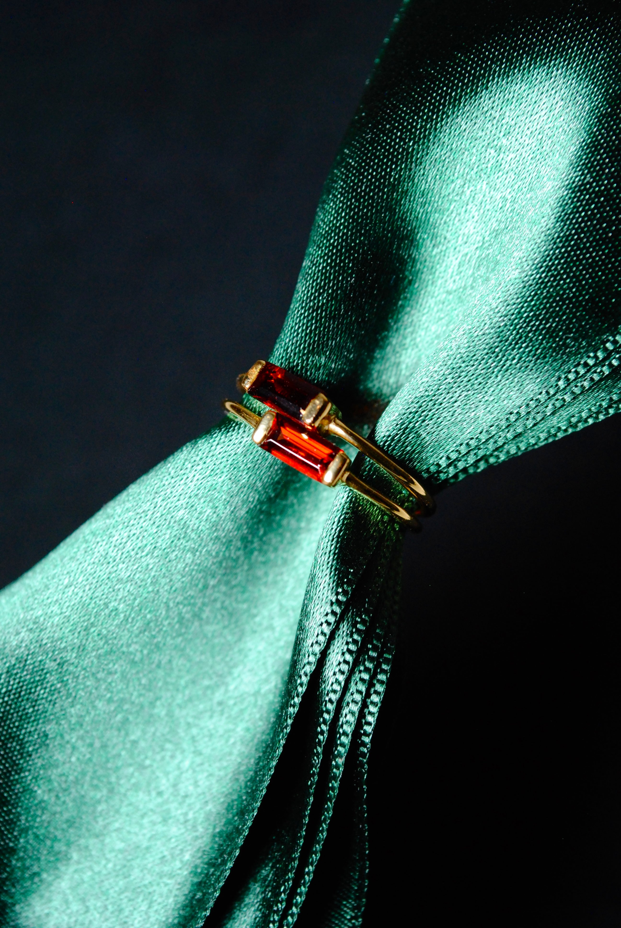 両サイドのみで挟み込むように石を固定したセッティングをしているため、石の美しさがより際立つジュエリーに仕上げました。カラーバリエーションが豊富で、小ぶりなサイズなのでお好きなカラーを2つ重ね付けしても素敵です。