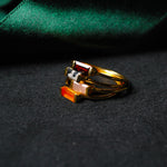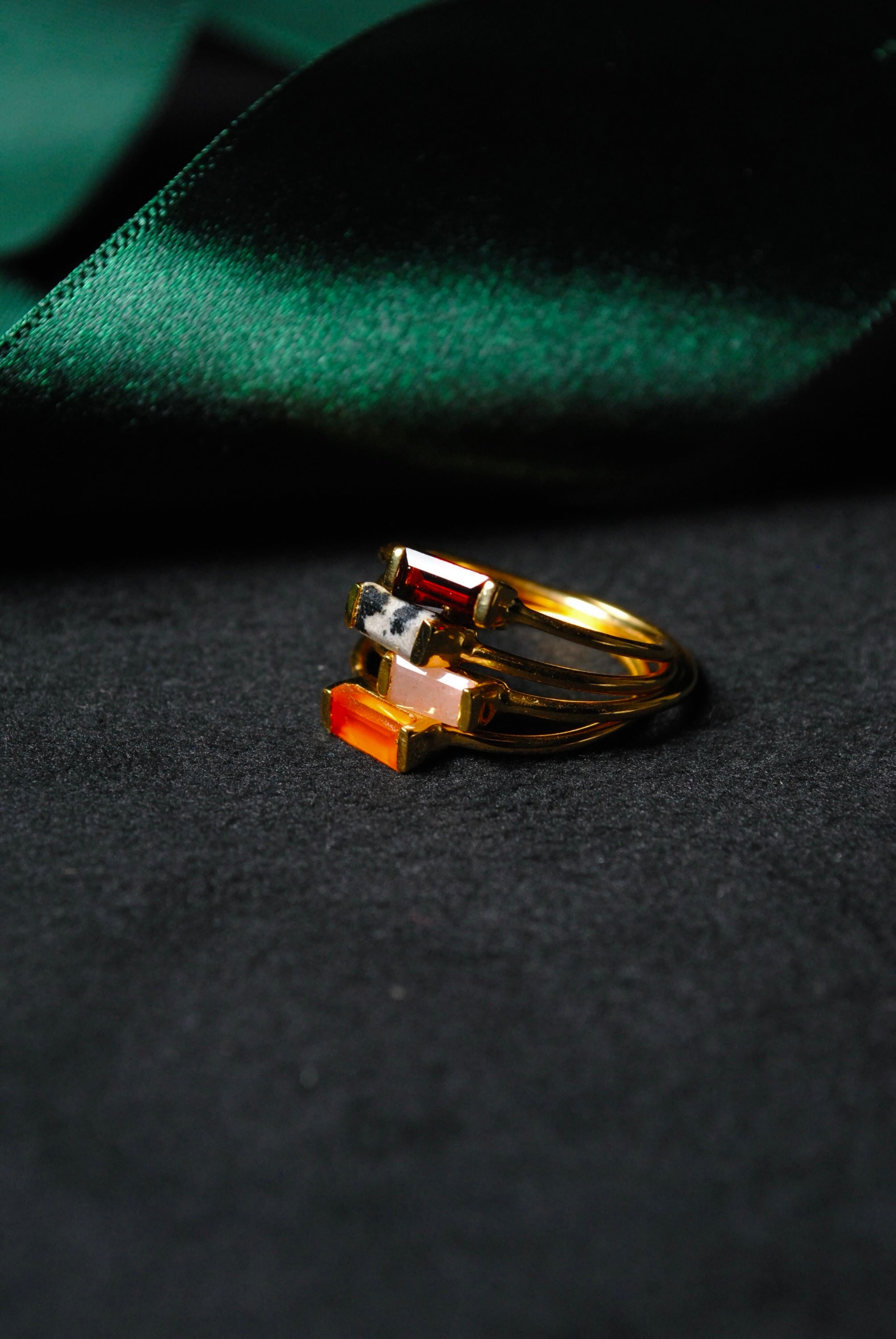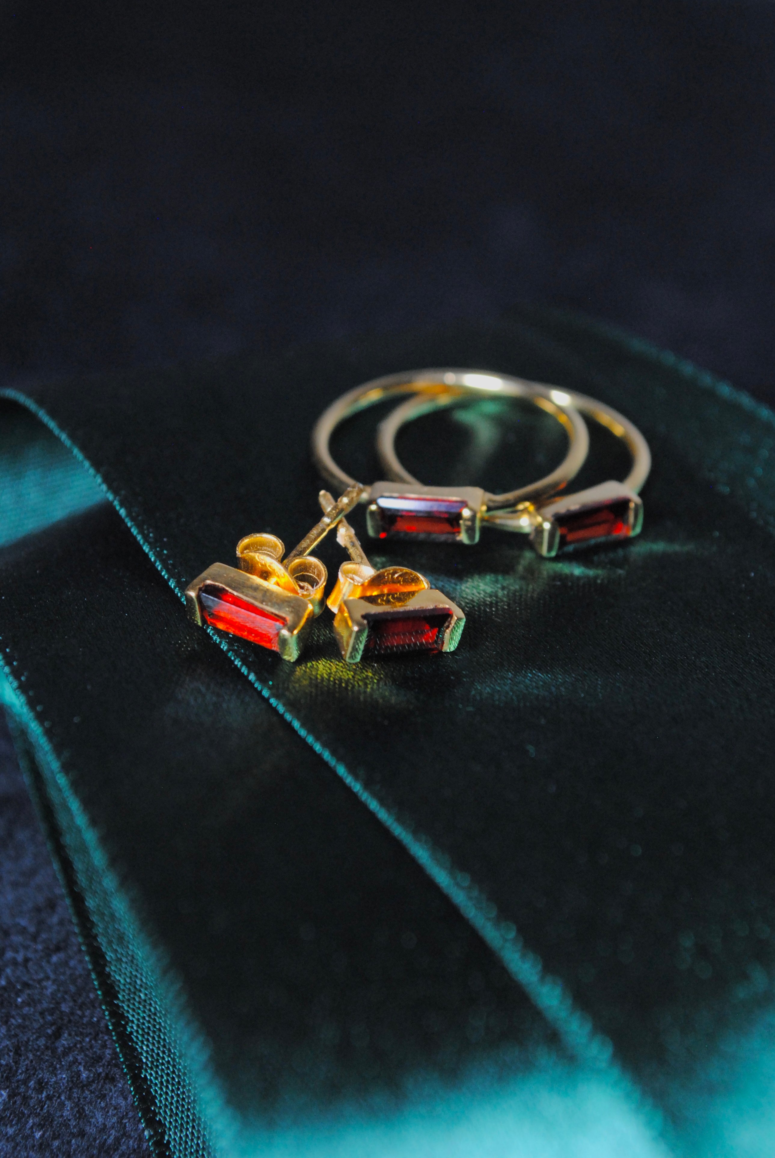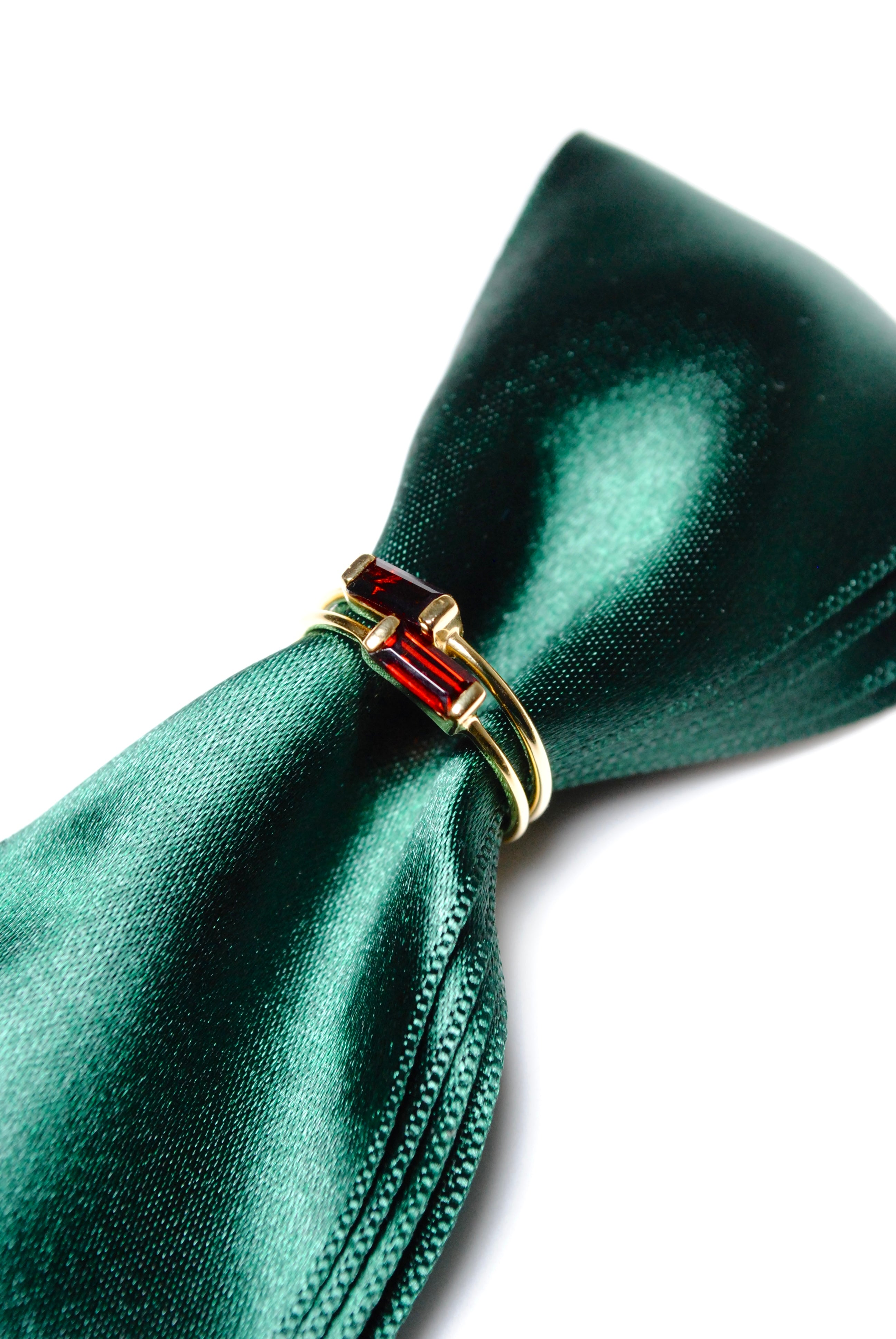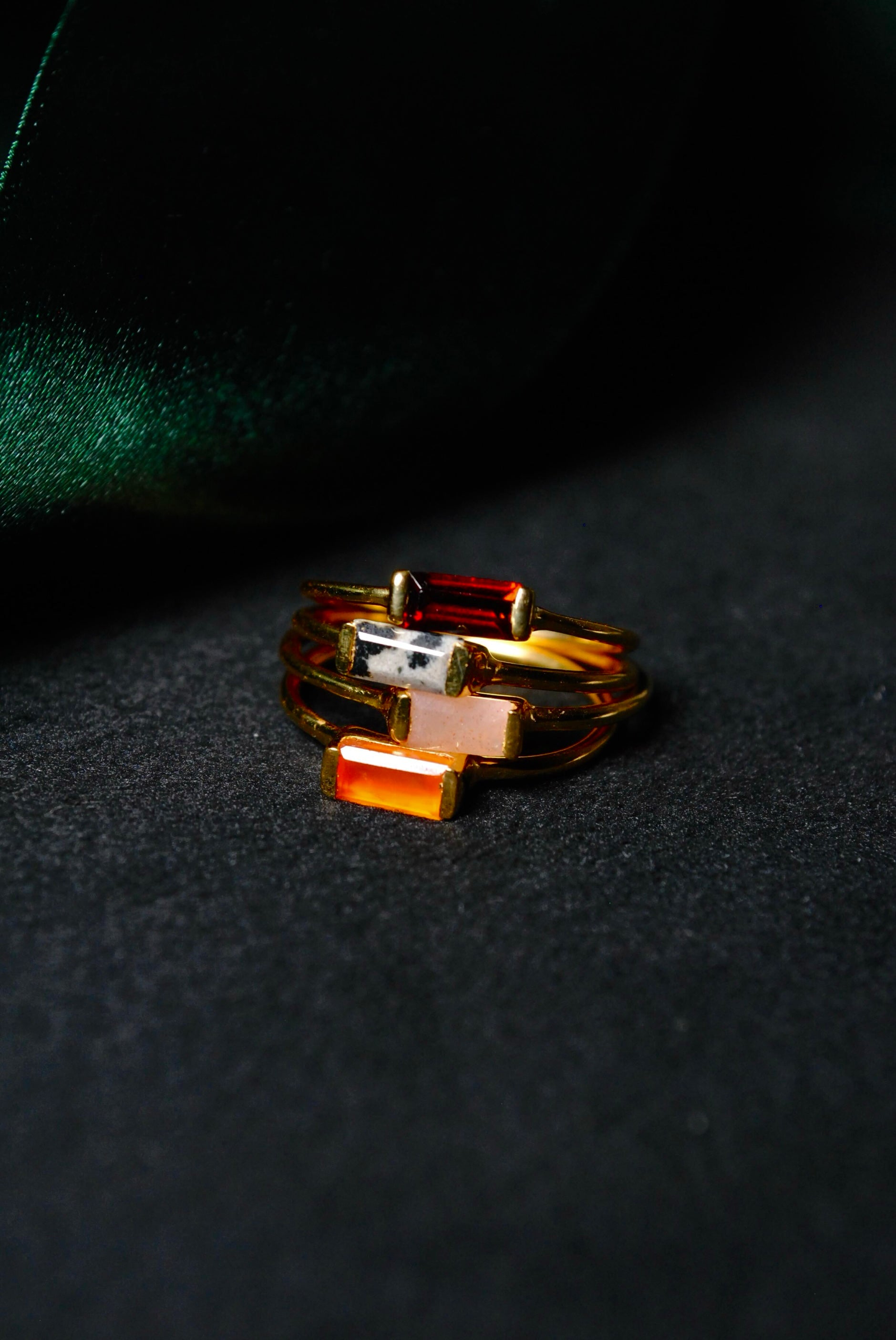 両サイドのみで挟み込むように石を固定したセッティングをしているため、石の美しさがより際立つジュエリーに仕上げました。カラーバリエーションが豊富で、小ぶりなサイズなのでお好きなカラーを2つ重ね付けしても素敵です。