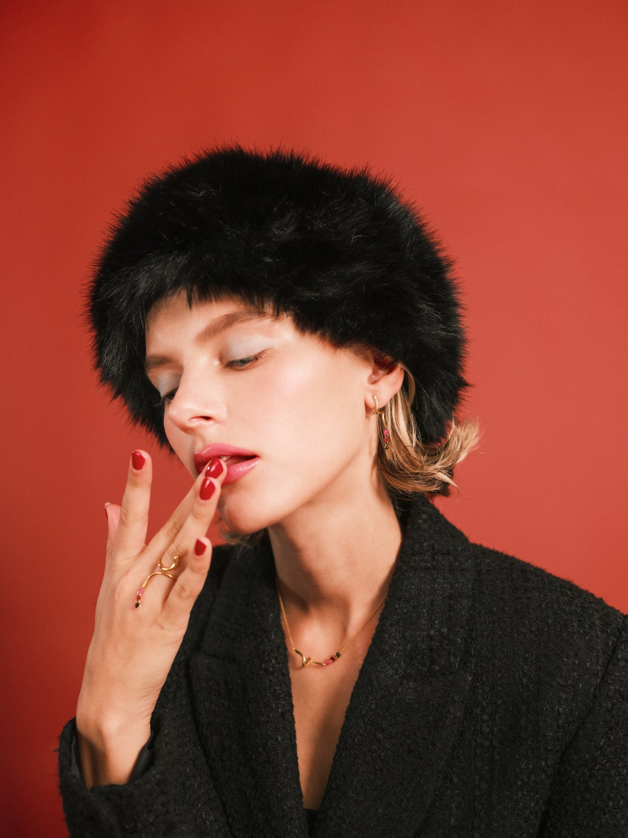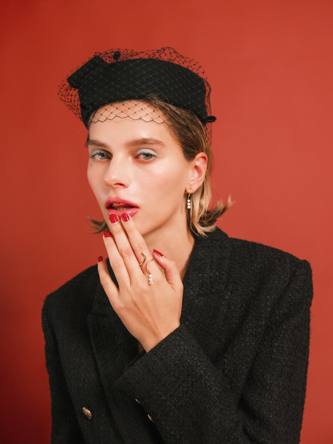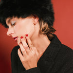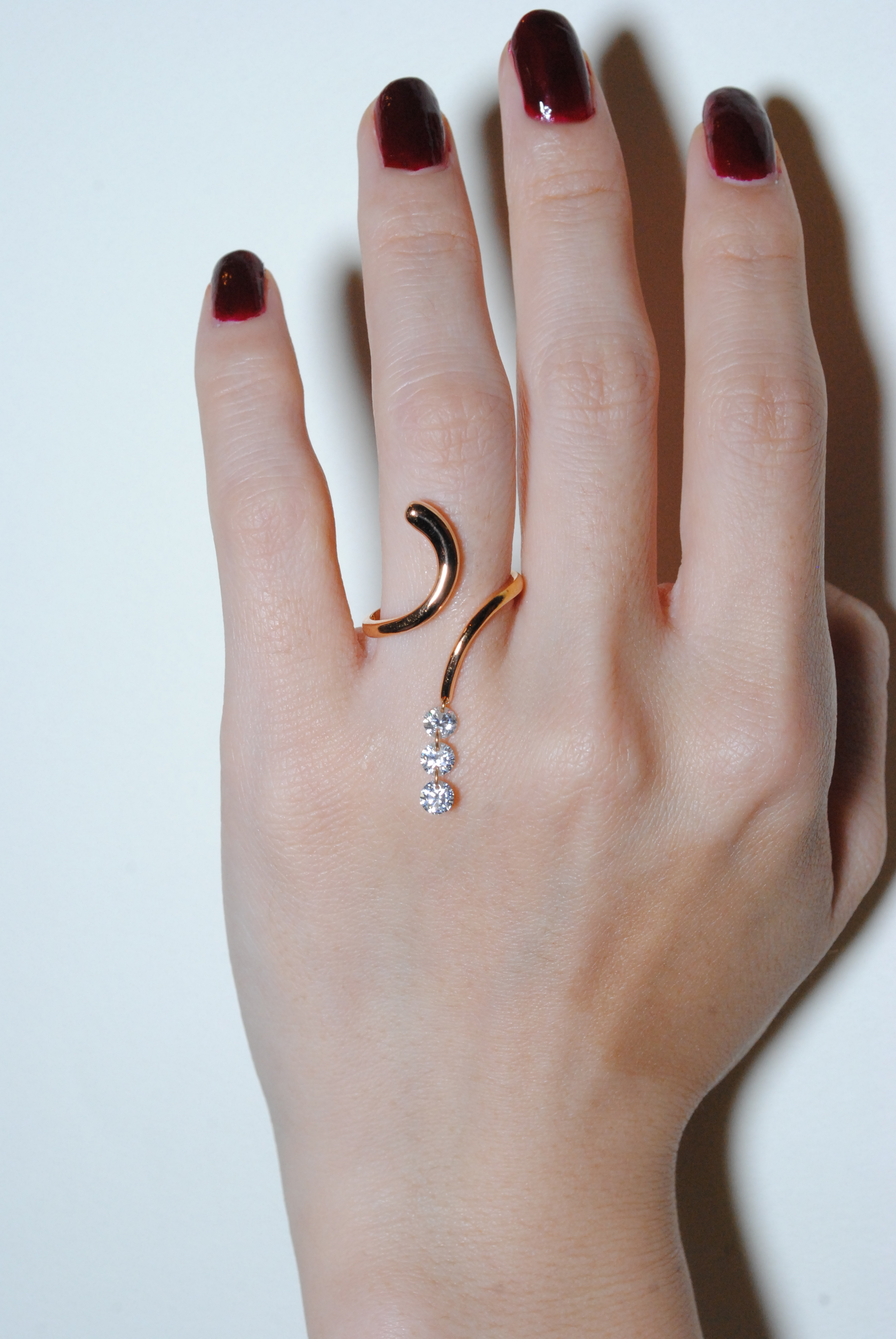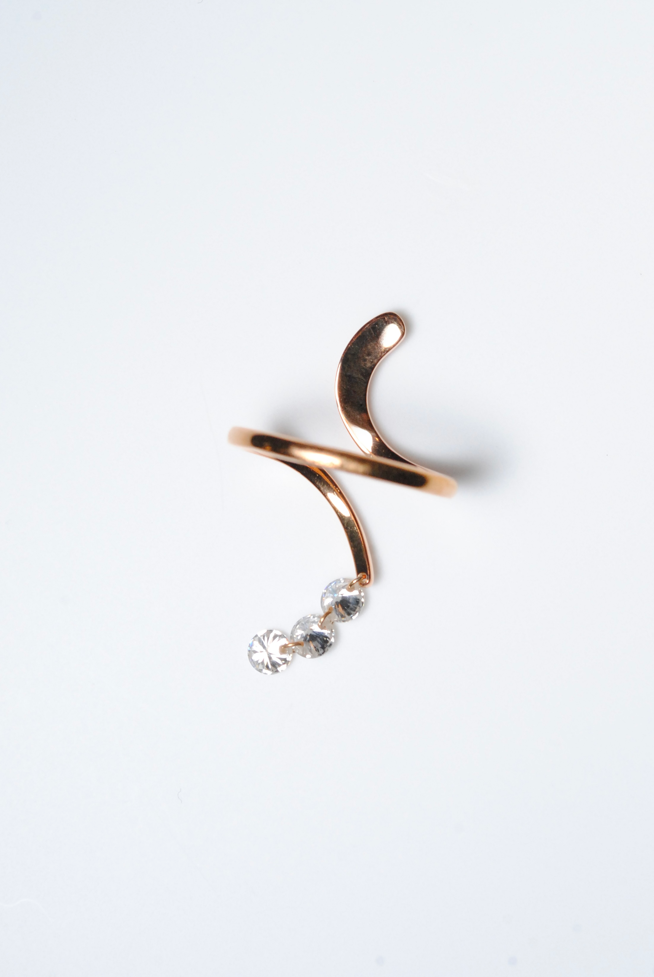 指にくるりと巻き付くラインの先に、小さな“しっぽ”のように揺れるカラーストーンが輝くリング。愛らしいシルエットの中に洗練された遊び心を宿し、見るたびに心を弾ませてくれるデザイン。