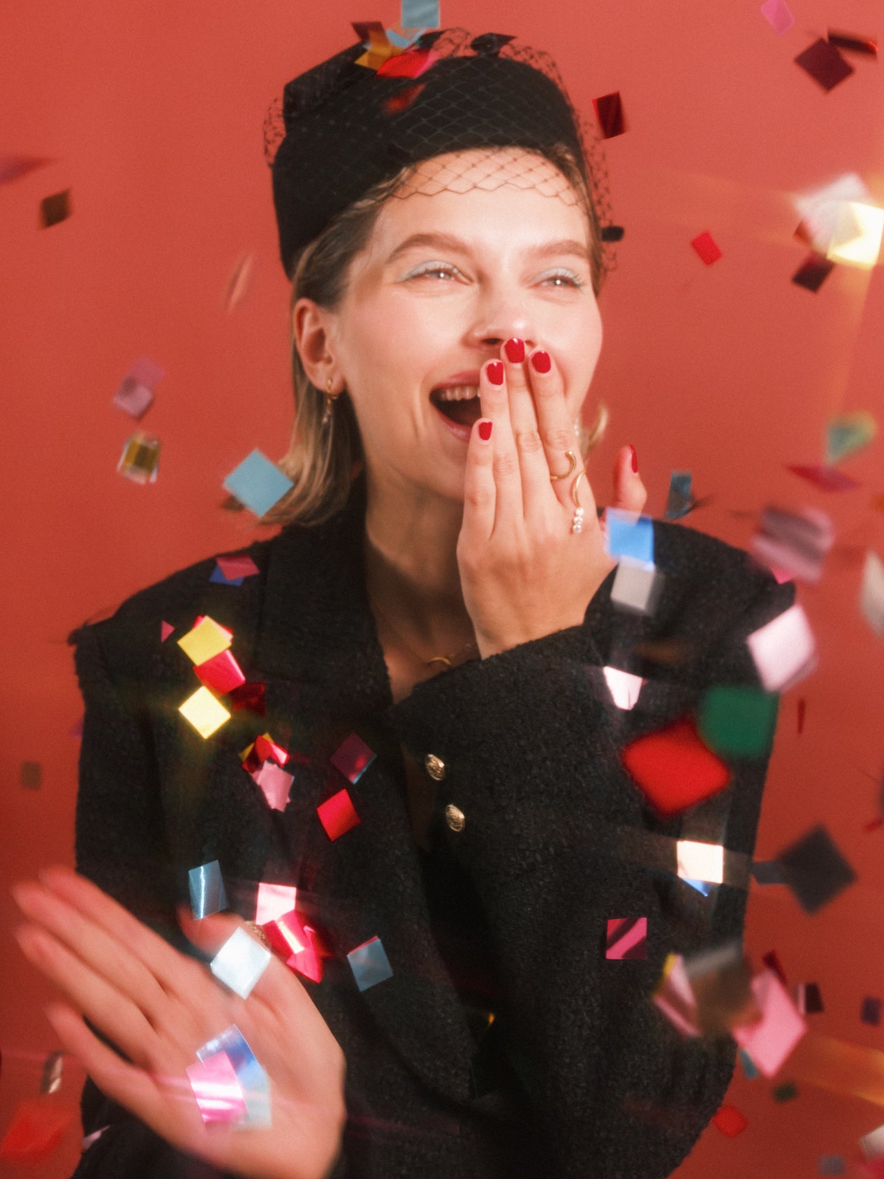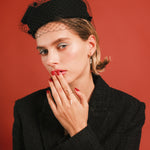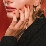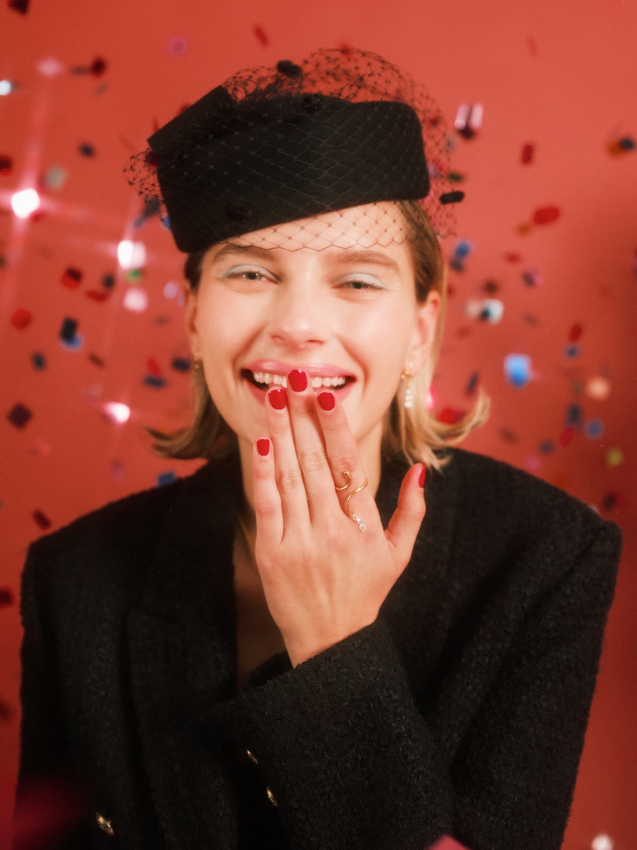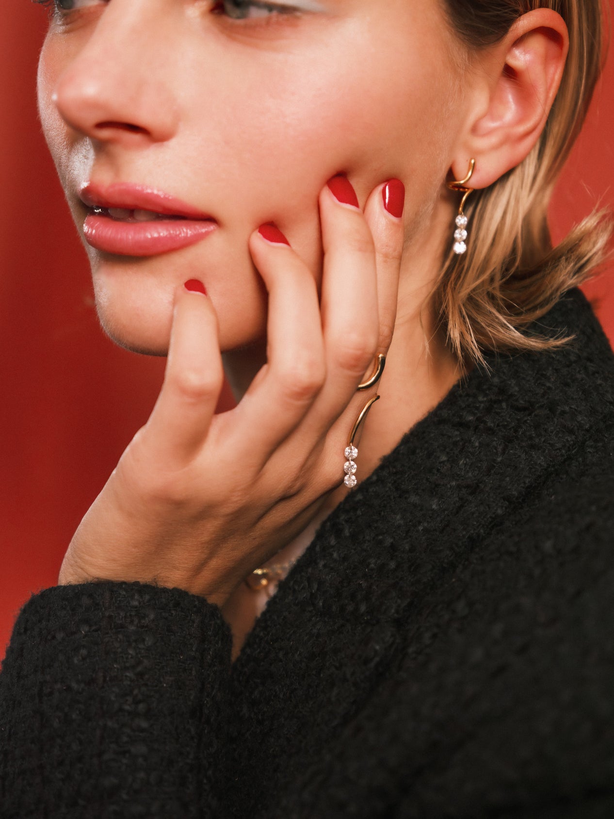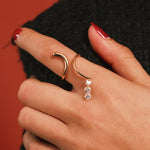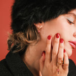 指にくるりと巻き付くラインの先に、小さな“しっぽ”のように揺れるカラーストーンが輝くリング。愛らしいシルエットの中に洗練された遊び心を宿し、見るたびに心を弾ませてくれるデザイン。