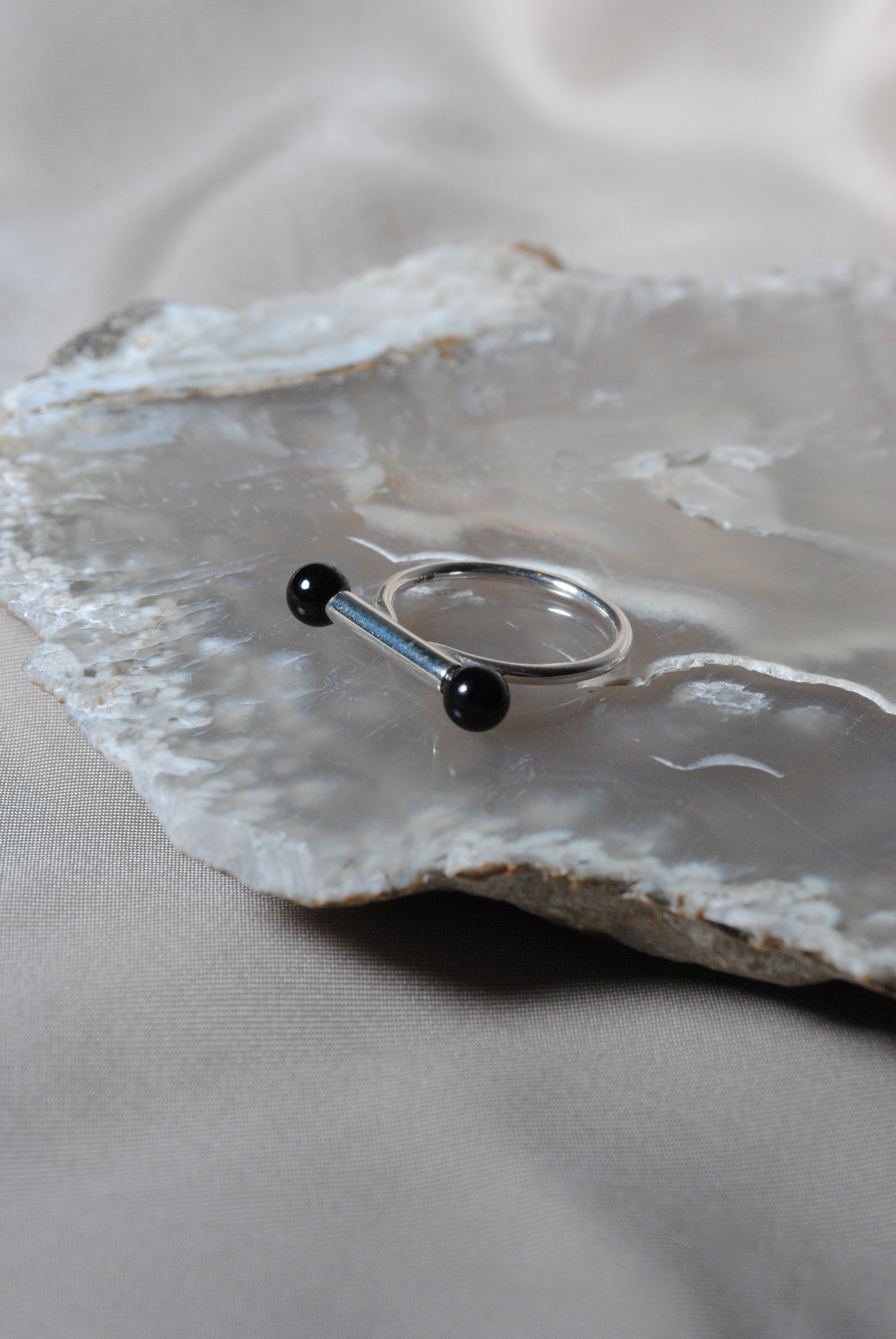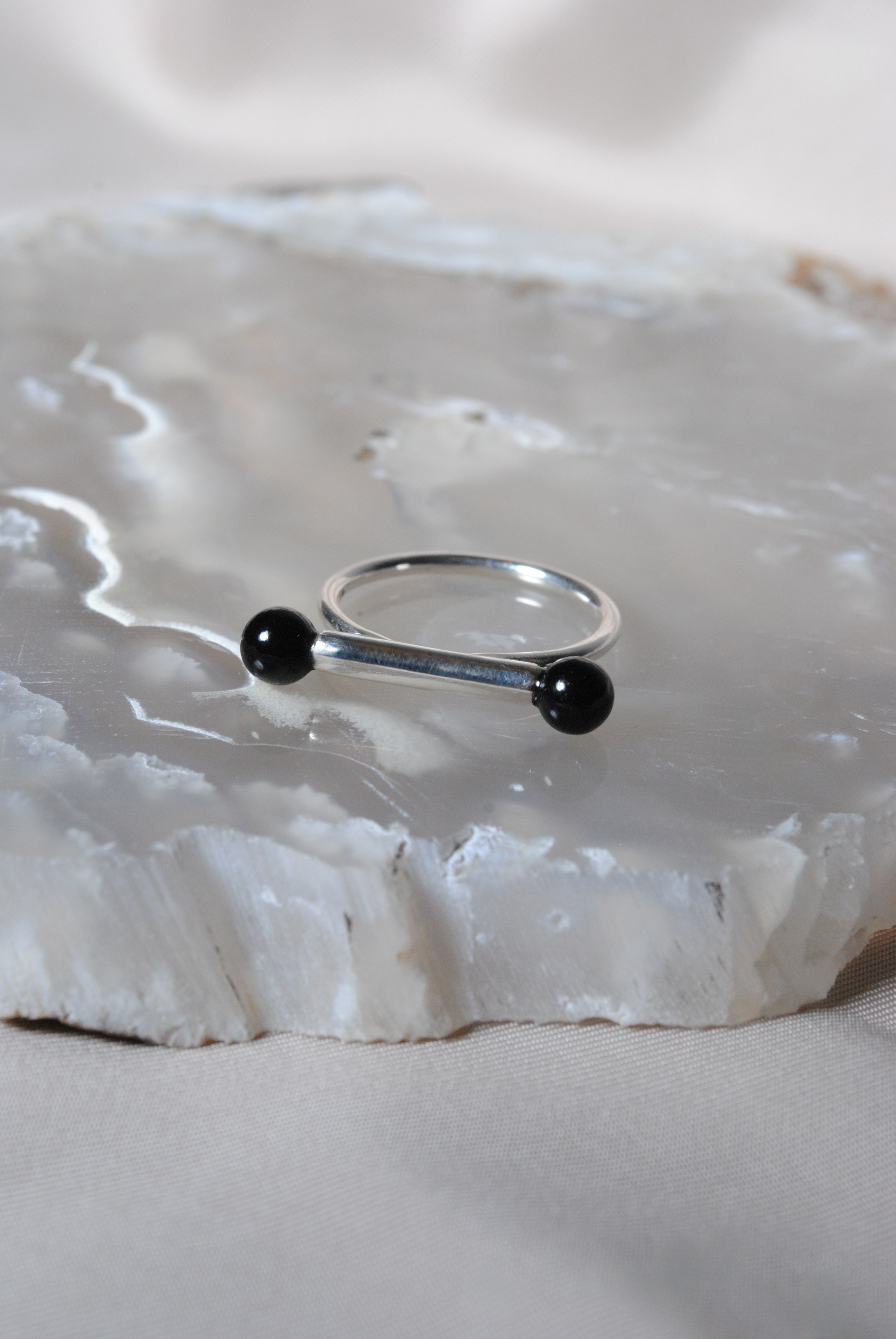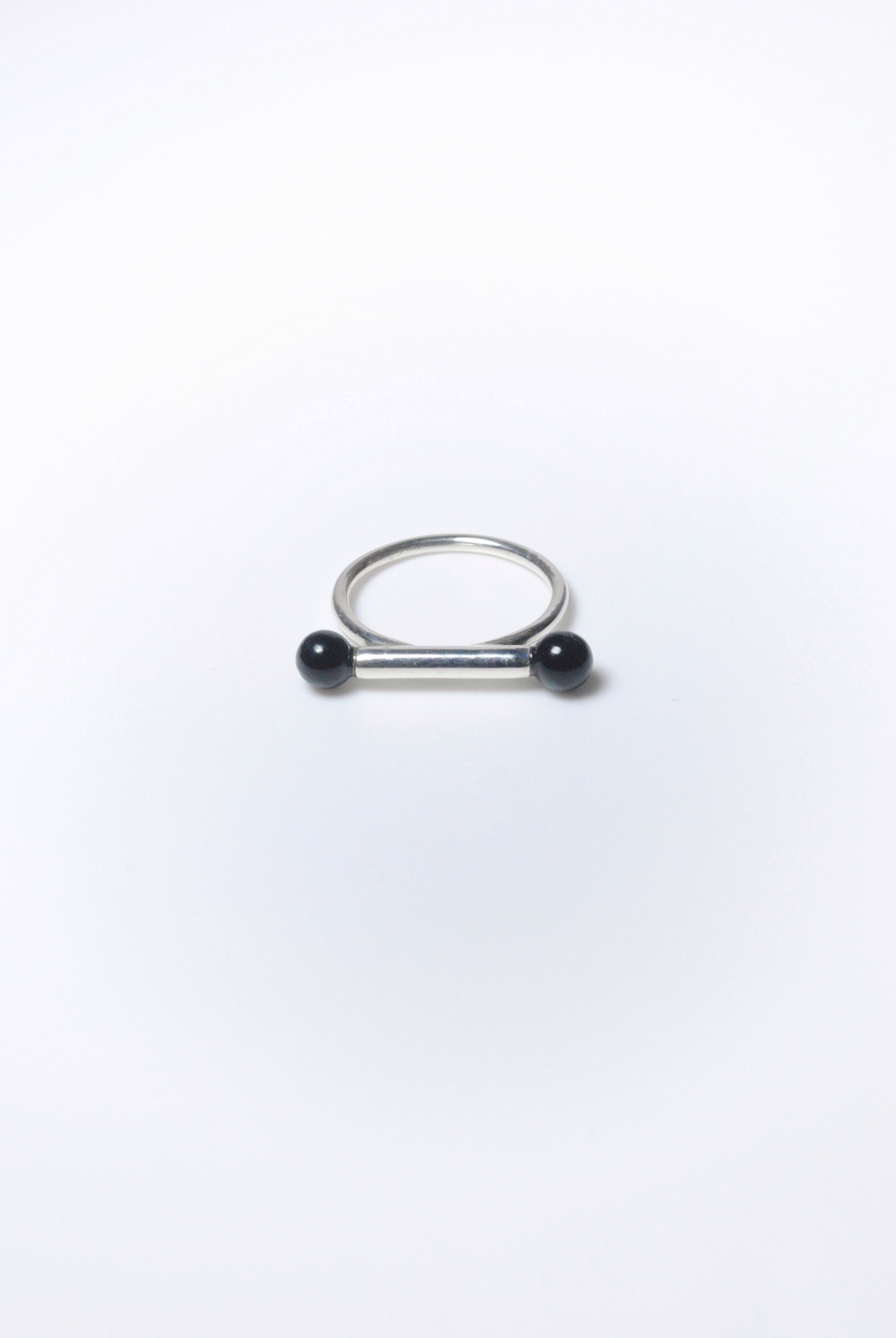 両端にストーンを携えた、まるで小さなバトンのようなリング。“想いをつなぐ“という意味を込めて、日常の中にそっと寄り添う、お守りのようなジュエリーに。