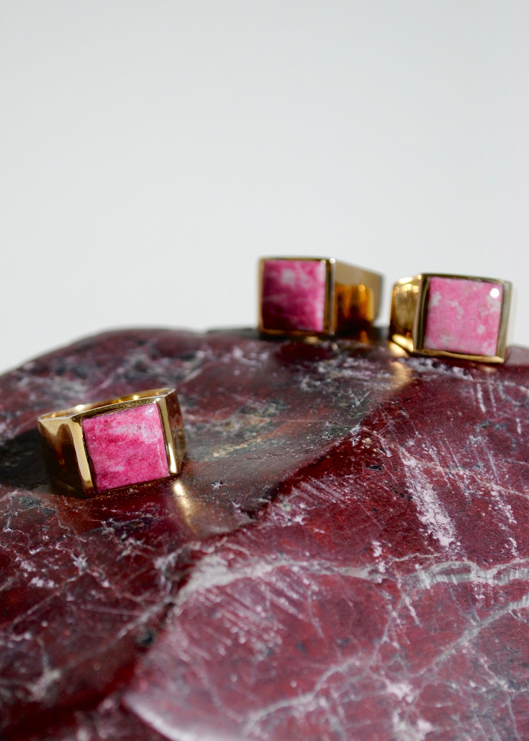 (ローズクオーツ/gold) unisex block ring