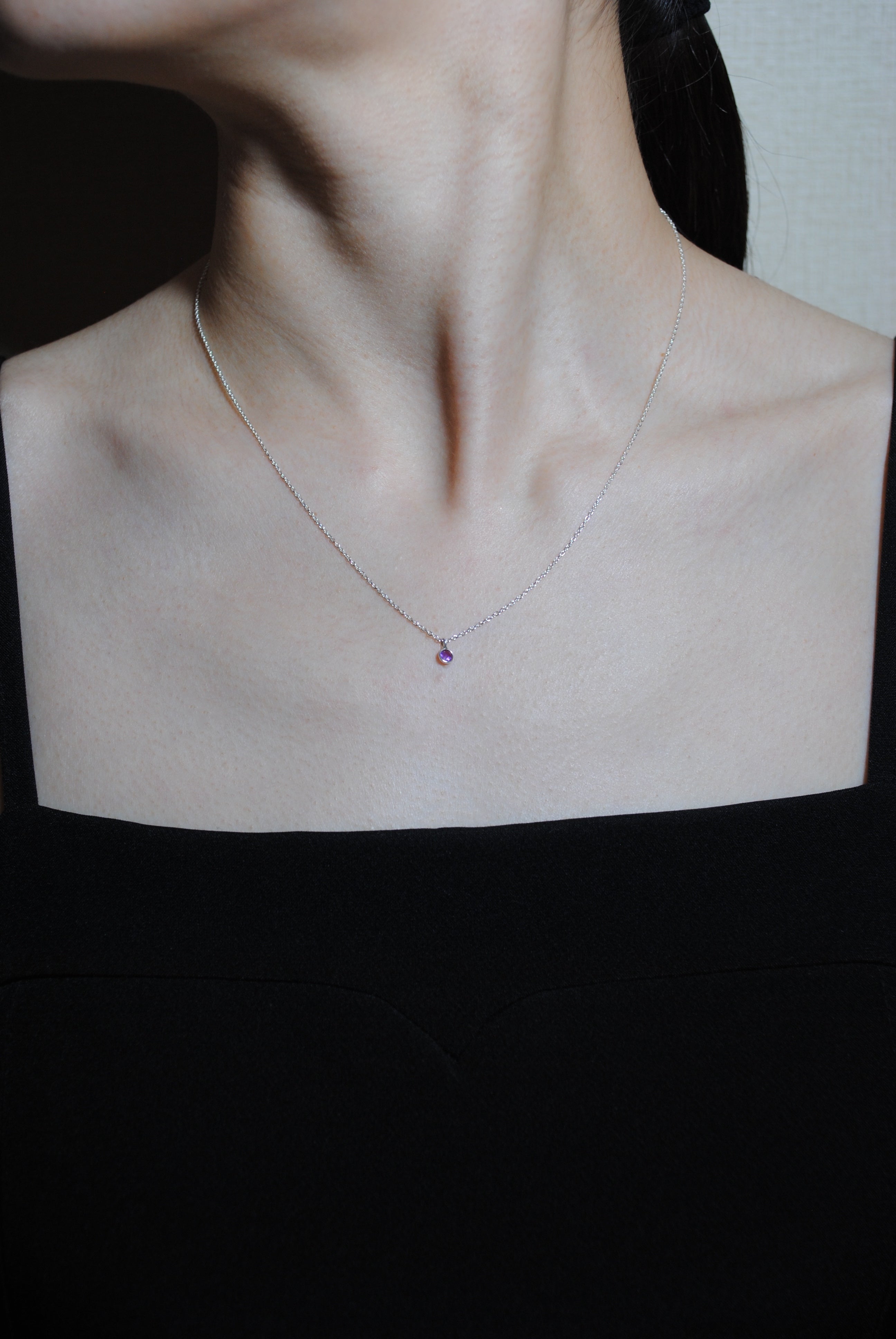 (アメジスト/gold-silver) birth pinky necklace【2月誕生石】