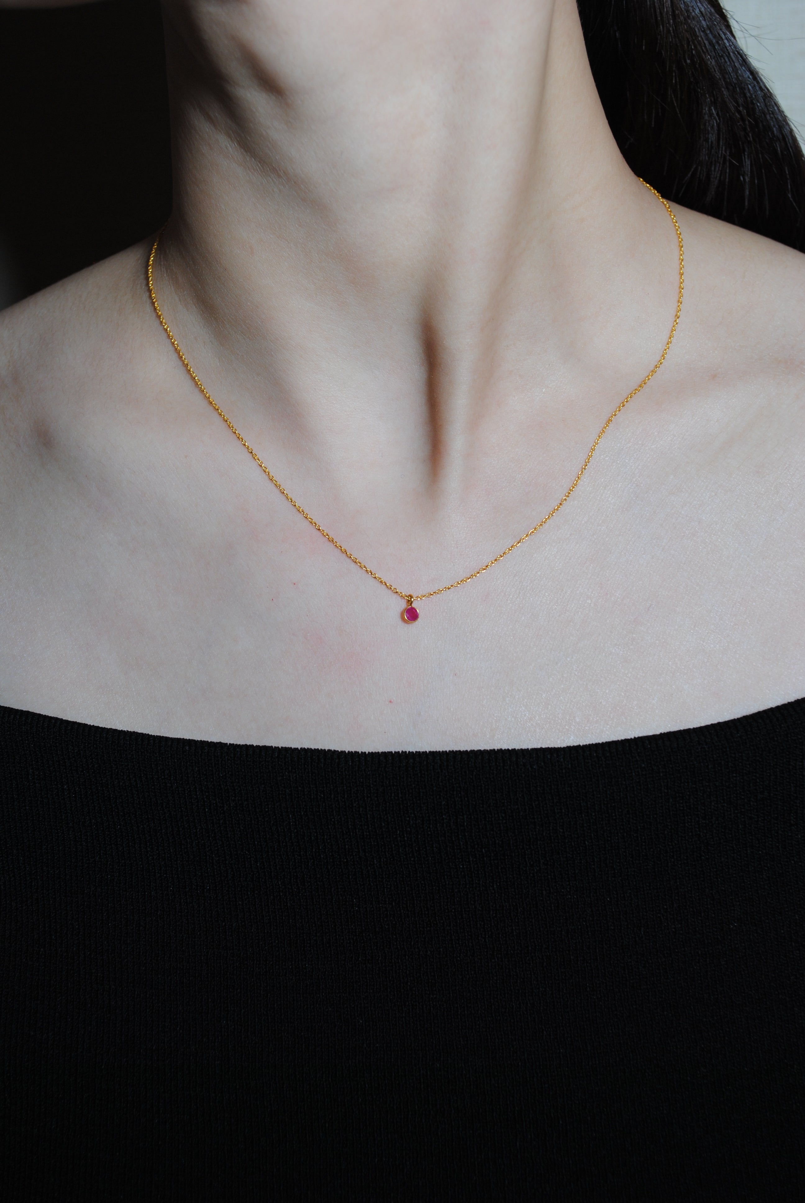 (ルビー/gold-silver) birth pinky necklace【7月誕生石】