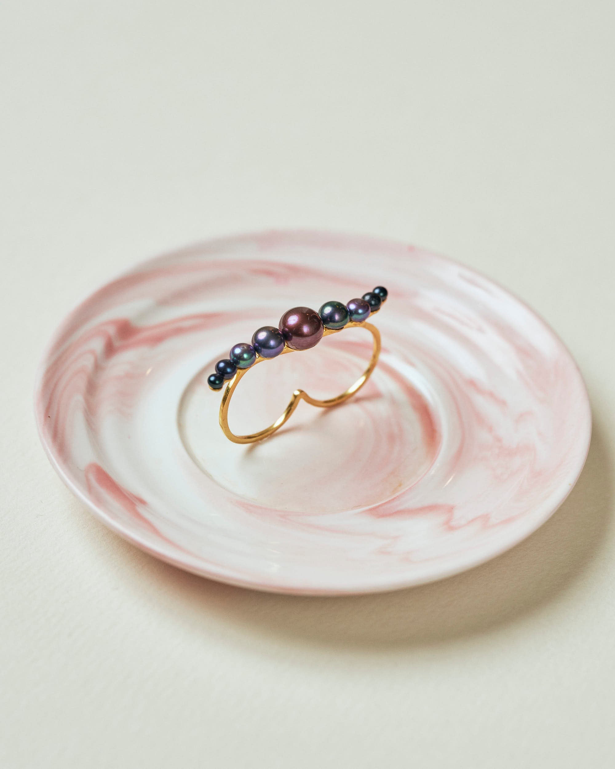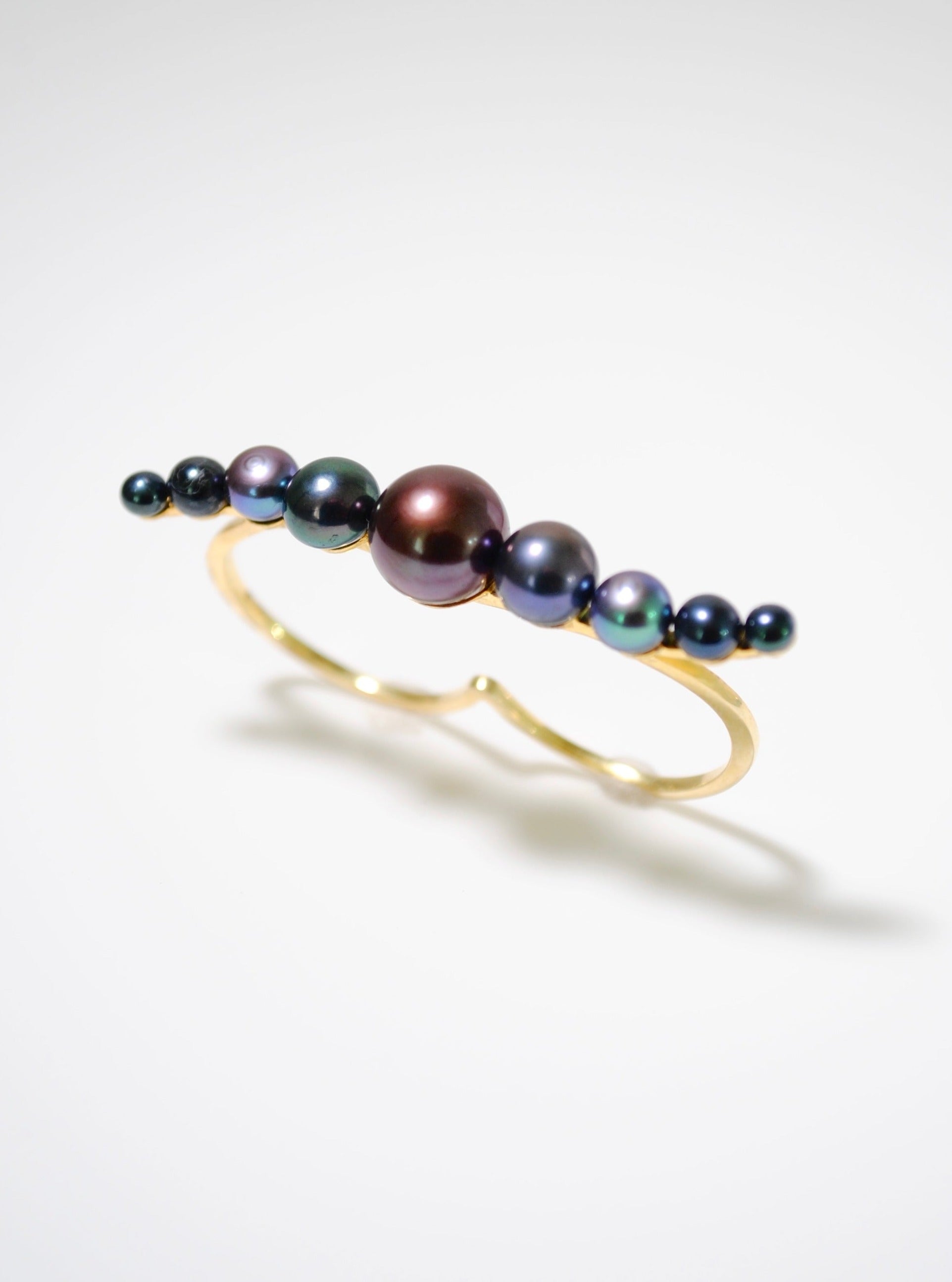 (ブラックパール/ gold ) waving pearl double finger ring