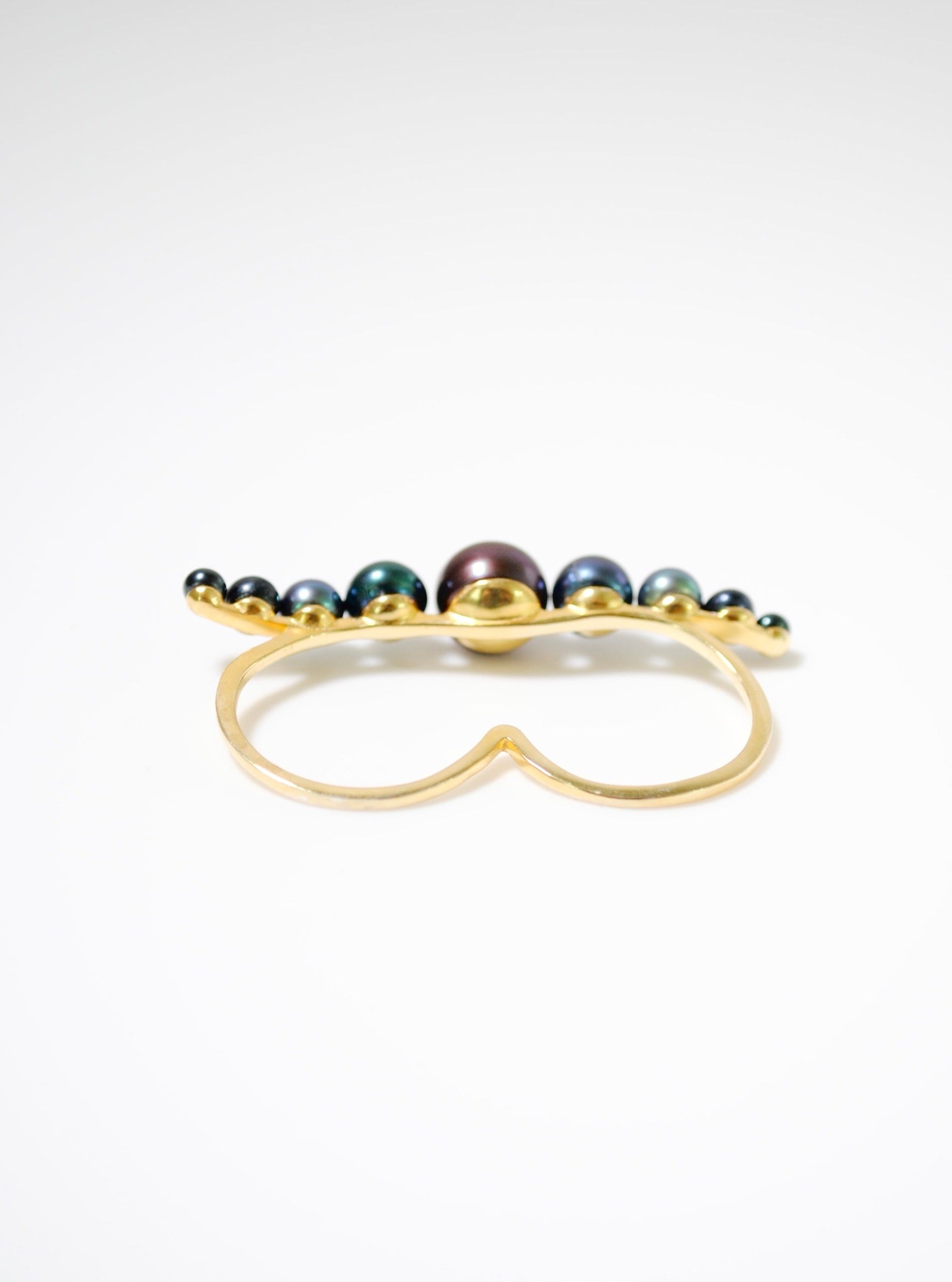 "waving pearl double finger ring"