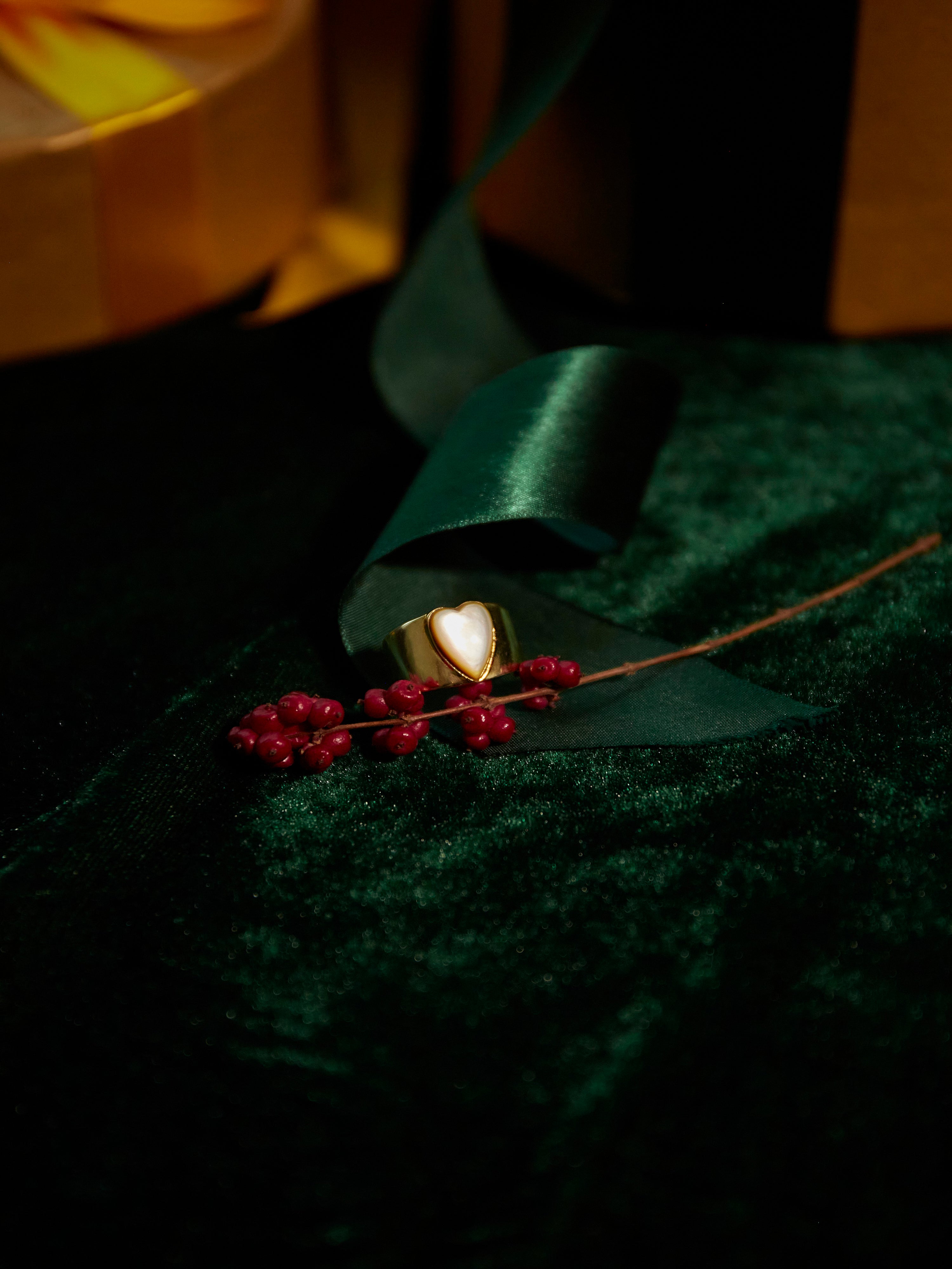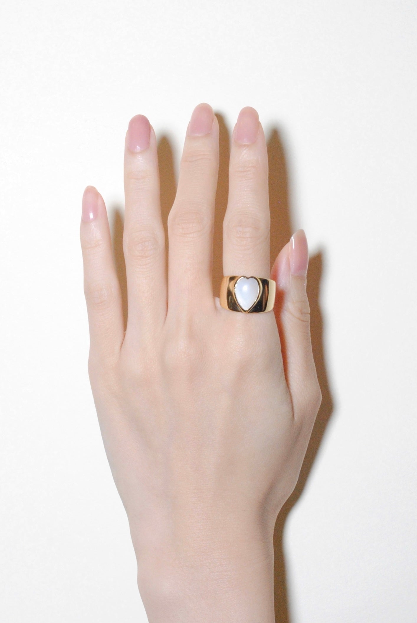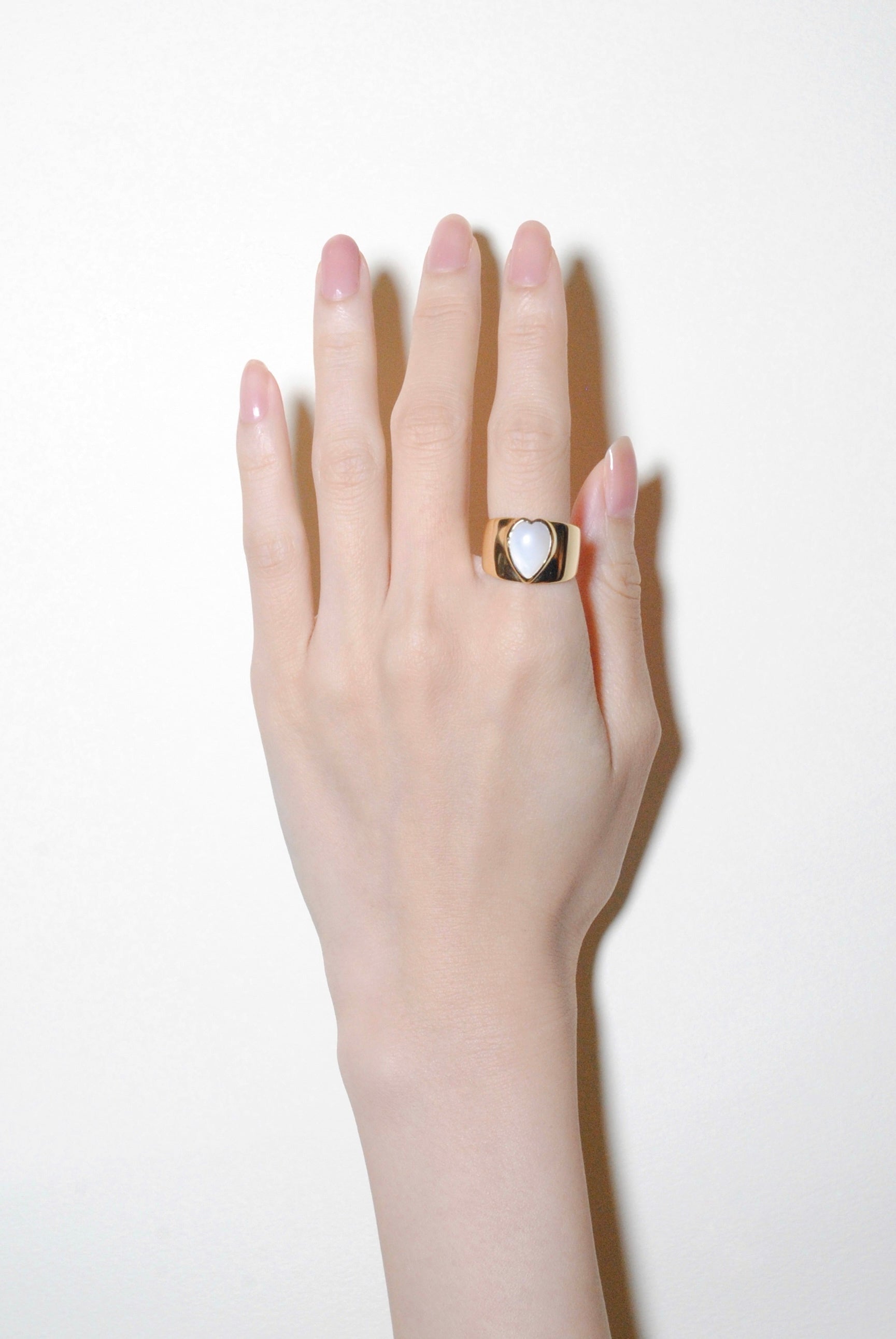 (マザーオブパール/gold) long heart rough ring