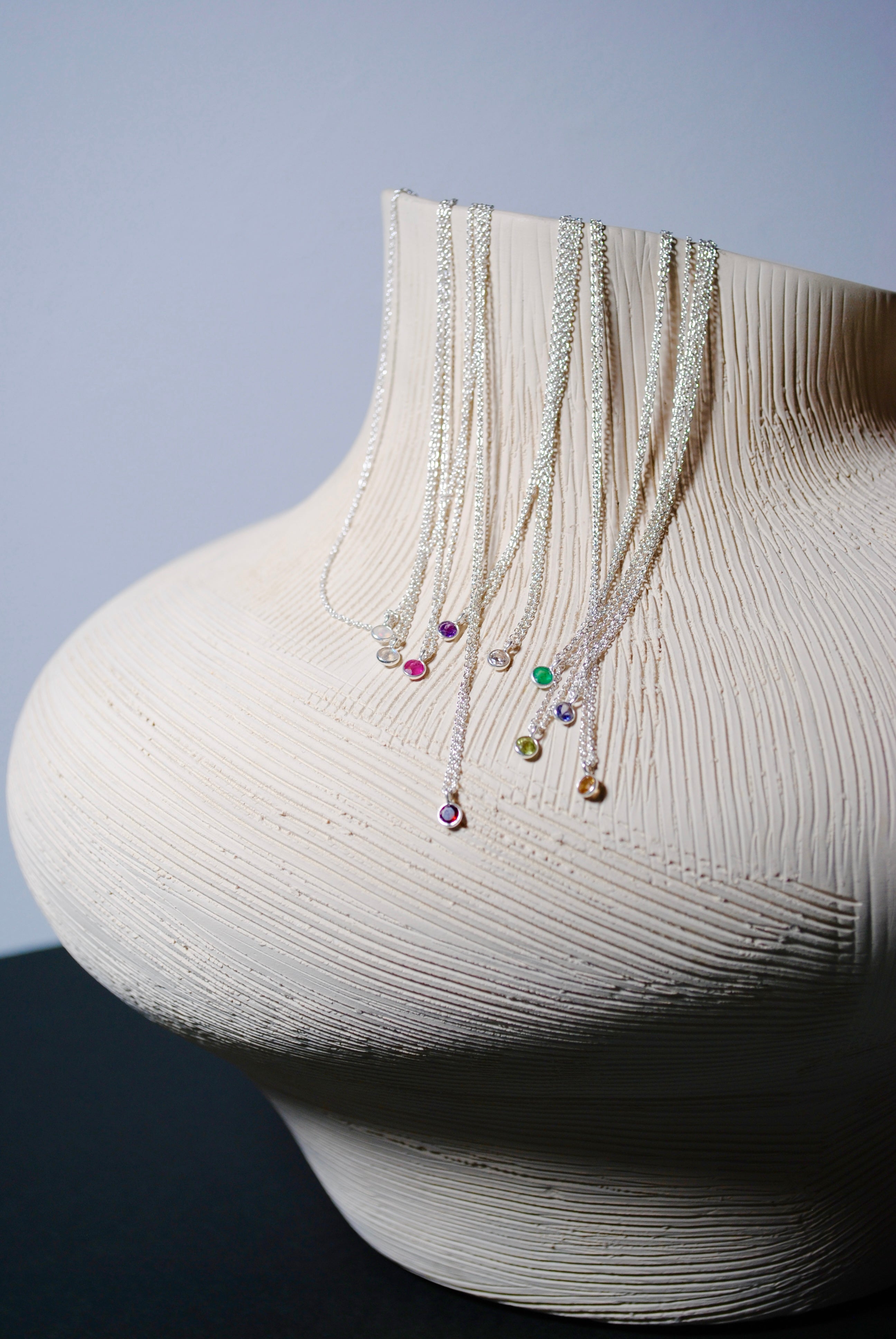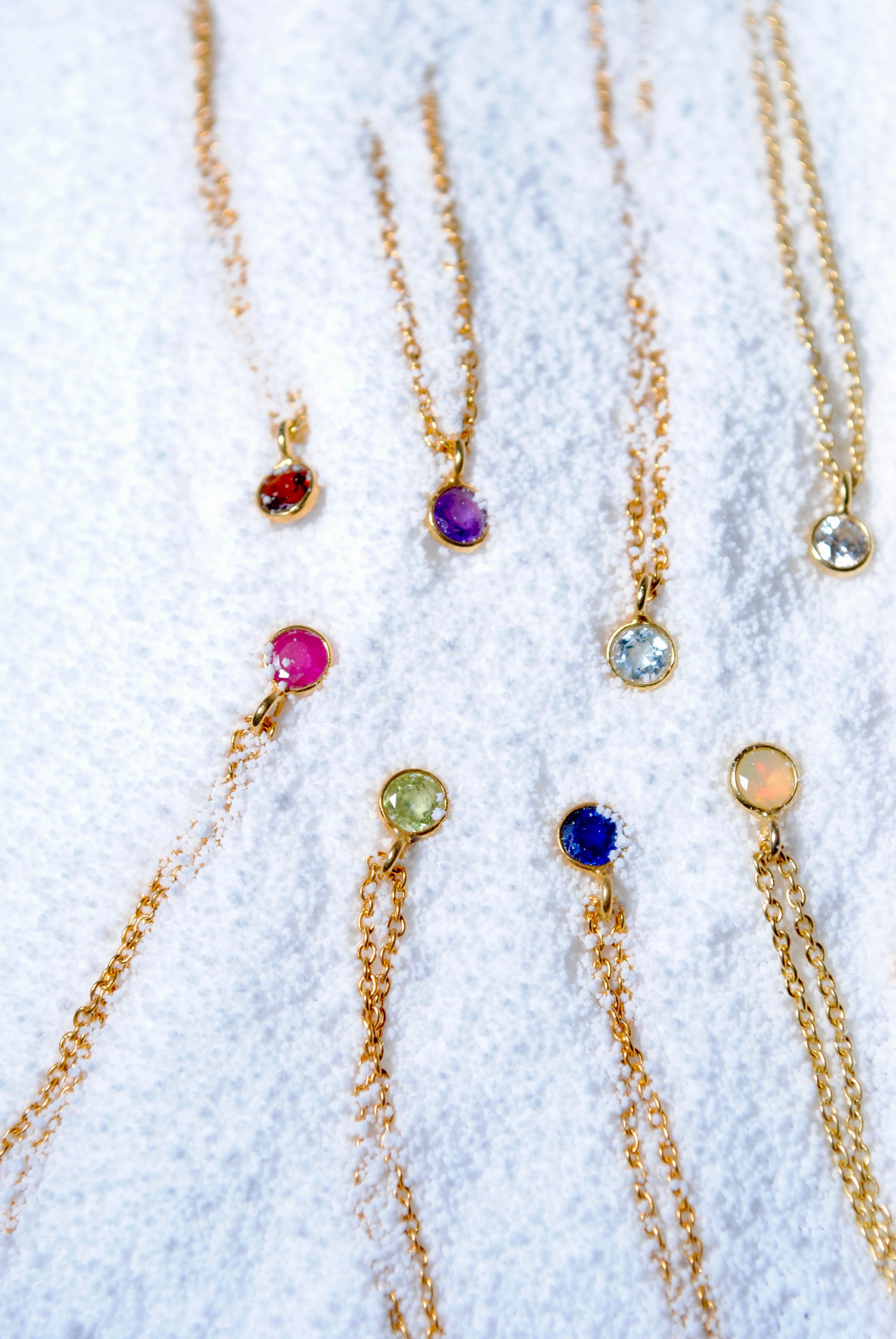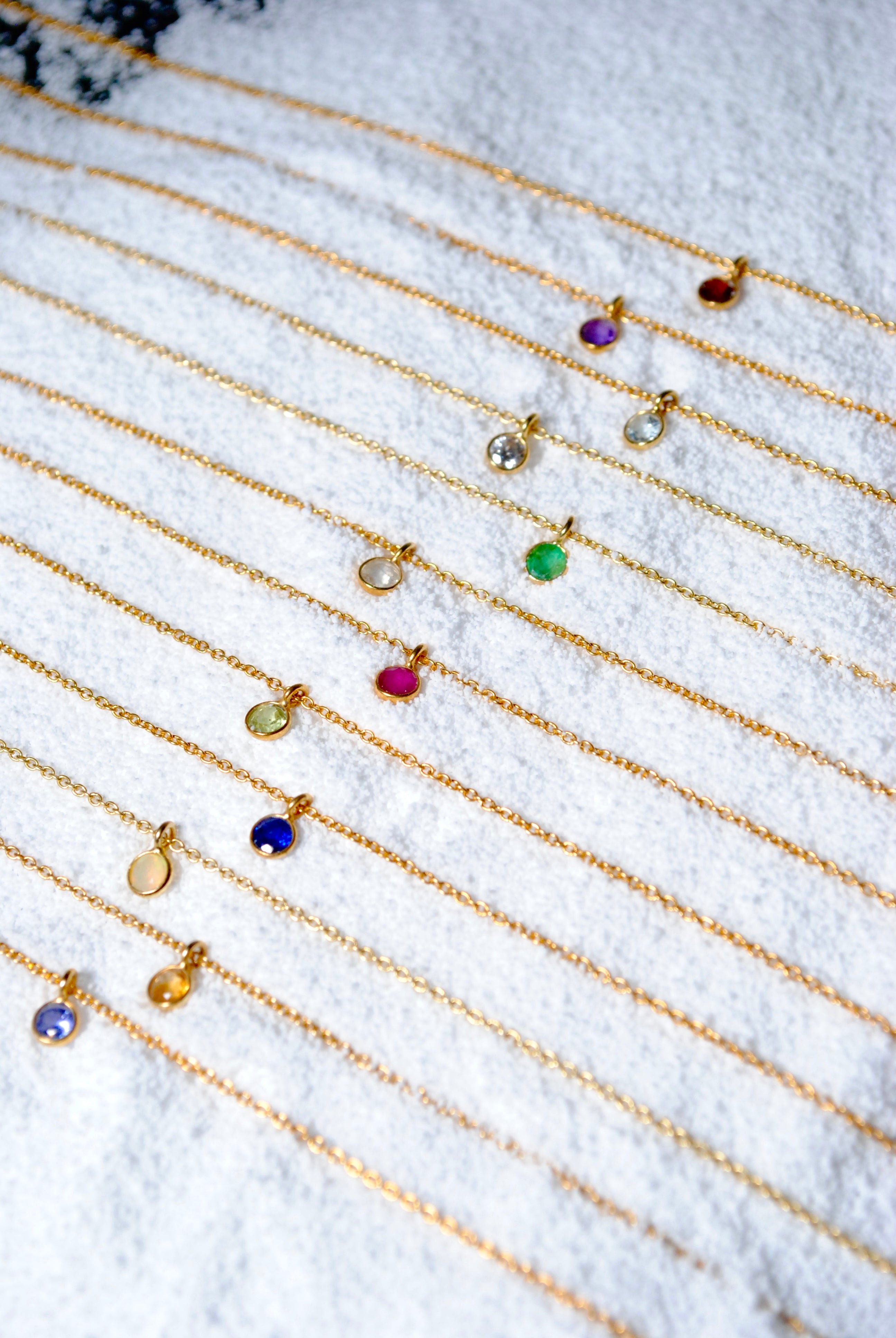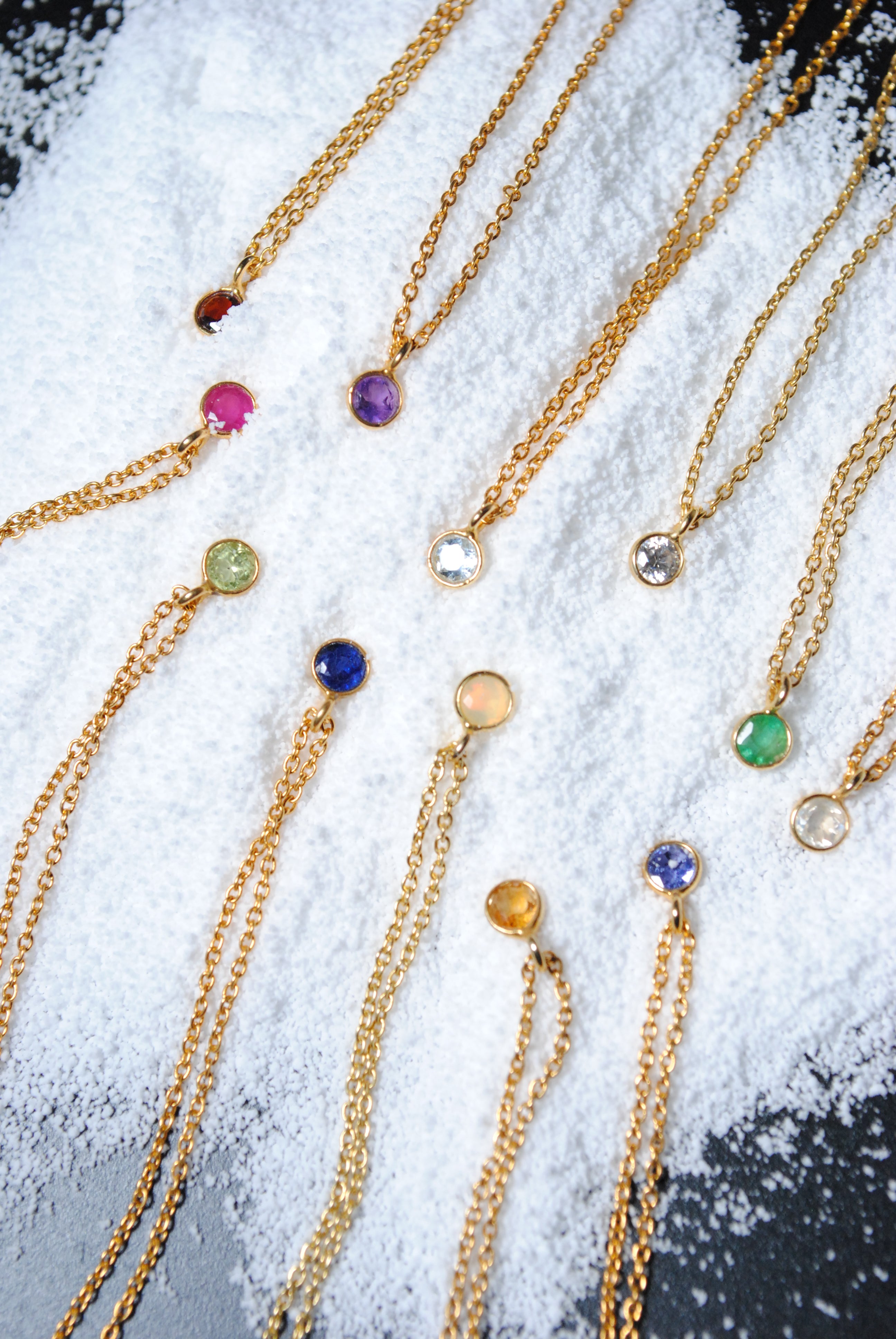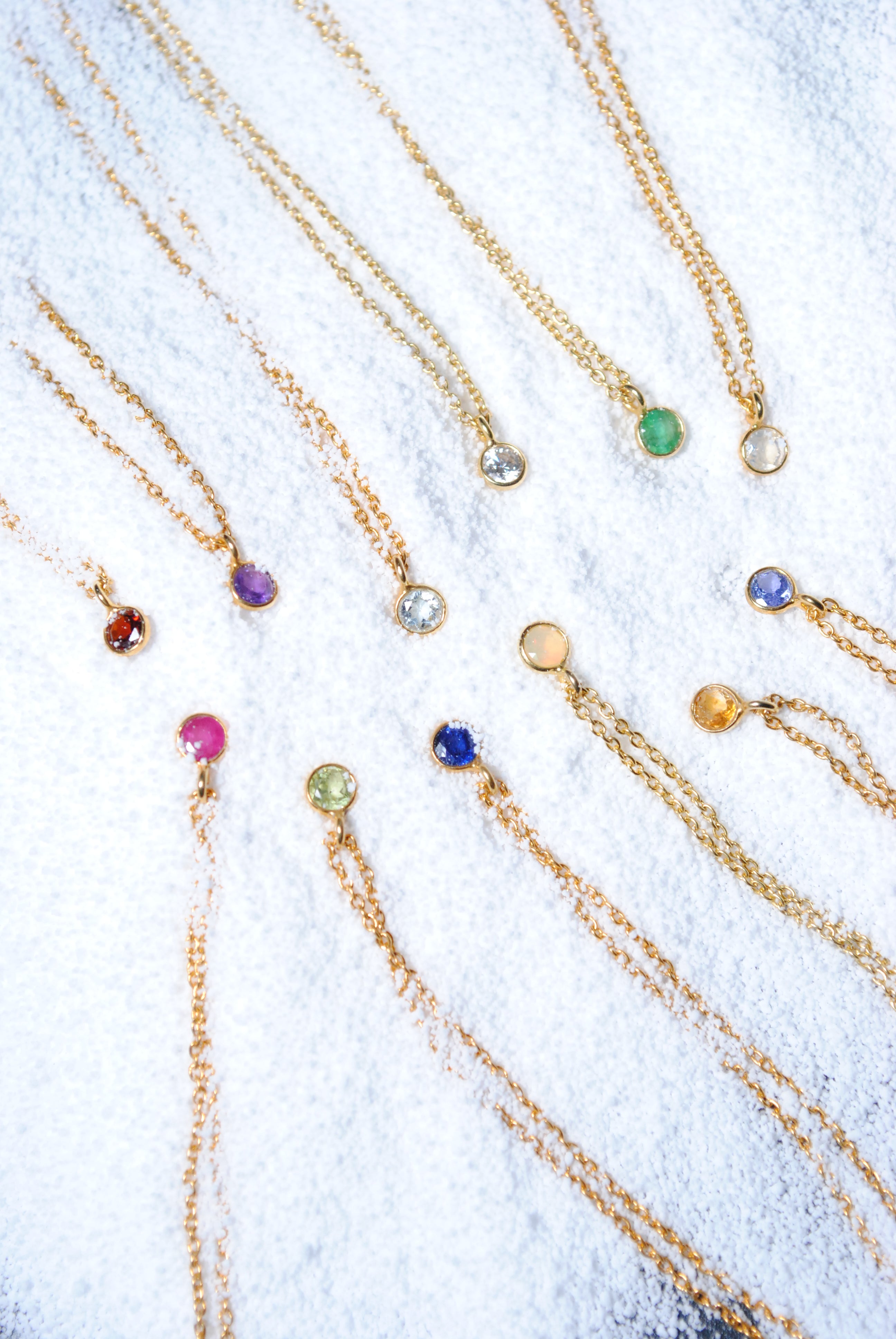 12誕生石を使用したお守りネックレス。重ね付けももおすすめのアイテム。