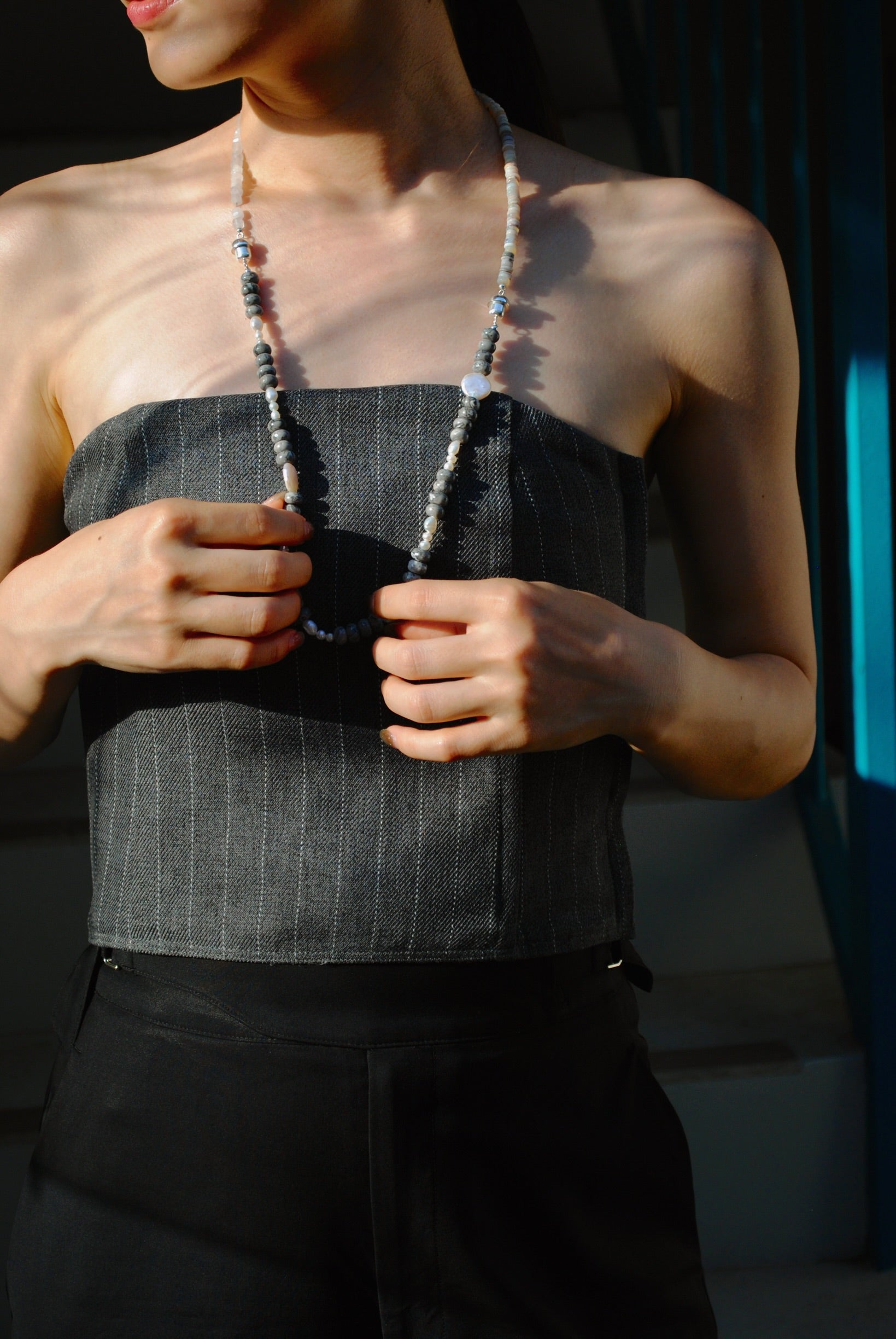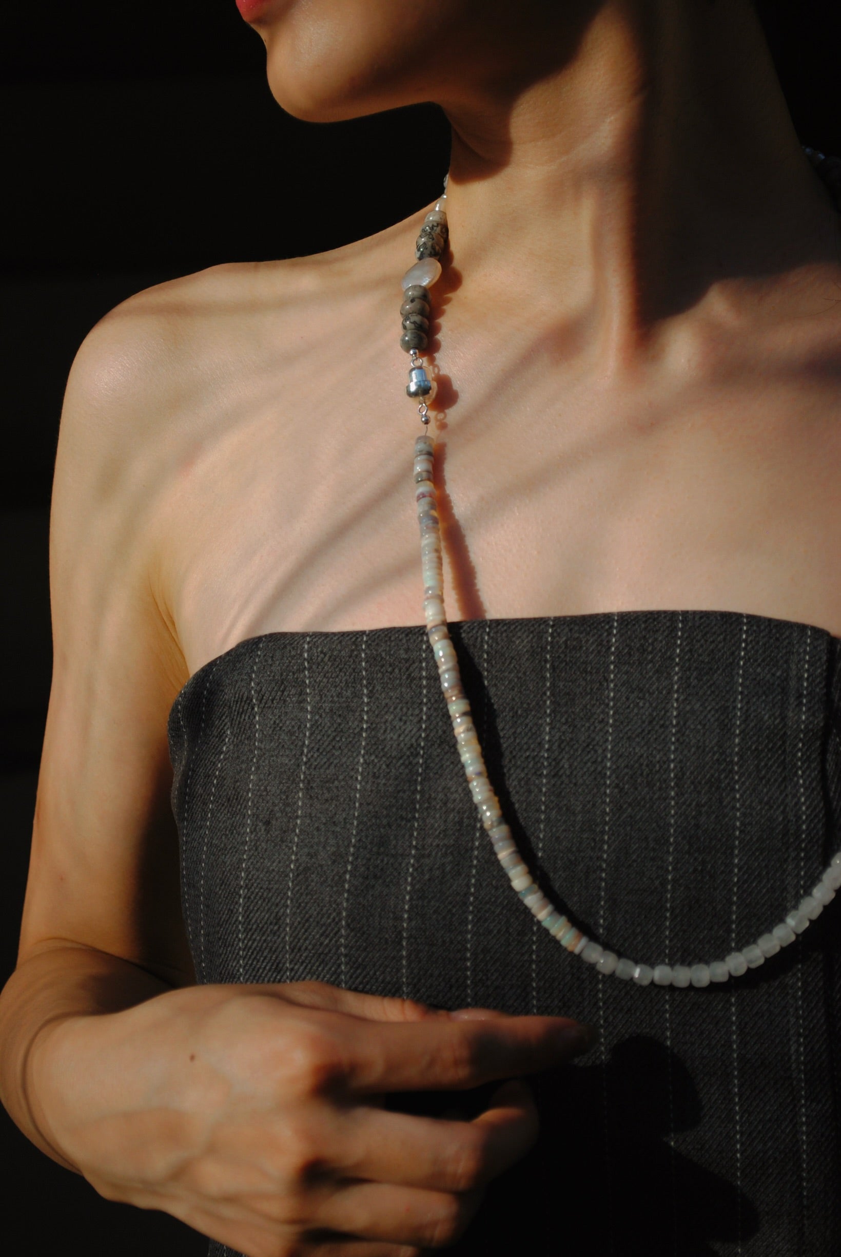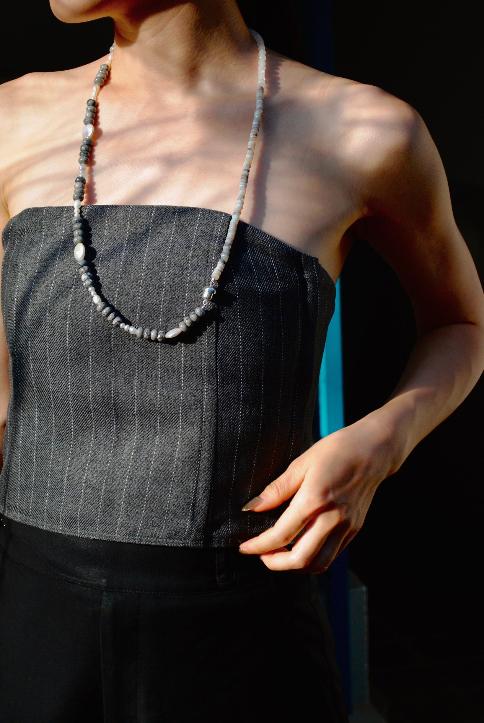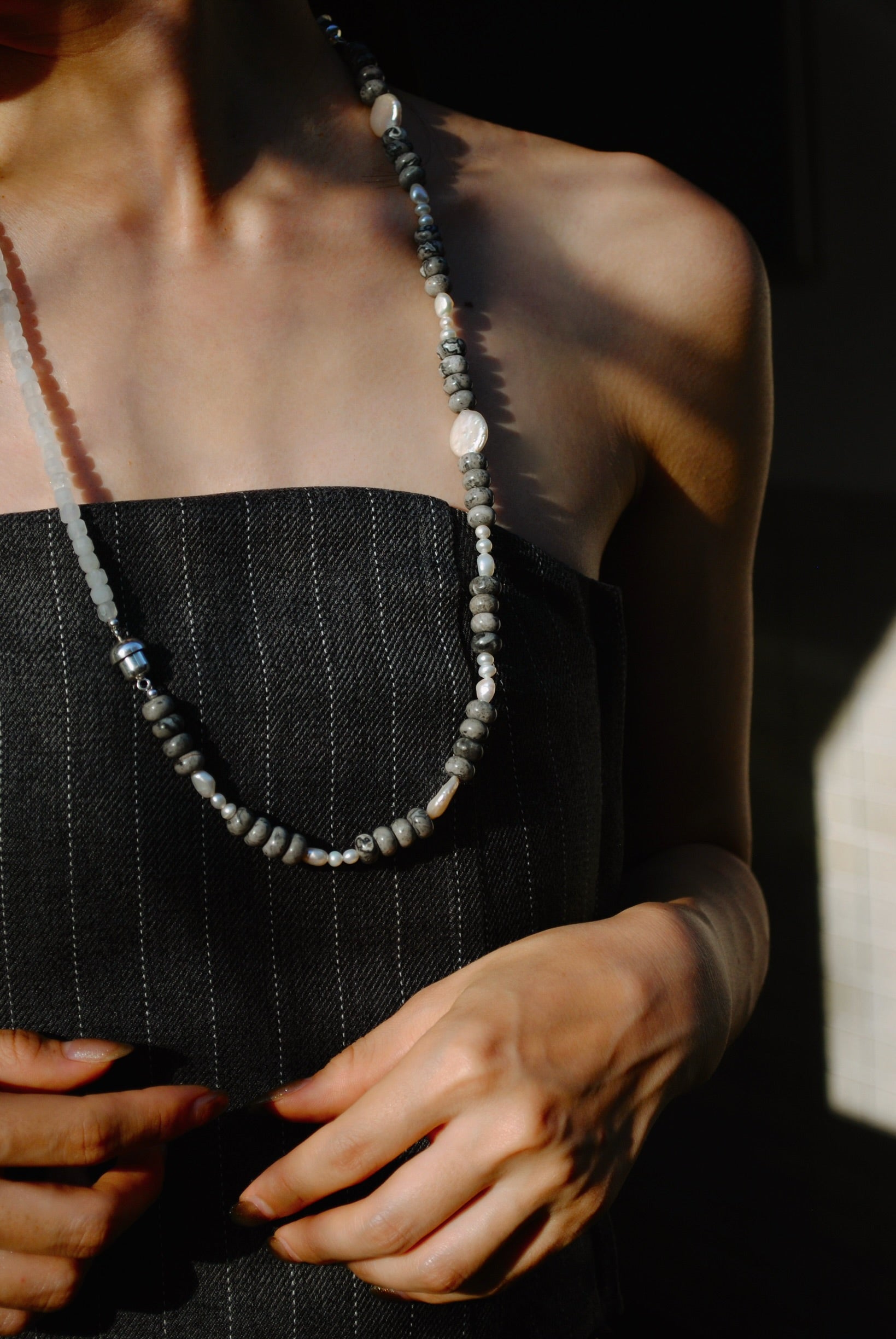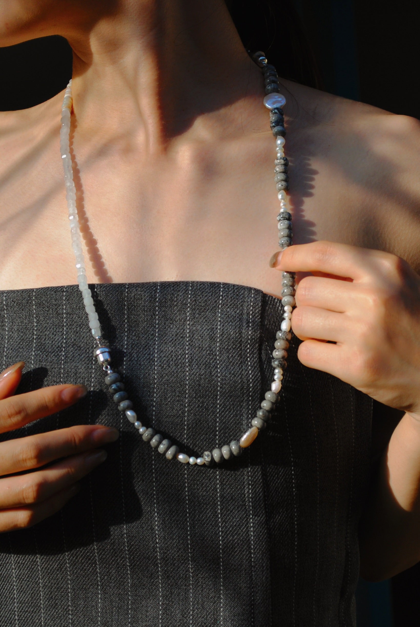 (ピカソジャスパー_パール) 2way playful rosary necklace