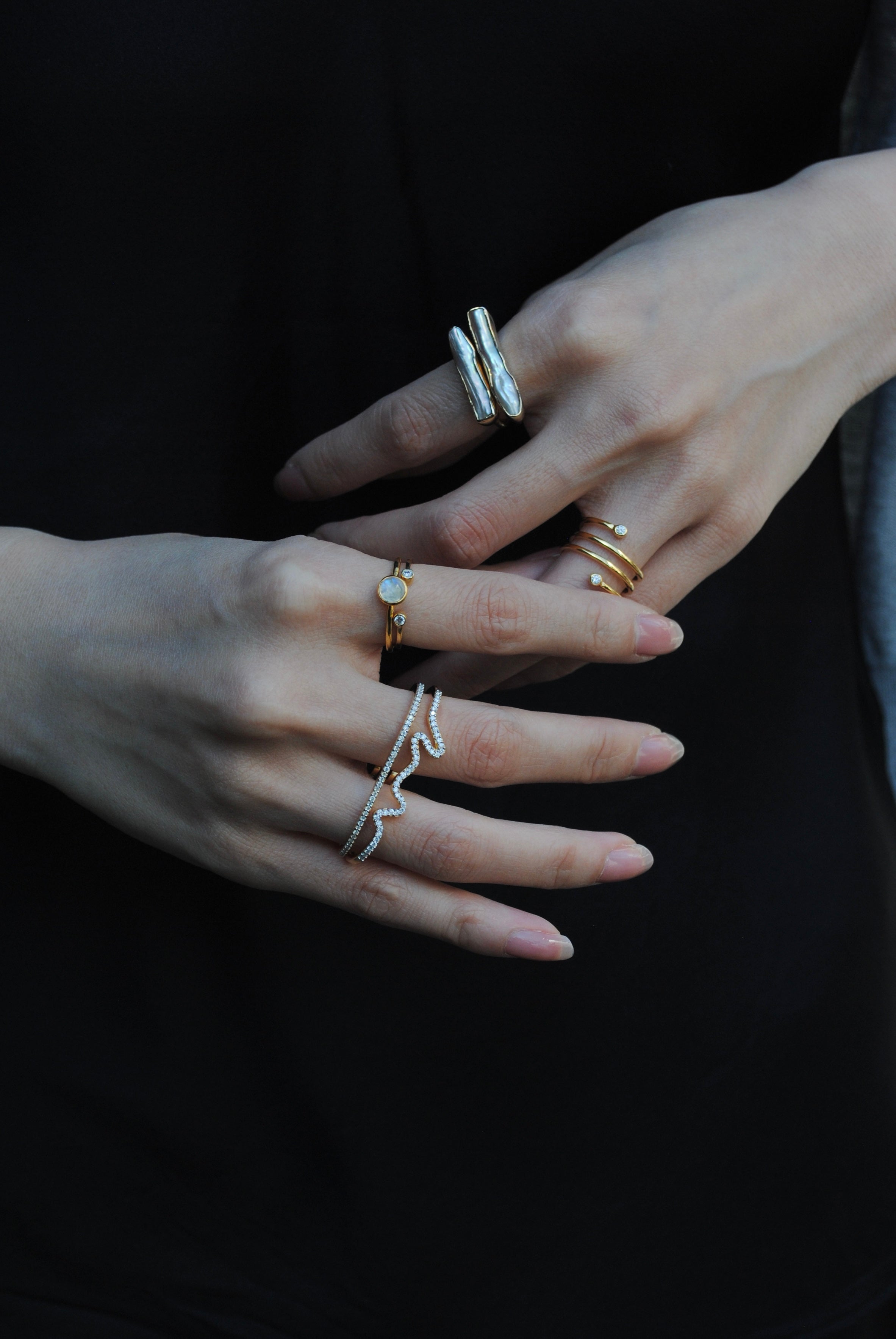 あえて綺麗に整えずありのままの美しさを表現したシリーズ。優美な横長のラインが手元を美しくみせてくれることでしょう。 エレガントなだけではない、生命力を感じさせるパールの新しい魅力を引き出しました。