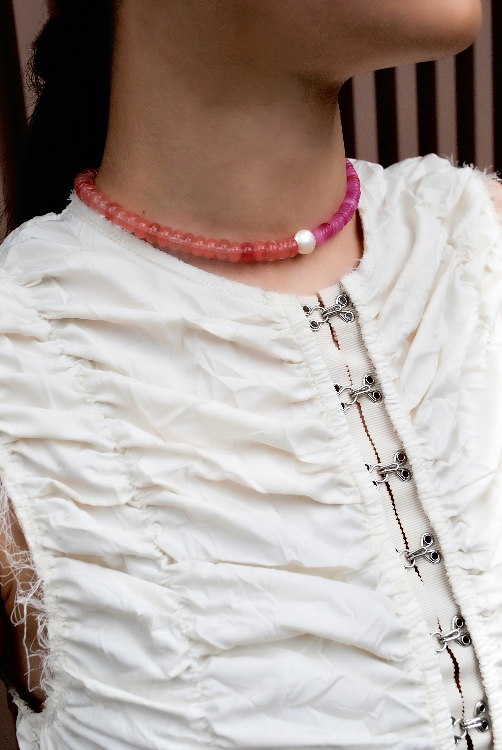 夏にぴったりなポップでワクワクするようなネックレス。リゾートスタイルにはもちろん、シティスタイルでも大人の差し色として、白シャツやTシャツに合わせてみて。