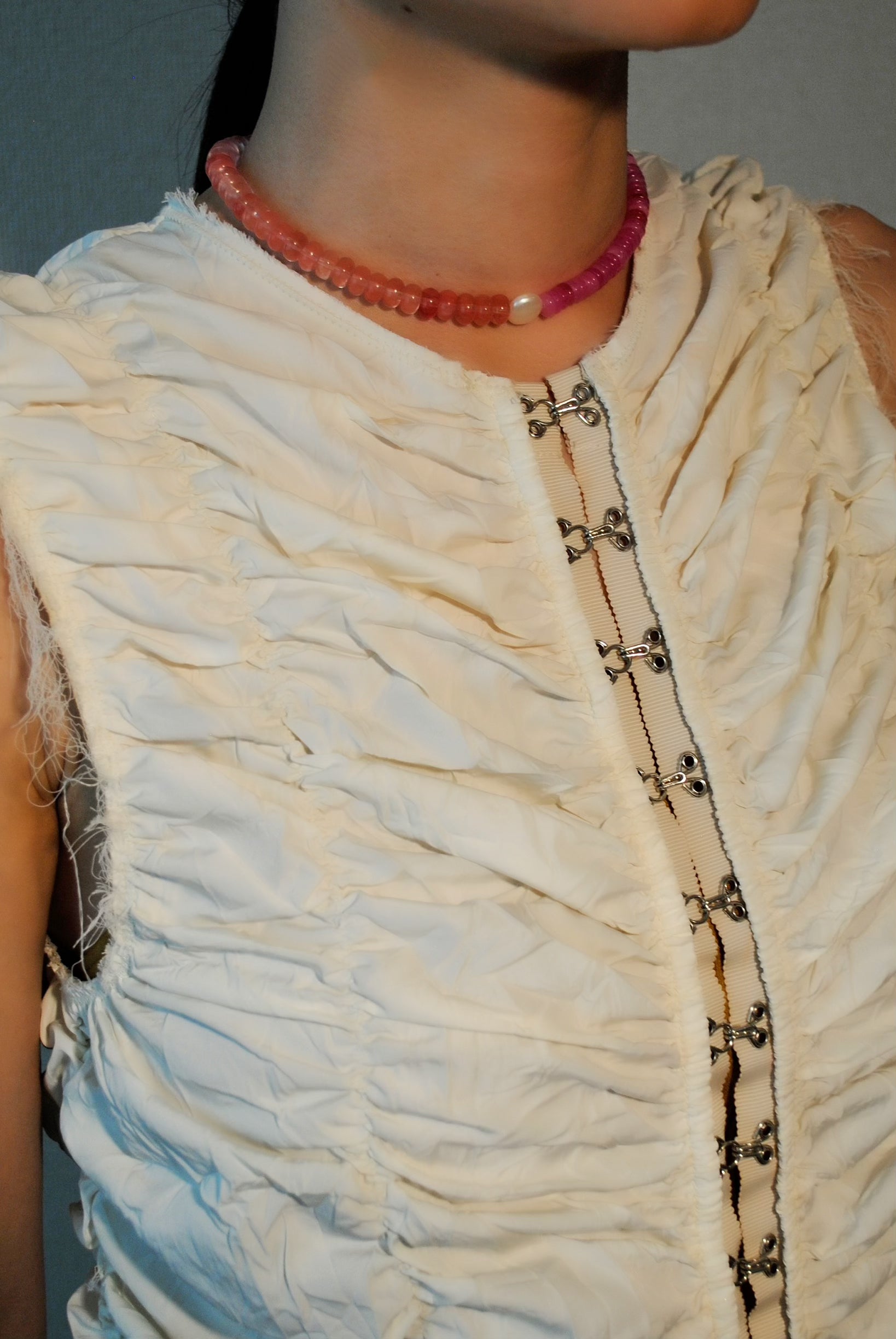 (ピンククオーツ/ストロベリークオーツ) 2way playful rosary necklace #001