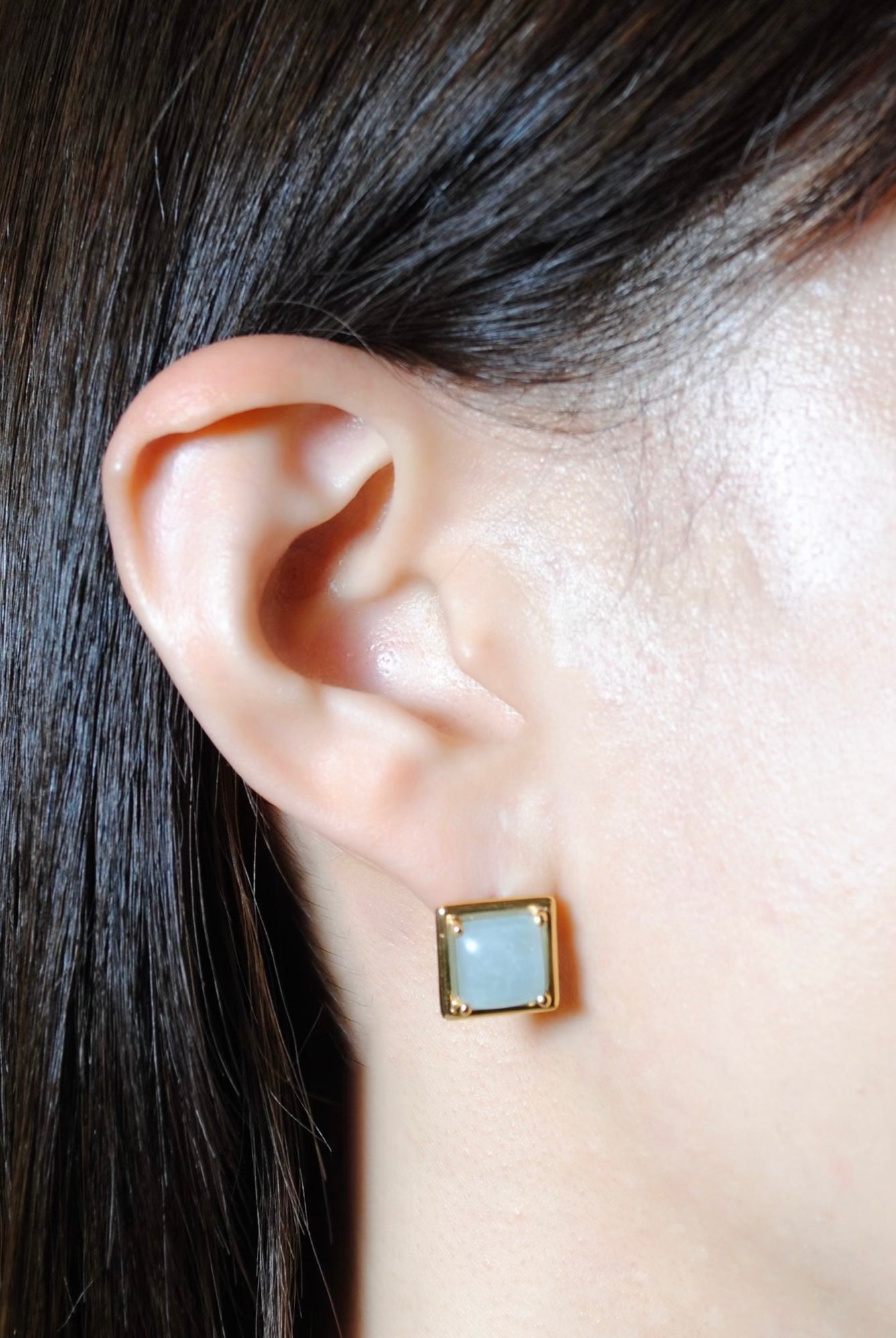 (ミルキーアクアマリン/gold) rope around square pierce