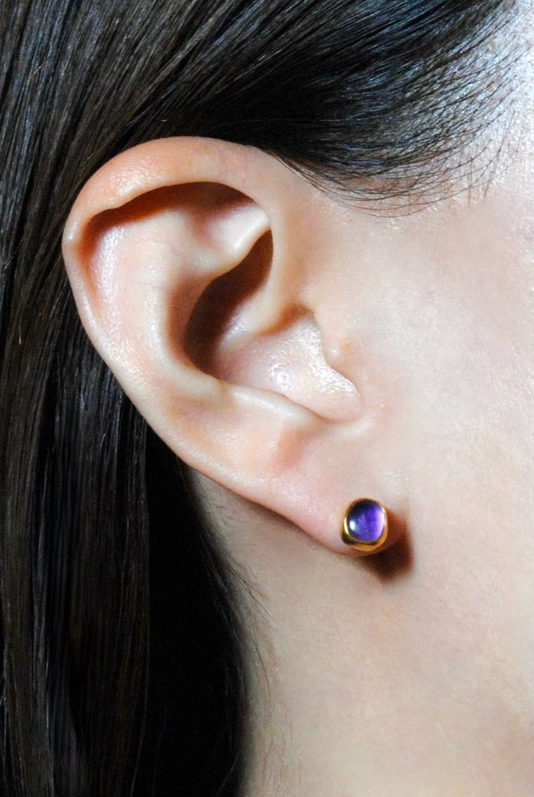 敢えて歪なシェイプに形をデザインした両耳セットの一粒ピアス。丸でもなく四角でもない形は、程よい抜け感があり、他とは違うおしゃれな雰囲気を纏わせてくれます。