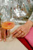 This heart-shaped full eternity ring is luxuriously crafted with transparent rubies. The hearts face each other, or back to back, creating a fun, random rhythm.