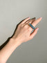 The stone has a volume resembling a loaf of French bread, and is set in a striking base, making it a statement ring. Its weight is also felt, giving it a luxurious feel even when worn.
