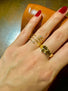 The trio phool collection features a design with three stones set like a bouquet. The vintage-like band texture is also a highlight, as if it were found at a European flea market. This gorgeous piece will add a touch of glamour to your fingers, making it perfect for any occasion.