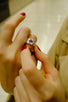 The pond ring features a circular stone design resembling a pond in the center of the ring. The cut stones allow you to feel the brilliance of the stones. This ring is perfect for everyday wear as well as special occasions.