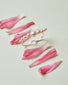 Five different sized pearls are arranged in a wave pattern. The gentle curves accentuate femininity. Each piece of jewelry has a fun rhythm to it.