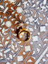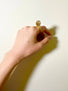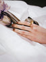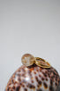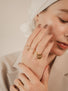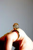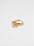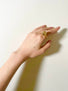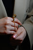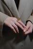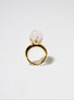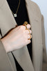 This ring, resembling an upside-down acorn, looks like a lollipop. The contrasting thickness of the arms gives it a voluminous feel.