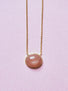 The simple design highlights the stone. The delicate chain makes it look elegant even when layered. The smooth cabochon cut brings a freshness to your chest like that of juicy fruit.
