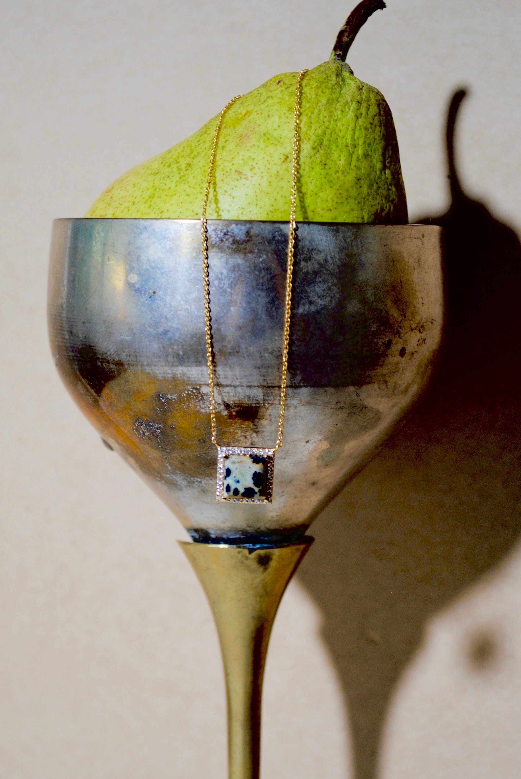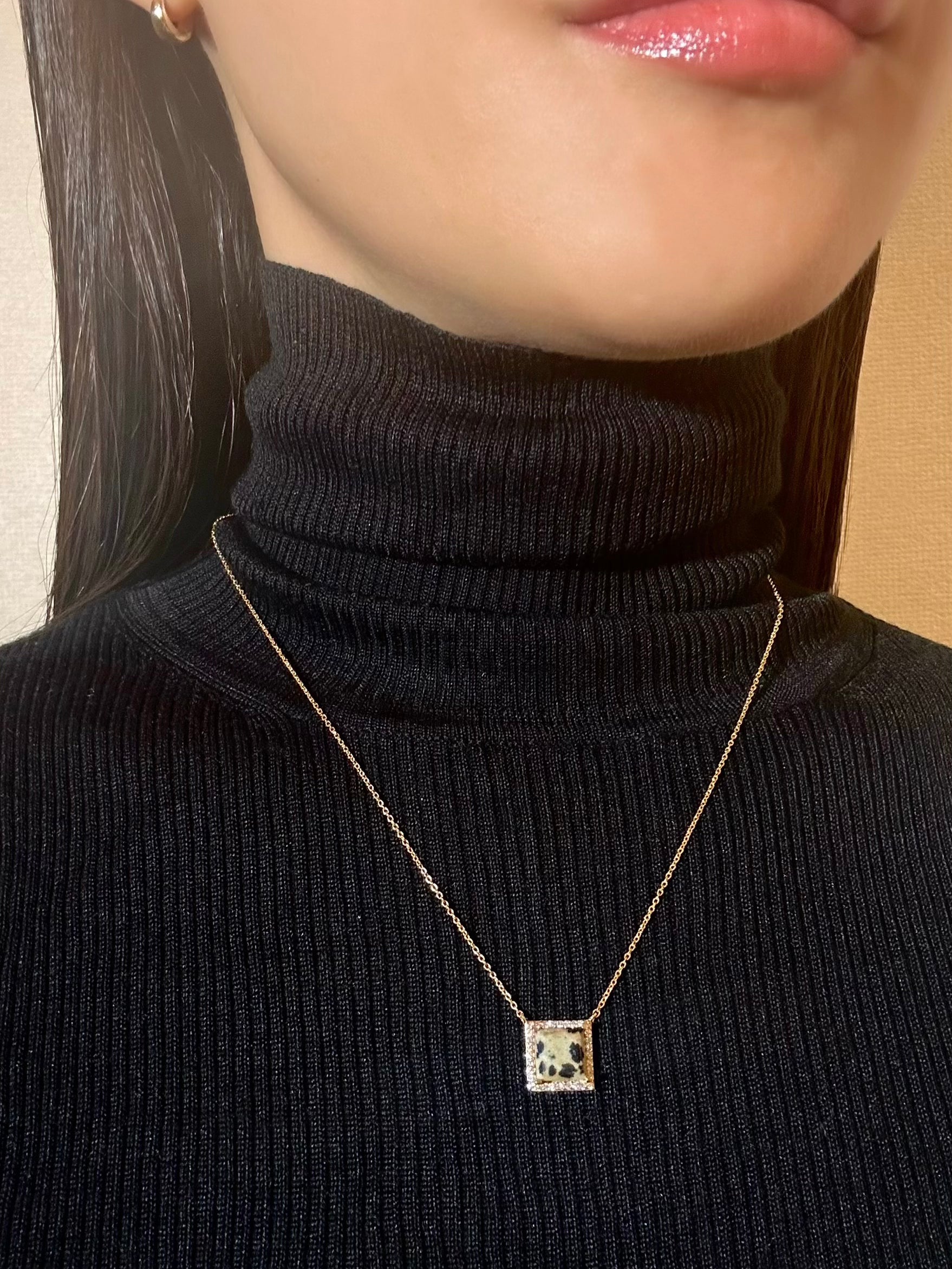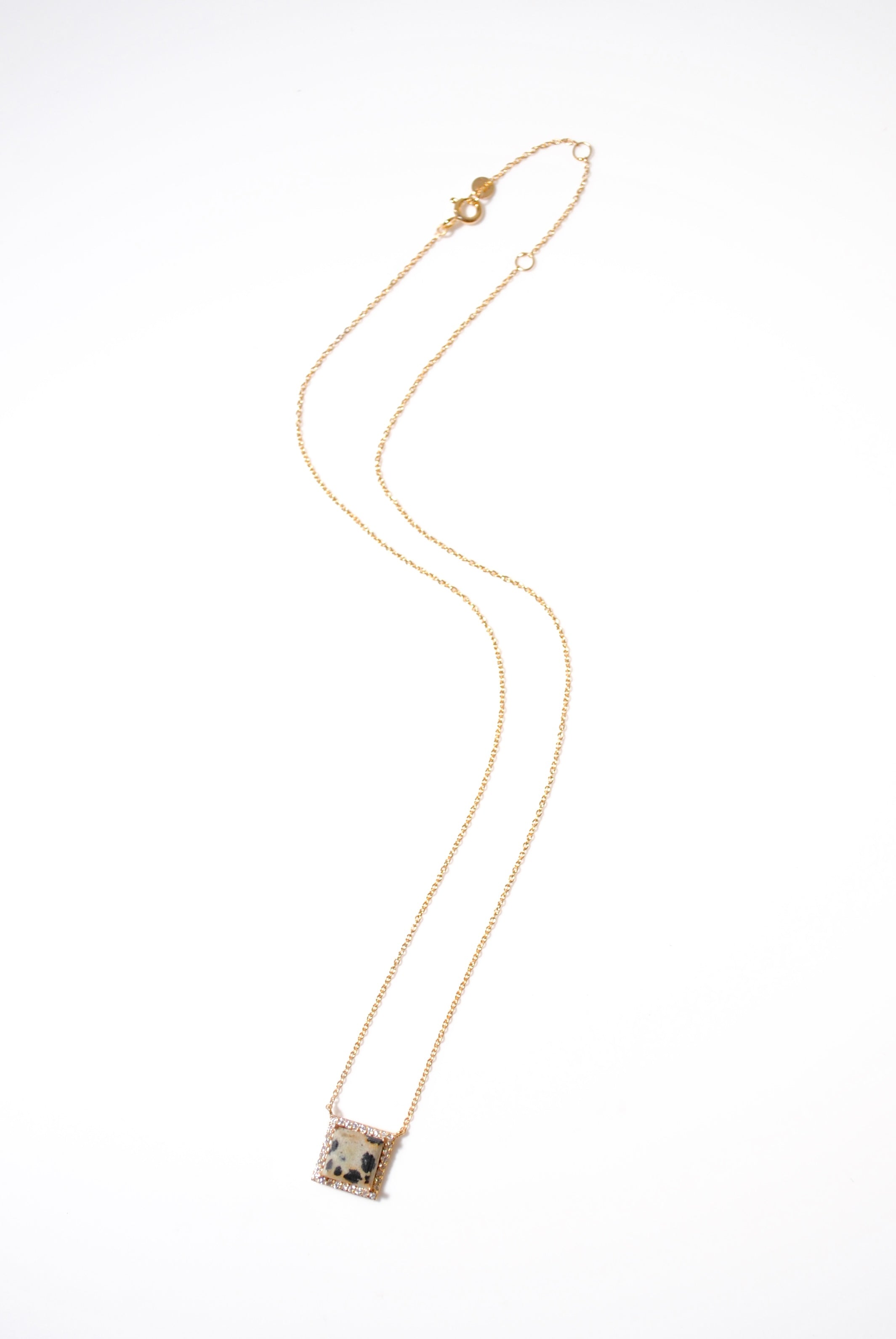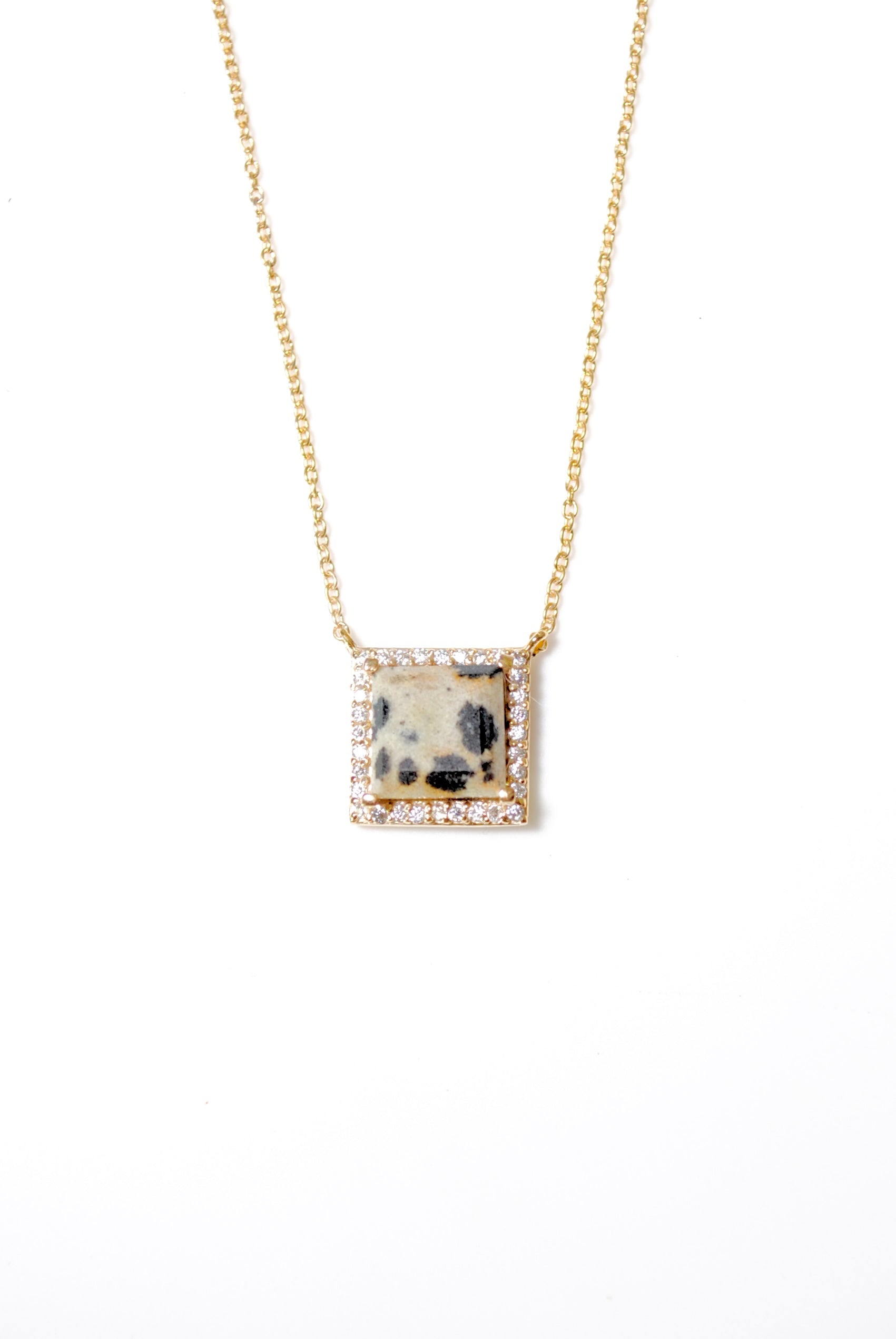 (Dalmatian Jasper/Gold) Frame Pave Necklace