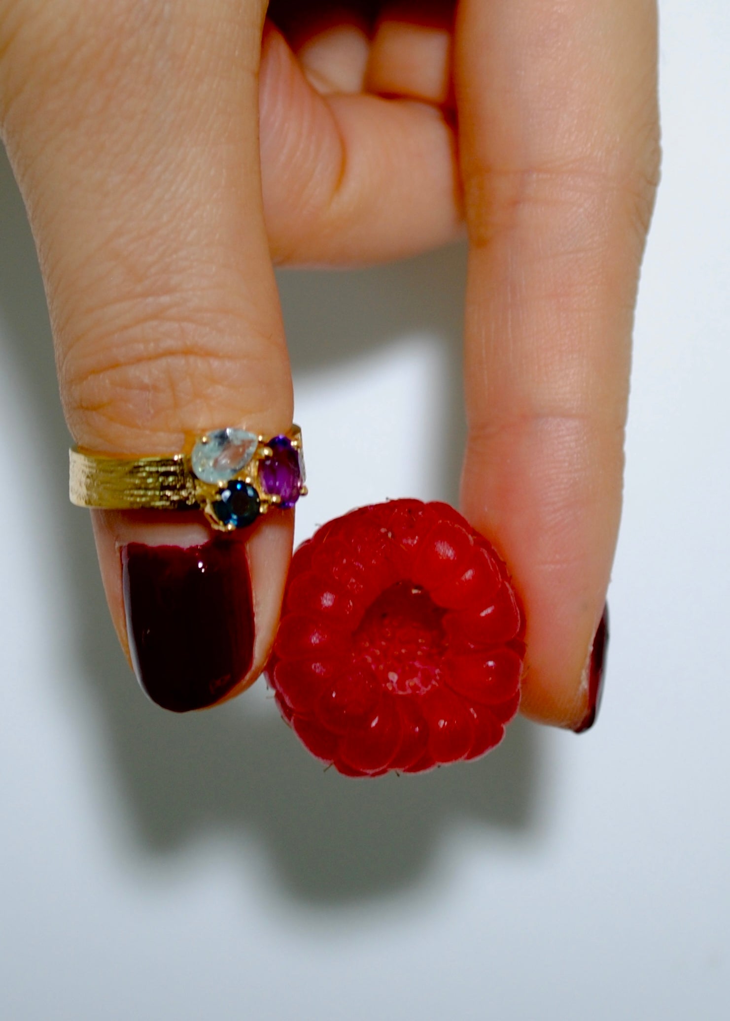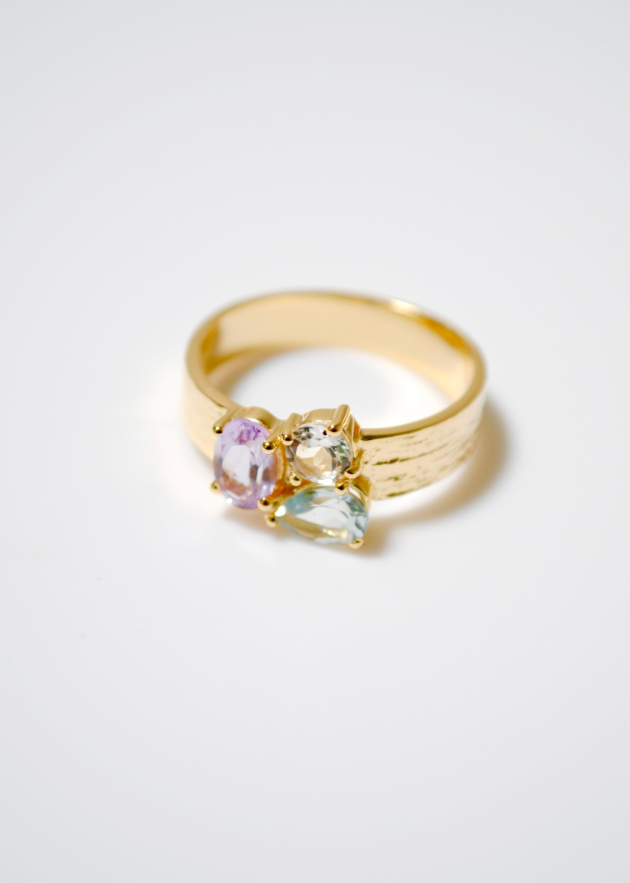 (ブルートパーズ_ピンクアメジスト_ホワイトトパーズ/gold) trio phool ring