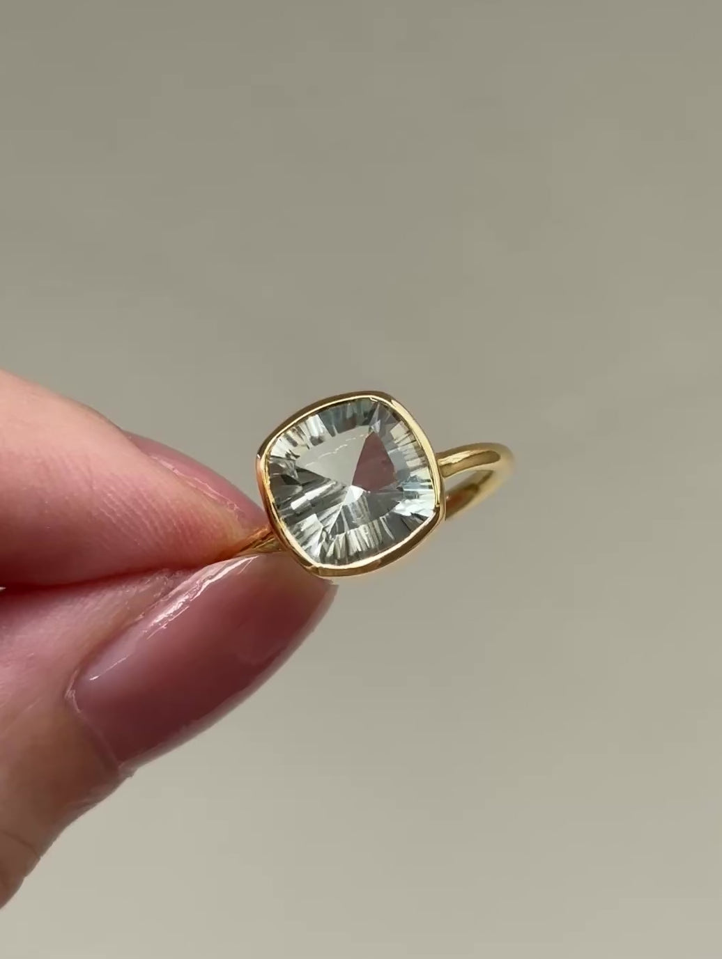 (グリーンアメジスト/gold) concave cushion ring