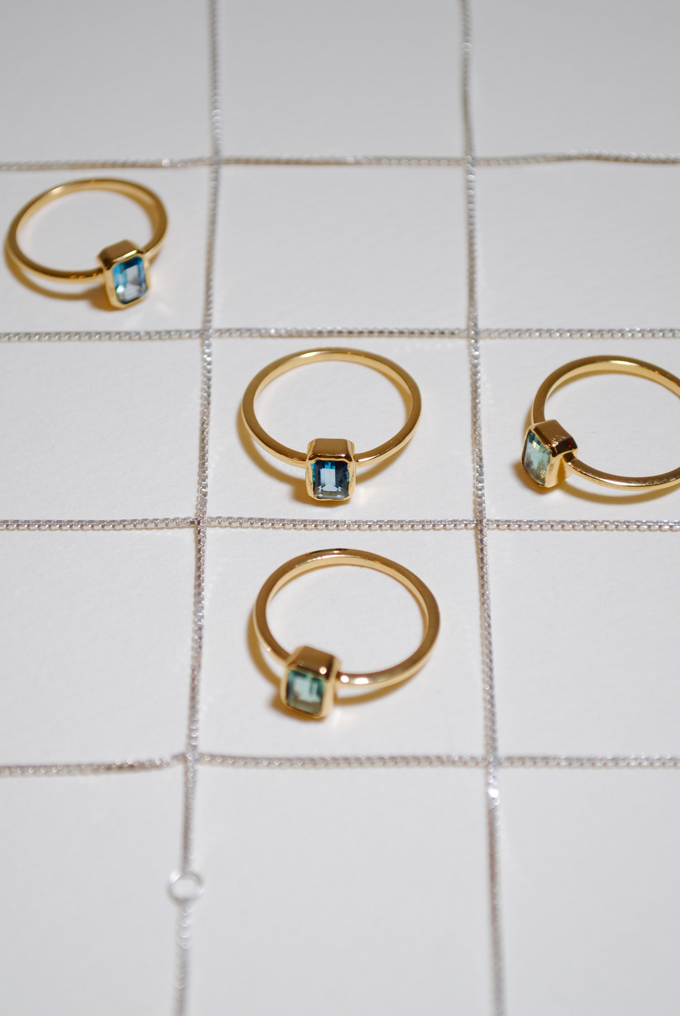 さりげない石のサイズ感は単品でつけても、重ね着けしても品のある手元に仕上がります。美しいレクタングルカットも知的で上品な印象です。