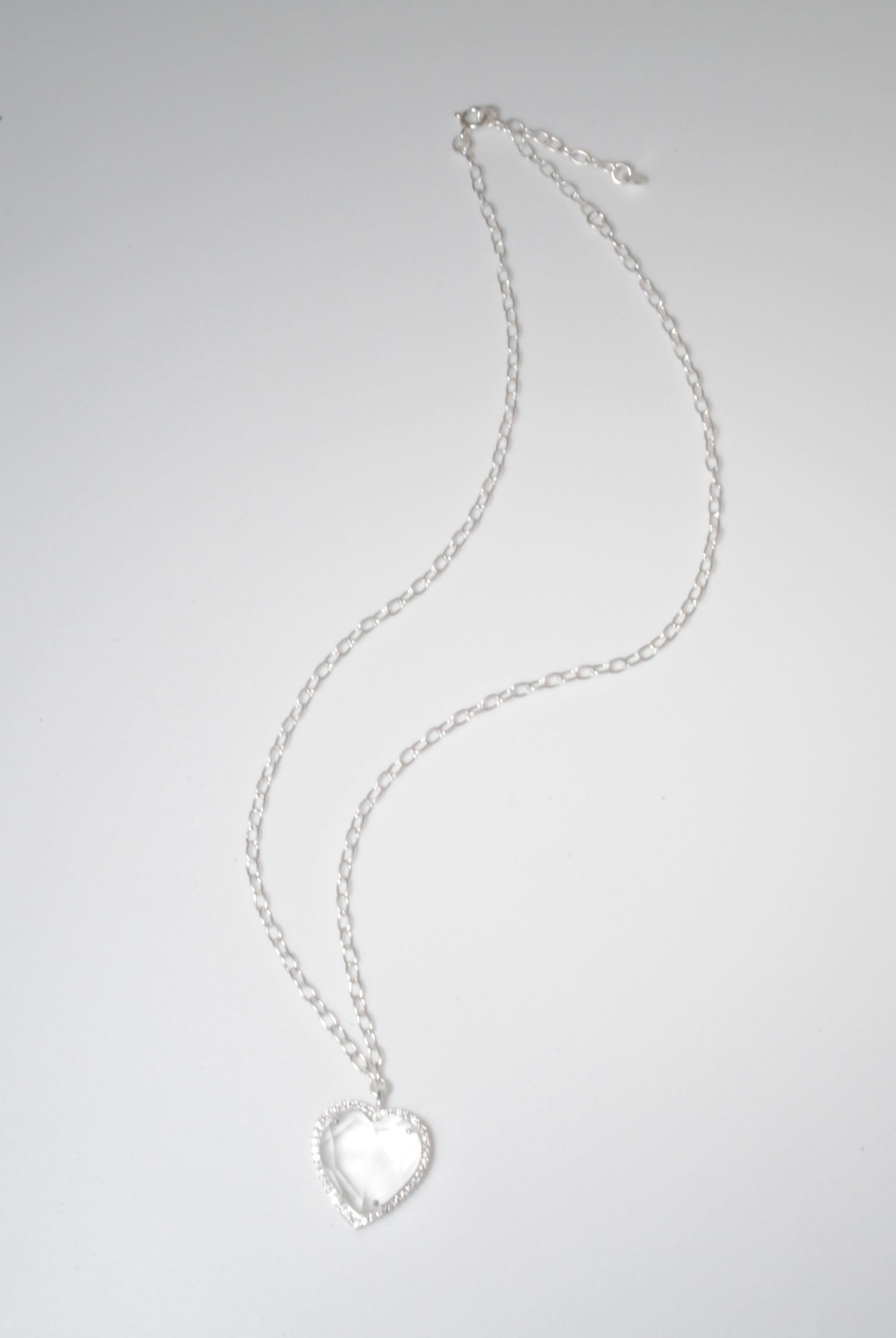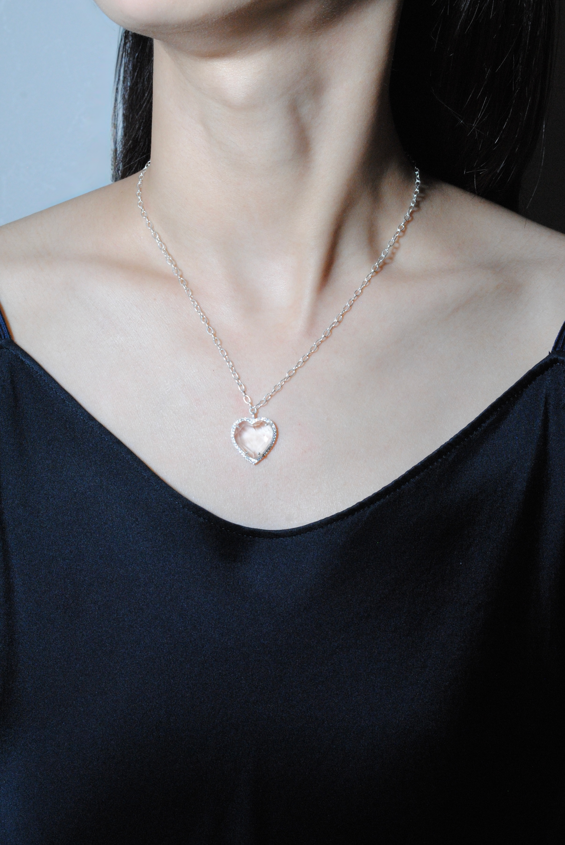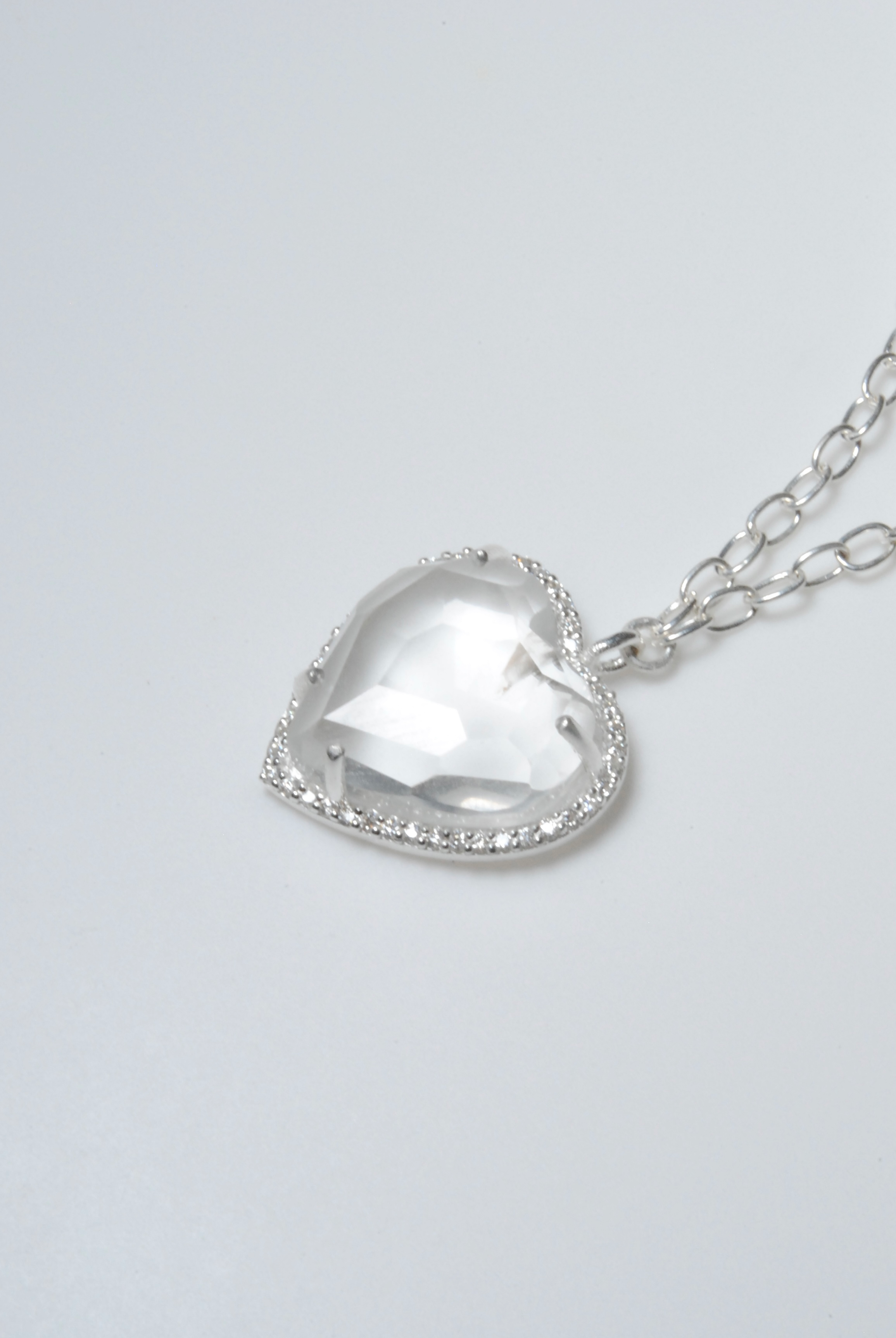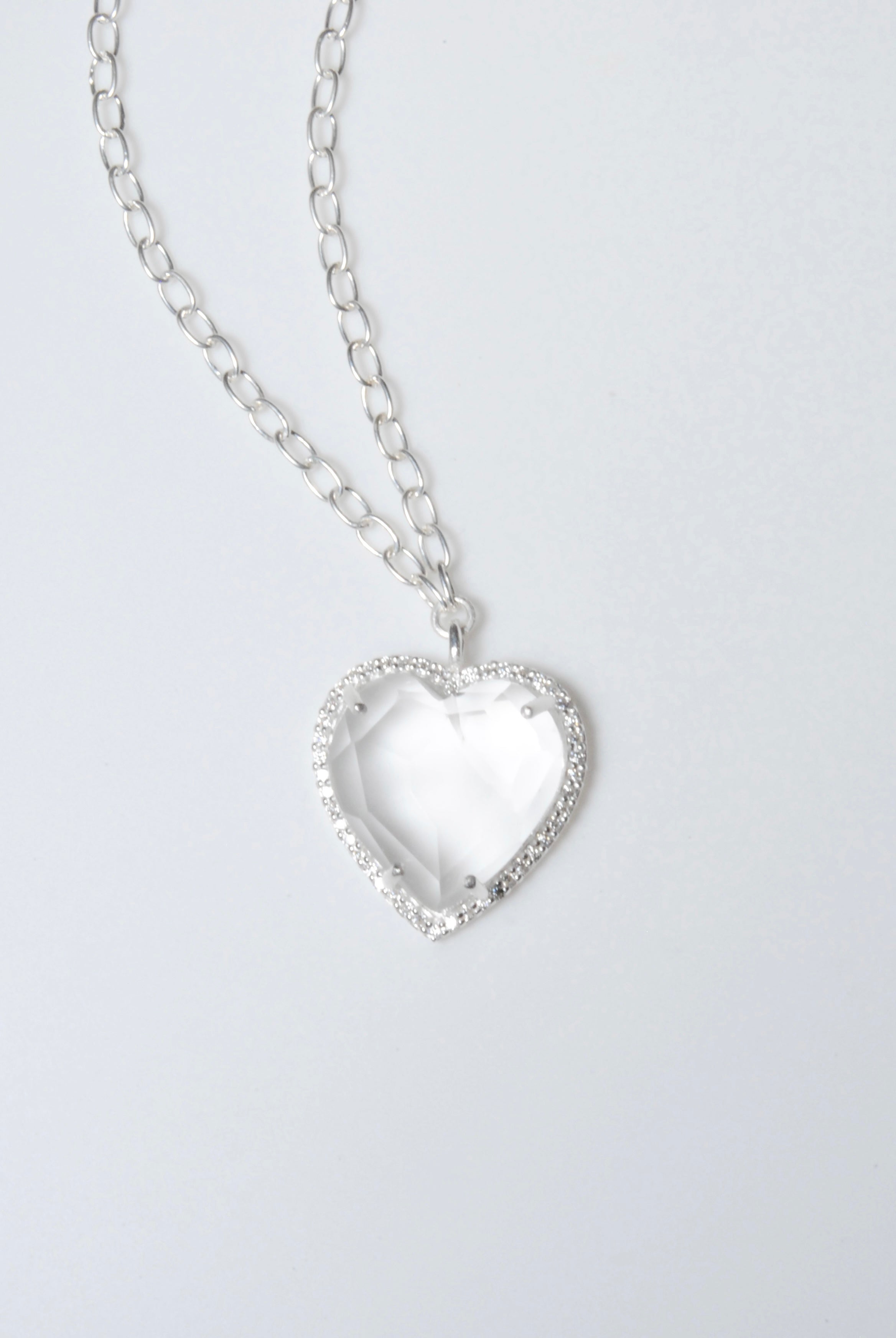 胸元で光を抱くようにきらめく、存在感のあるハートネックレス。