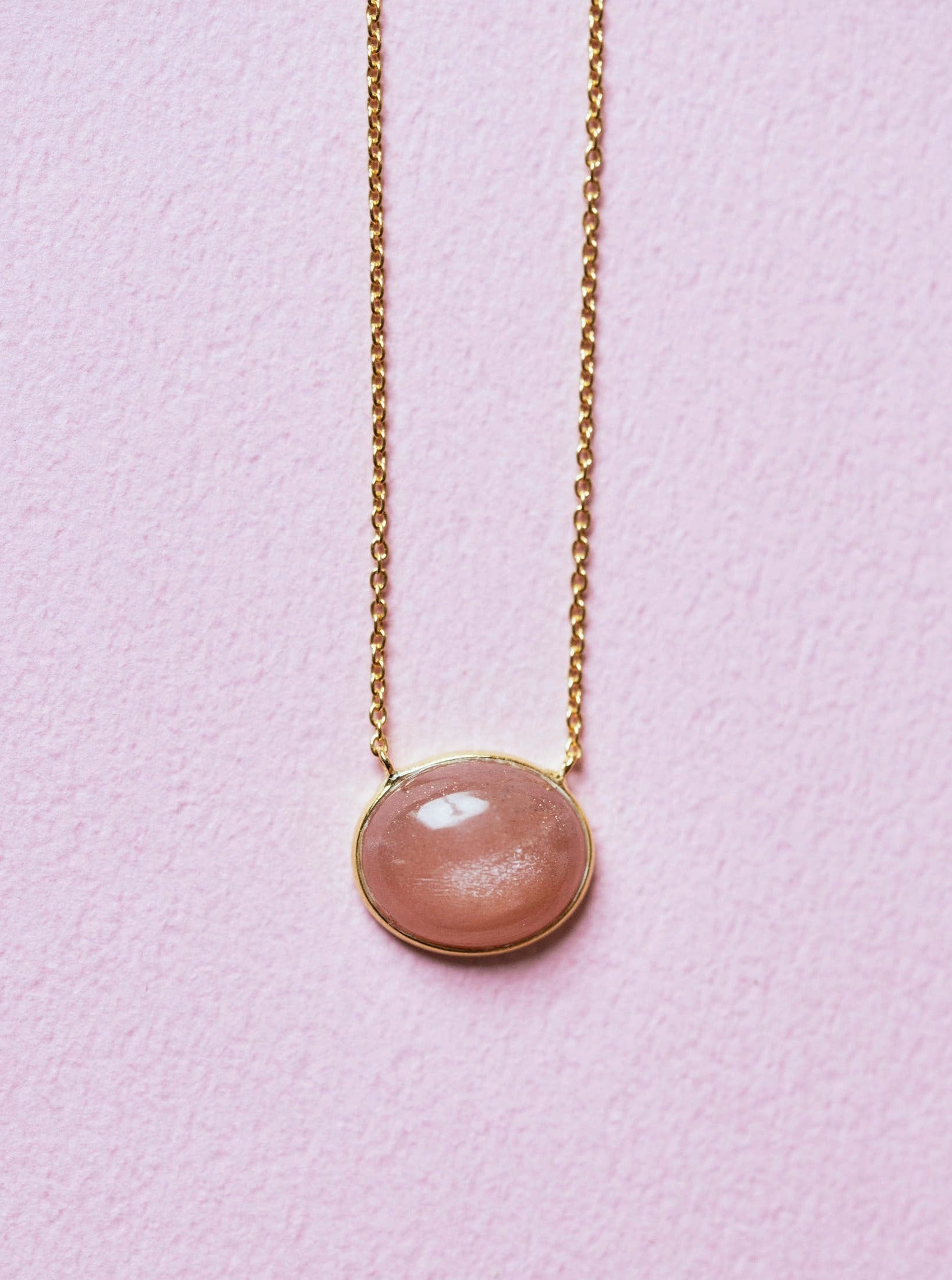 (ピーチムーンストーン/gold) oval flower CAB necklace