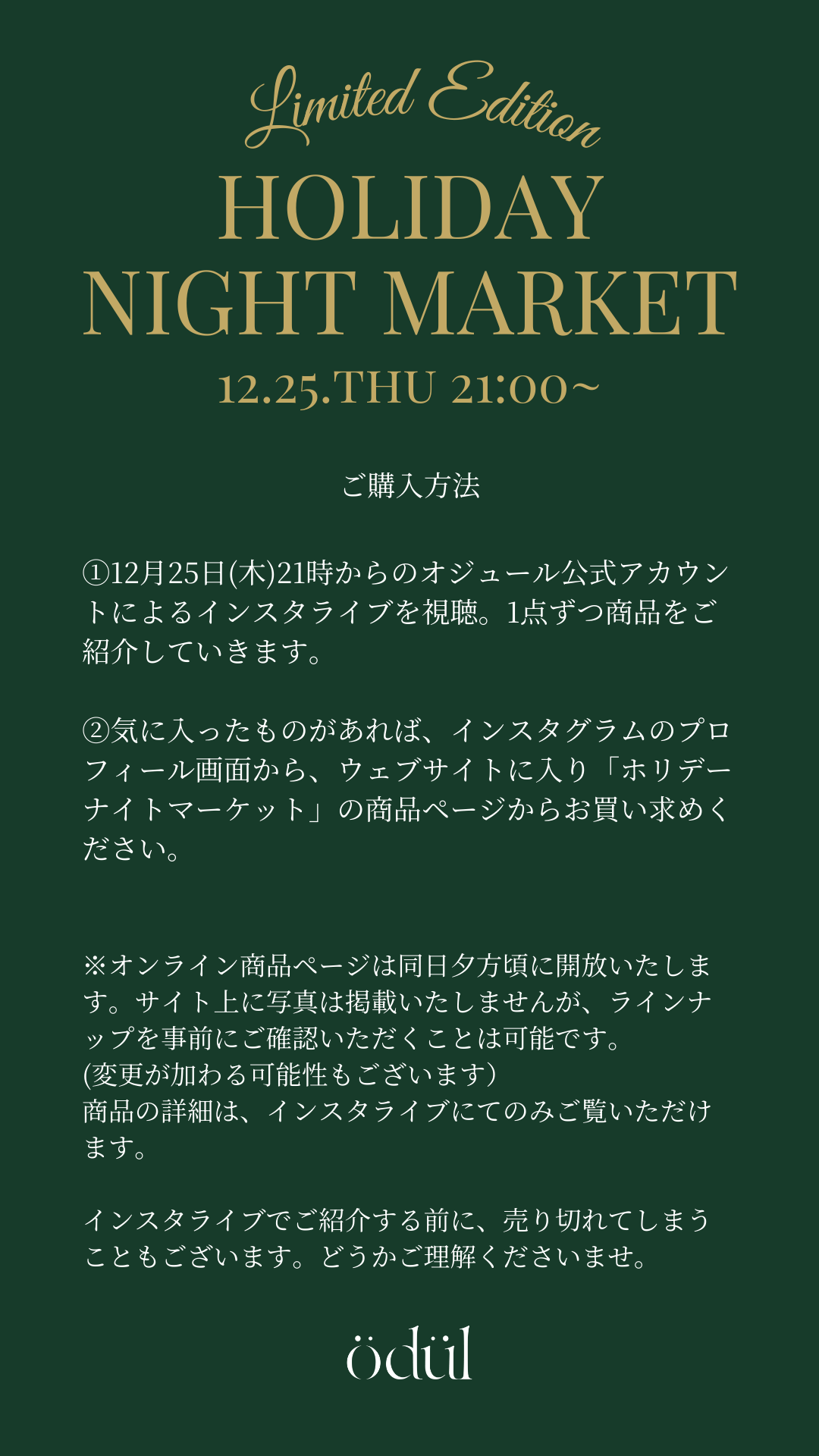 12/25(木)21:00 から開催するインスタライブにて、商品をご紹介いたします。そちらをご覧いただき、番号をご確認の上ご購入ください。