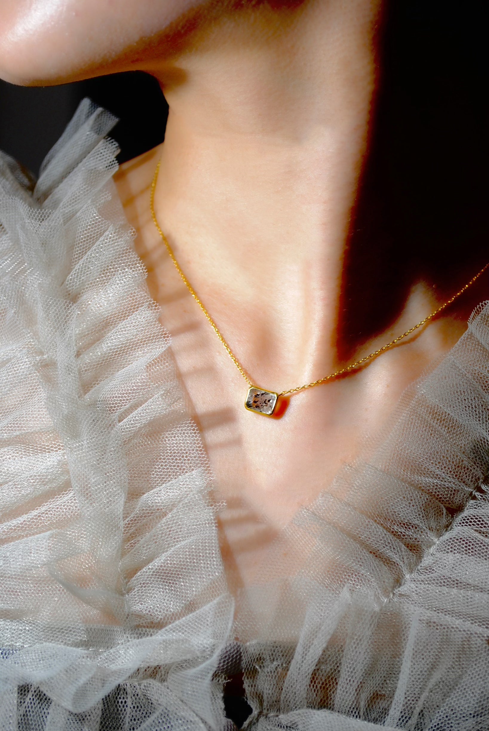 (ドットクオーツ/gold | silver) octagon tile necklace