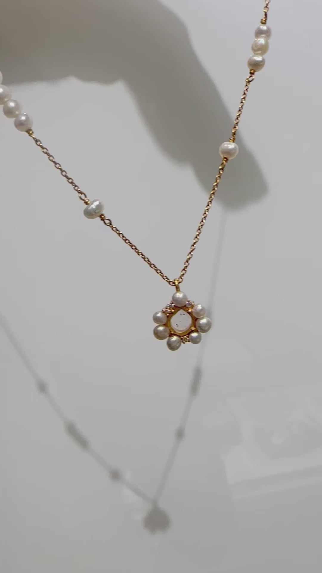 レインボームーンストーン(gold):oval flower necklace Story View