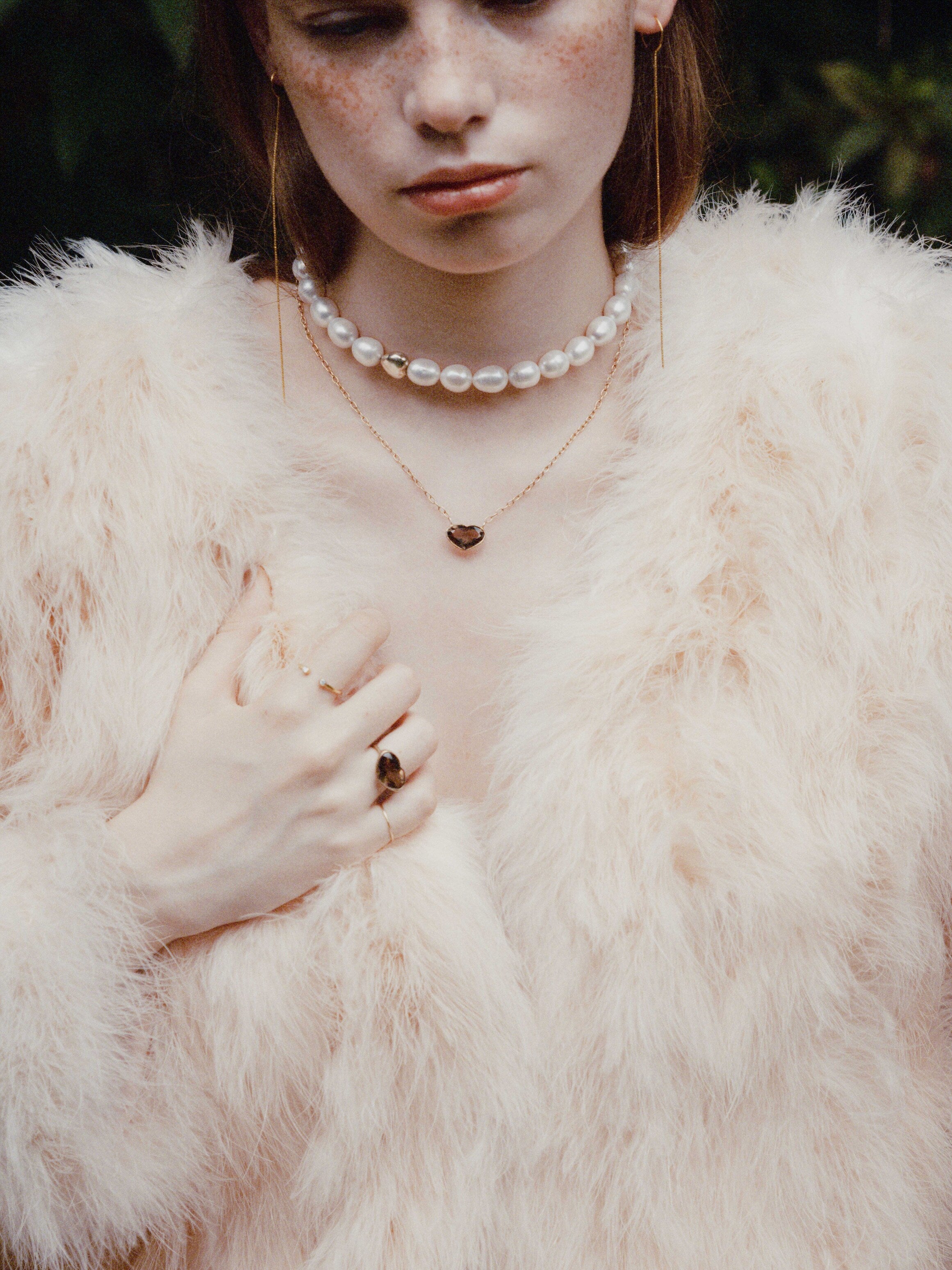 大人なハート型でさりげなく可愛らしさを演出してくれます。立体感があるデザインで首元を綺麗に見せてくれます。