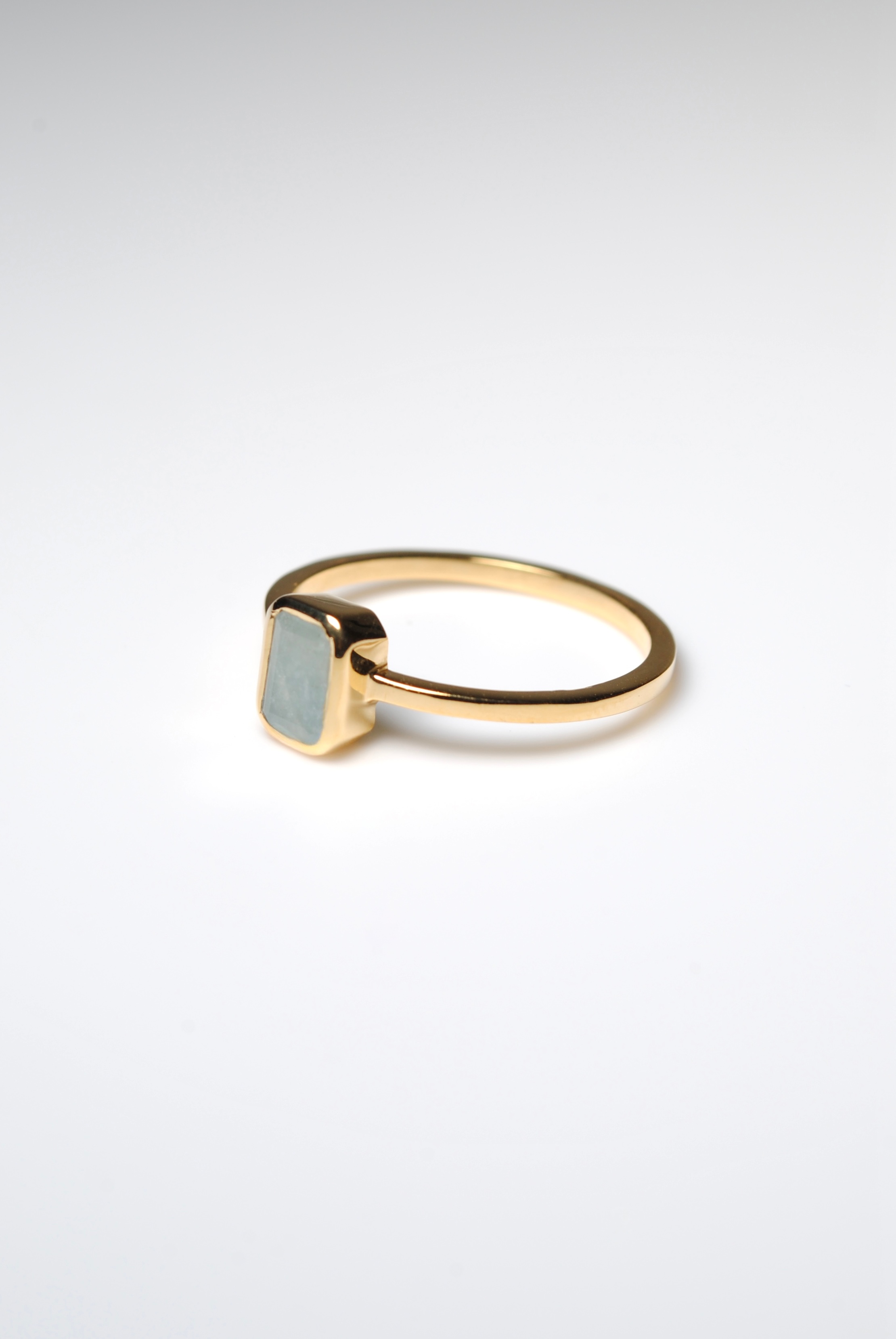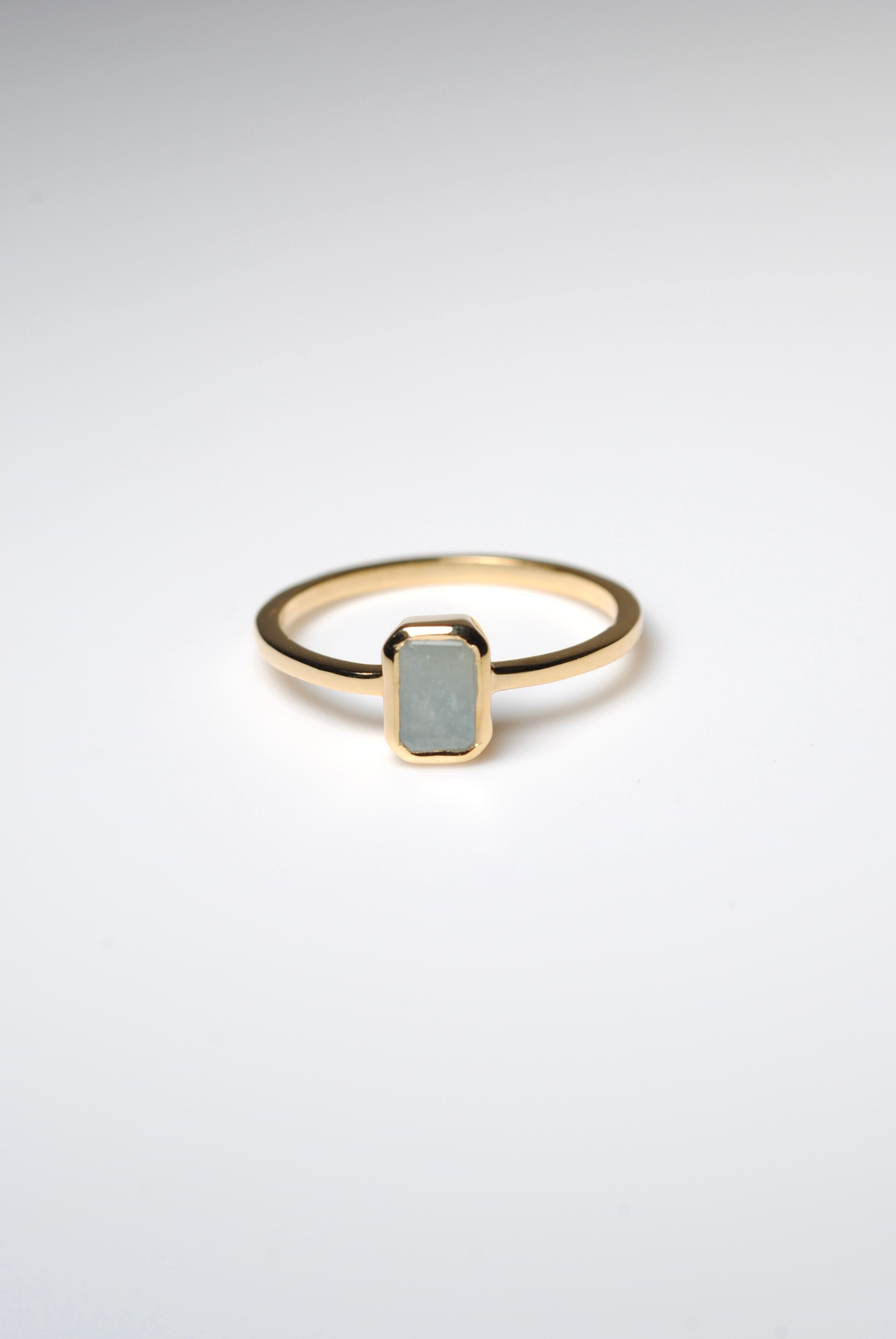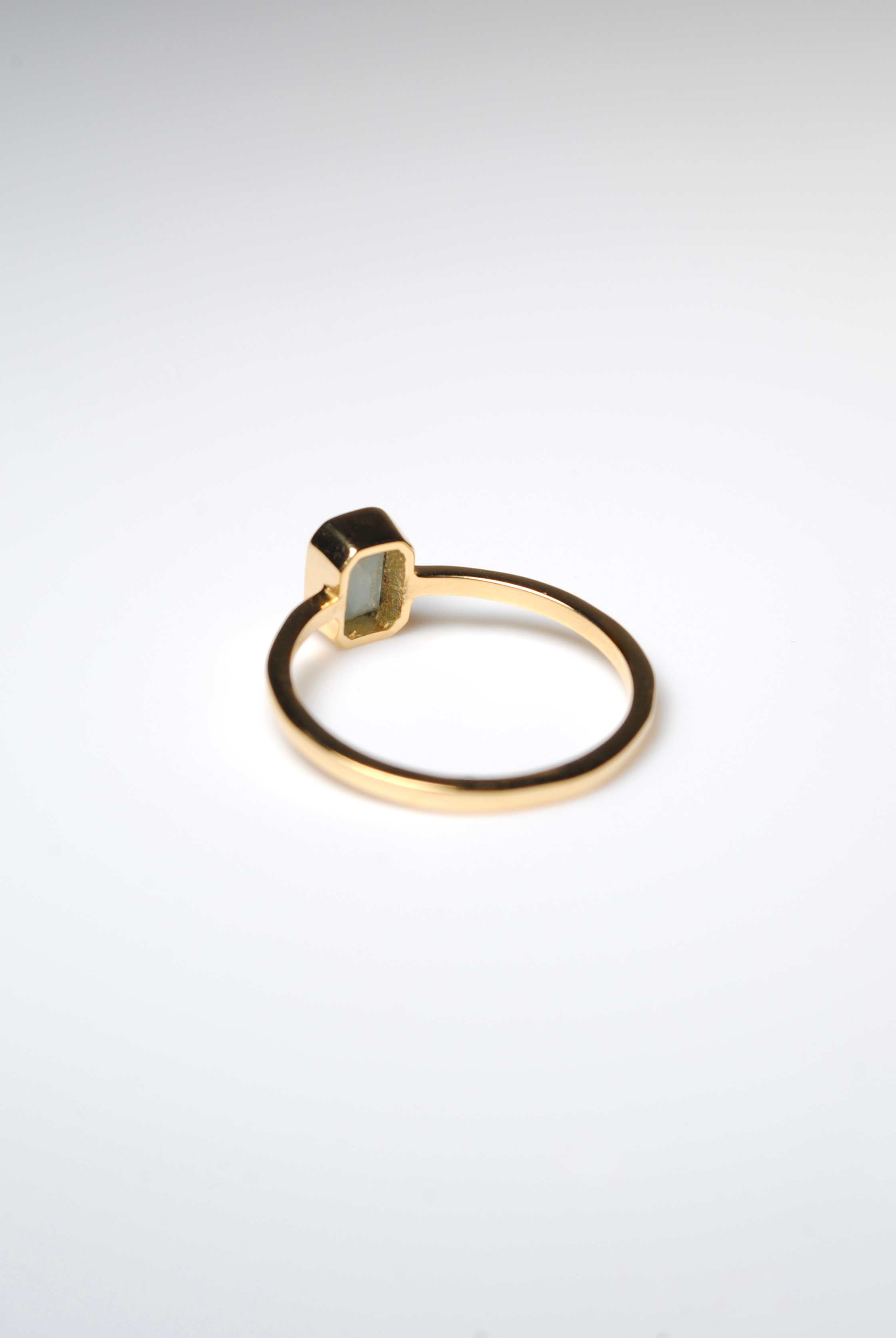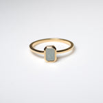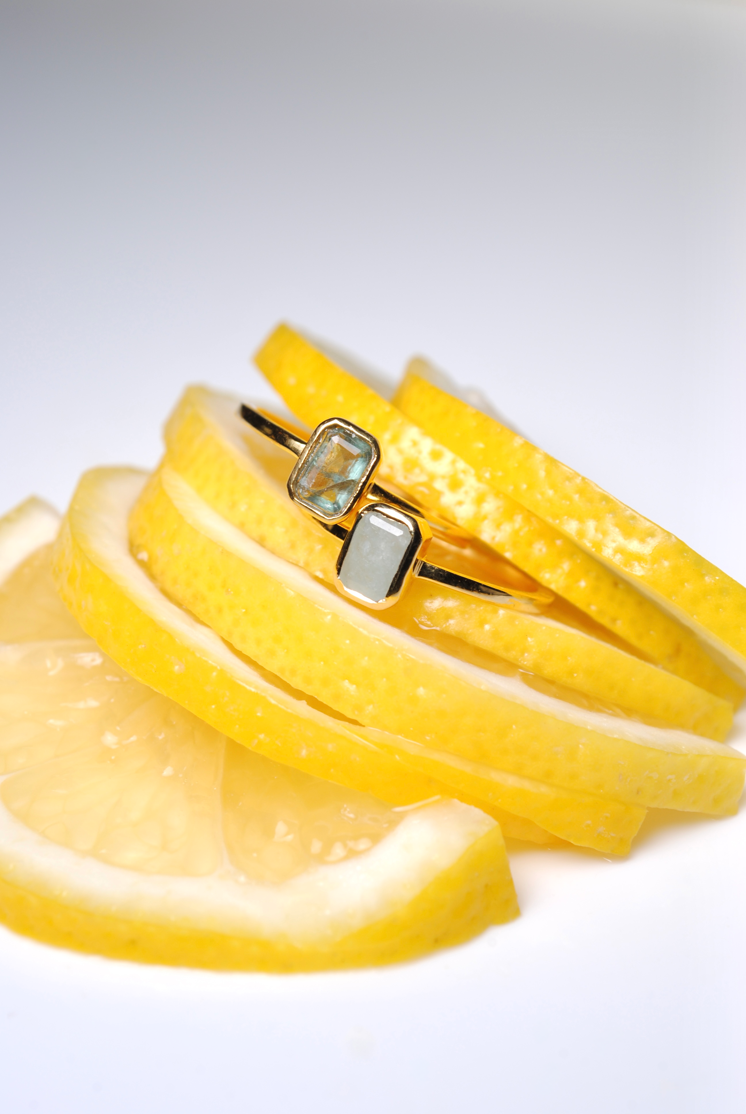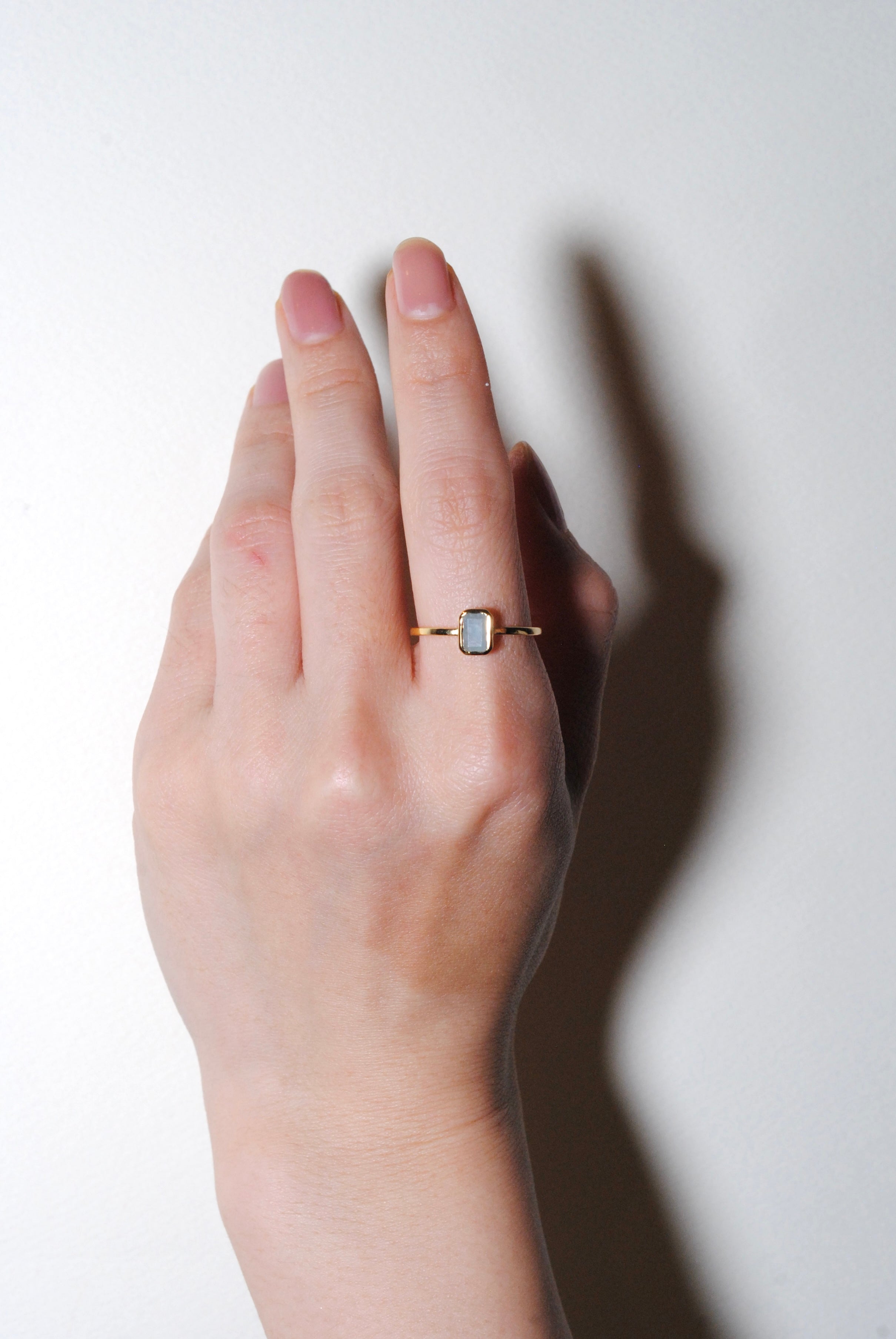 さりげない石のサイズ感は単品でつけても、重ね着けしても品のある手元に仕上がります。美しいレクタングルカットも知的で上品な印象です。